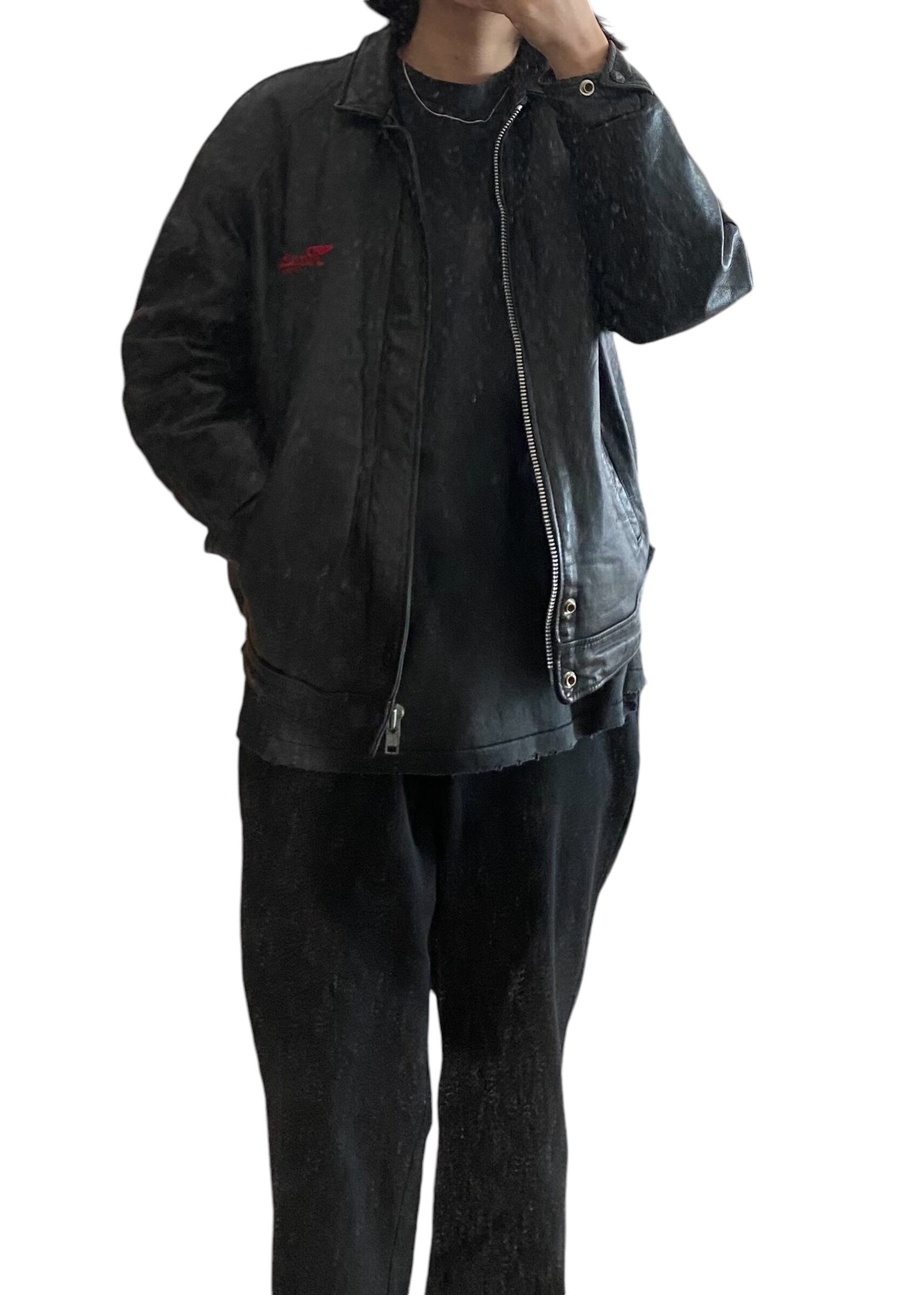 肉厚で質感の良いレザーに、ブラックボディ×レッドの刺繍デザインが非常に格好良い一着。