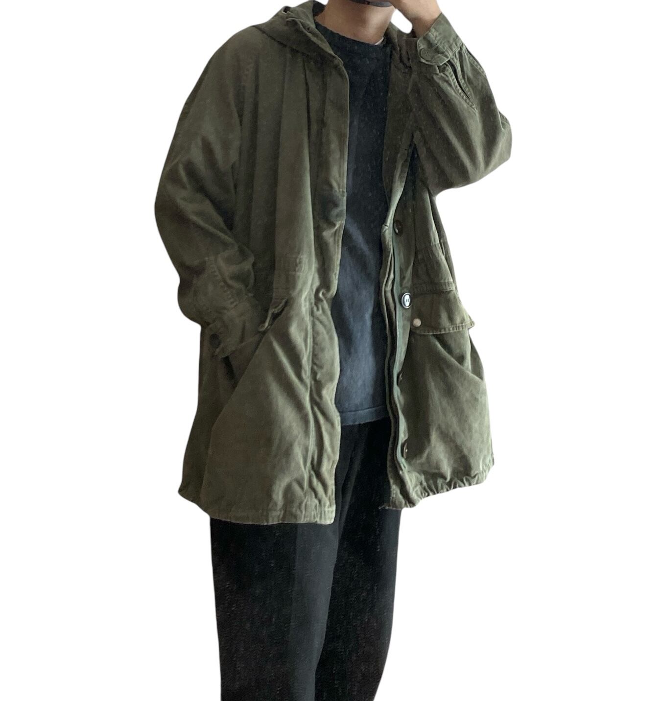 インナーにボロのスウェットやモヘアカーディガンなどを挟んで缶バッチなどでアクセントをつけたら、モッズやグランジな感じですごく良いと思います。