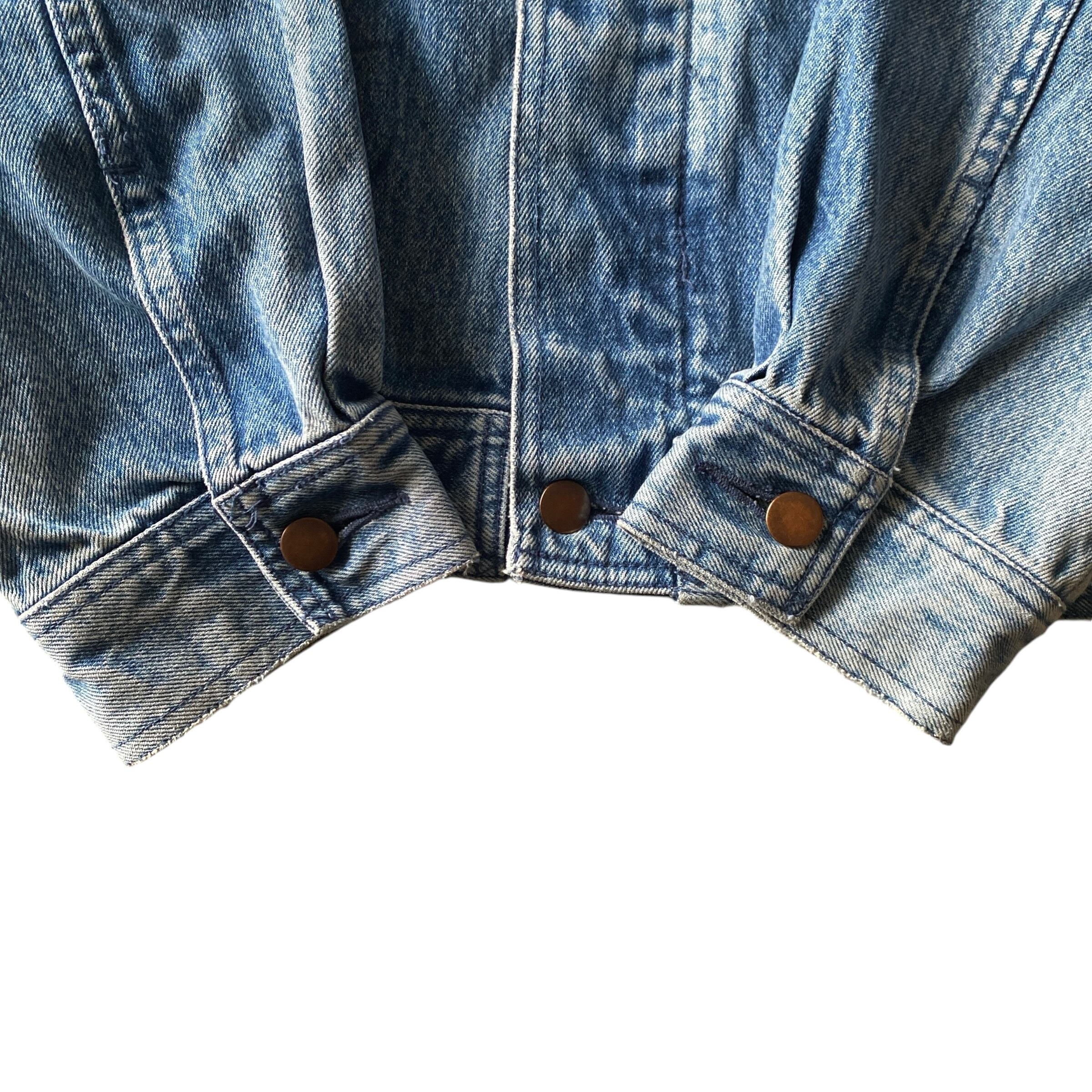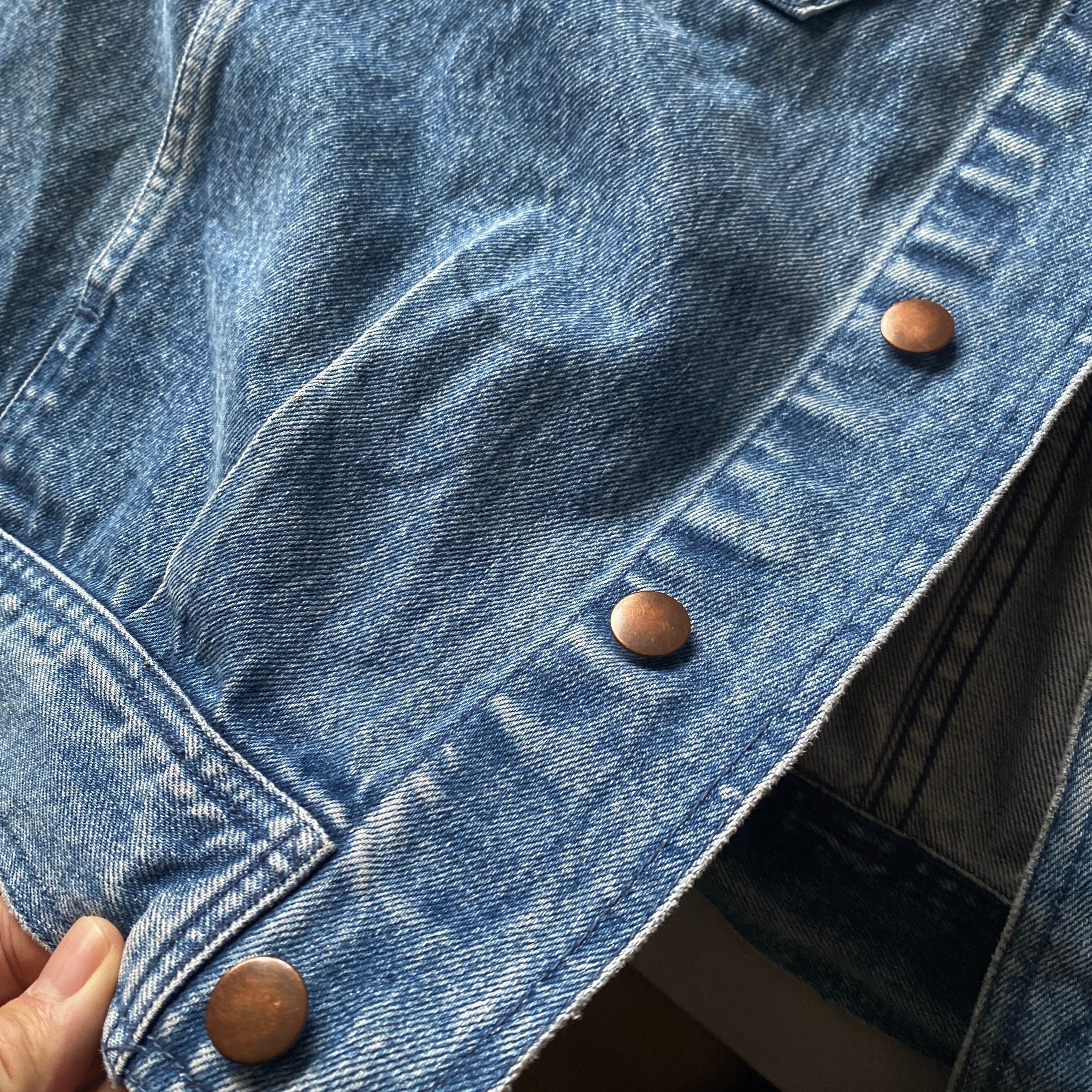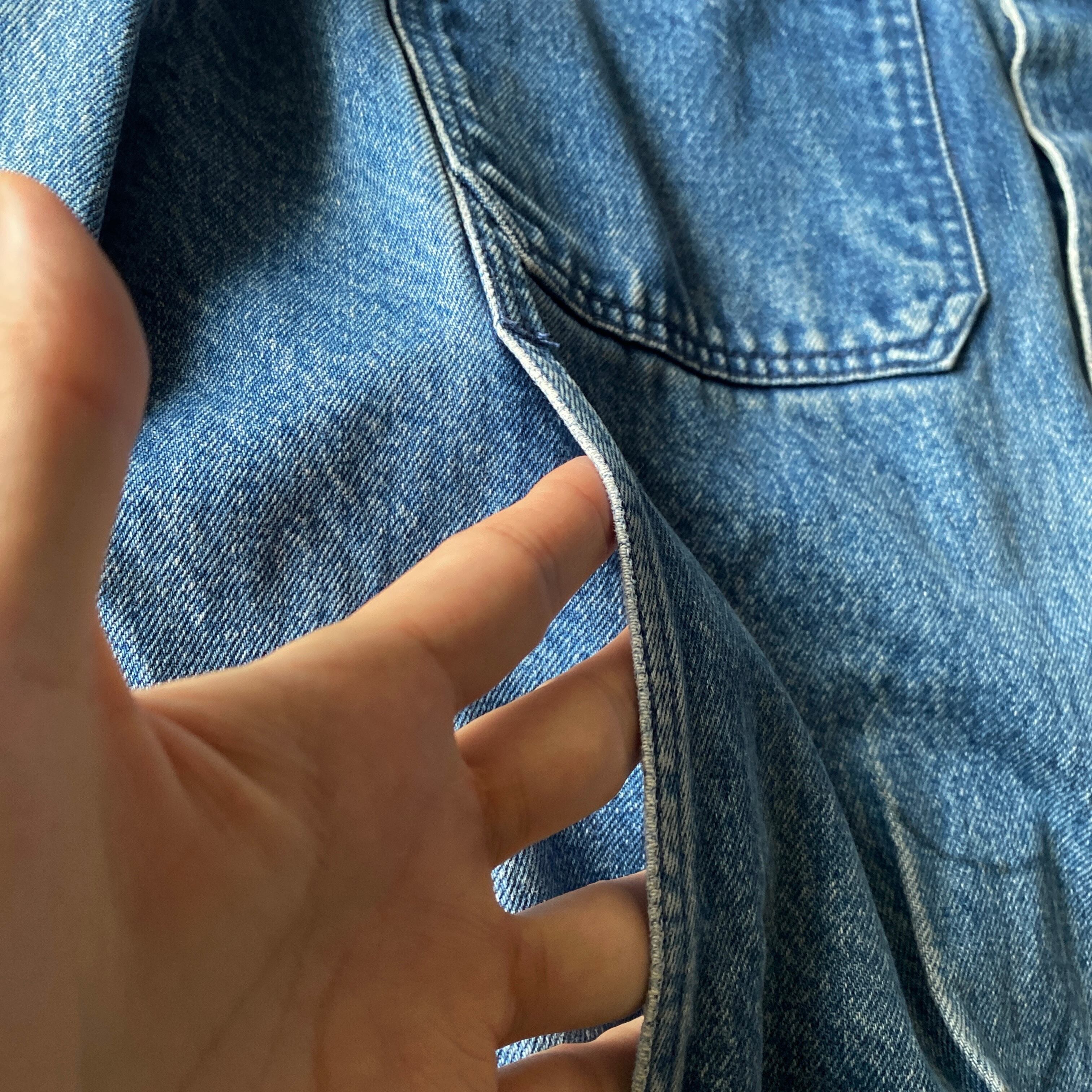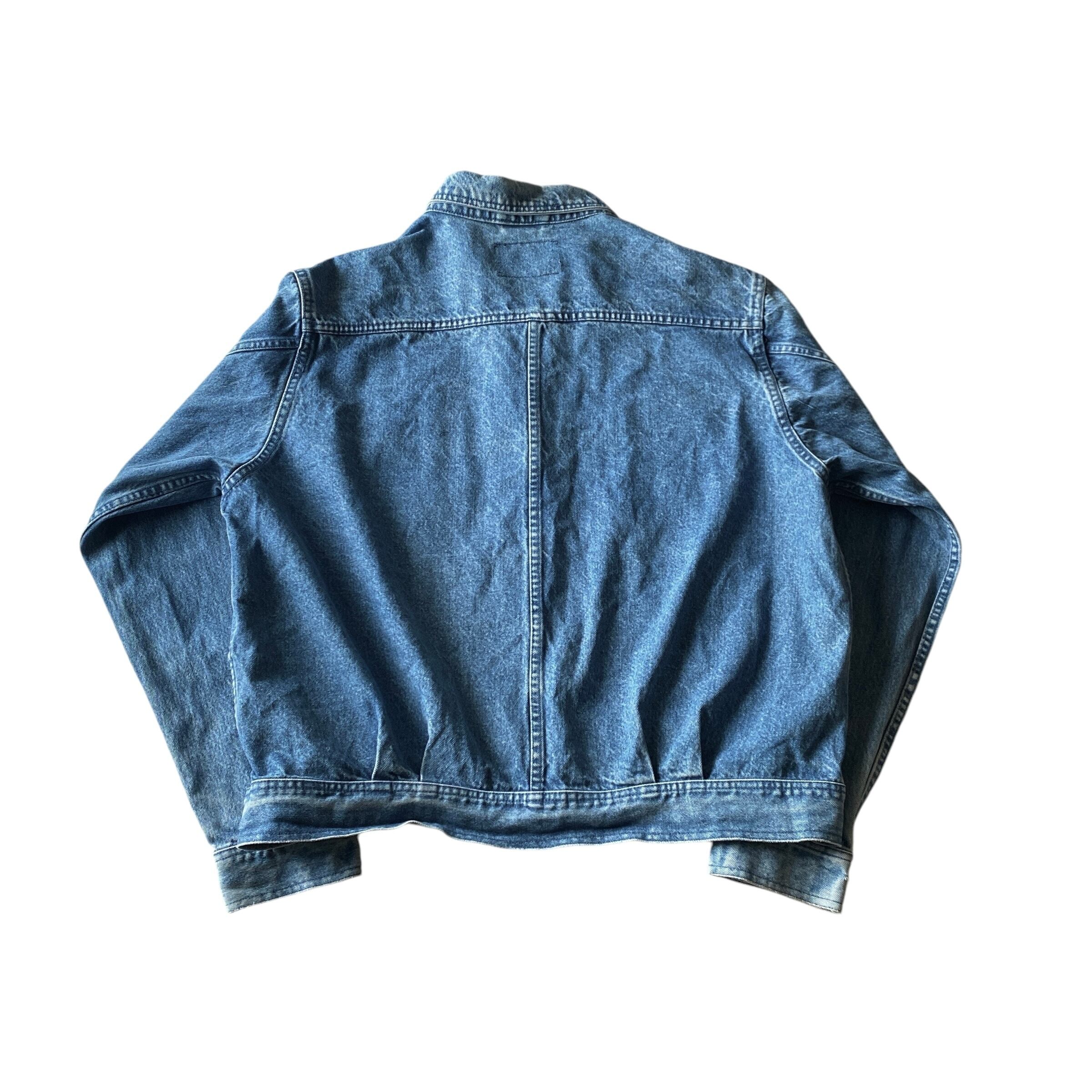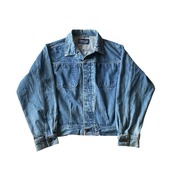 ユーロのミリタリーやワークのような、デニムジャケットでは珍しいデザインに、所謂Tバック仕様のドカっと大きめなボックスシルエットが非常に格好良い一着。