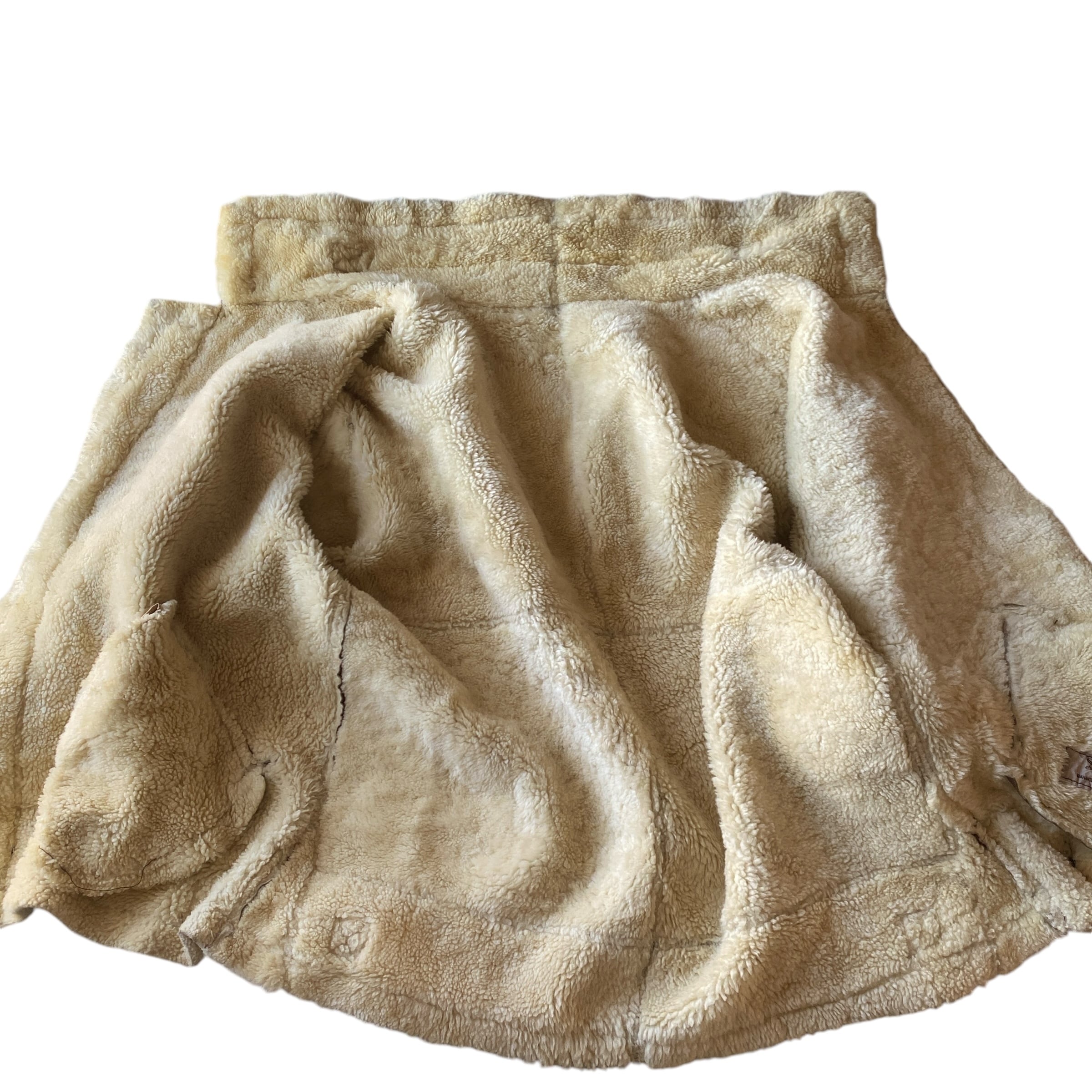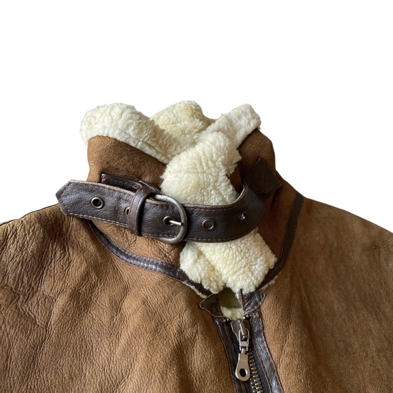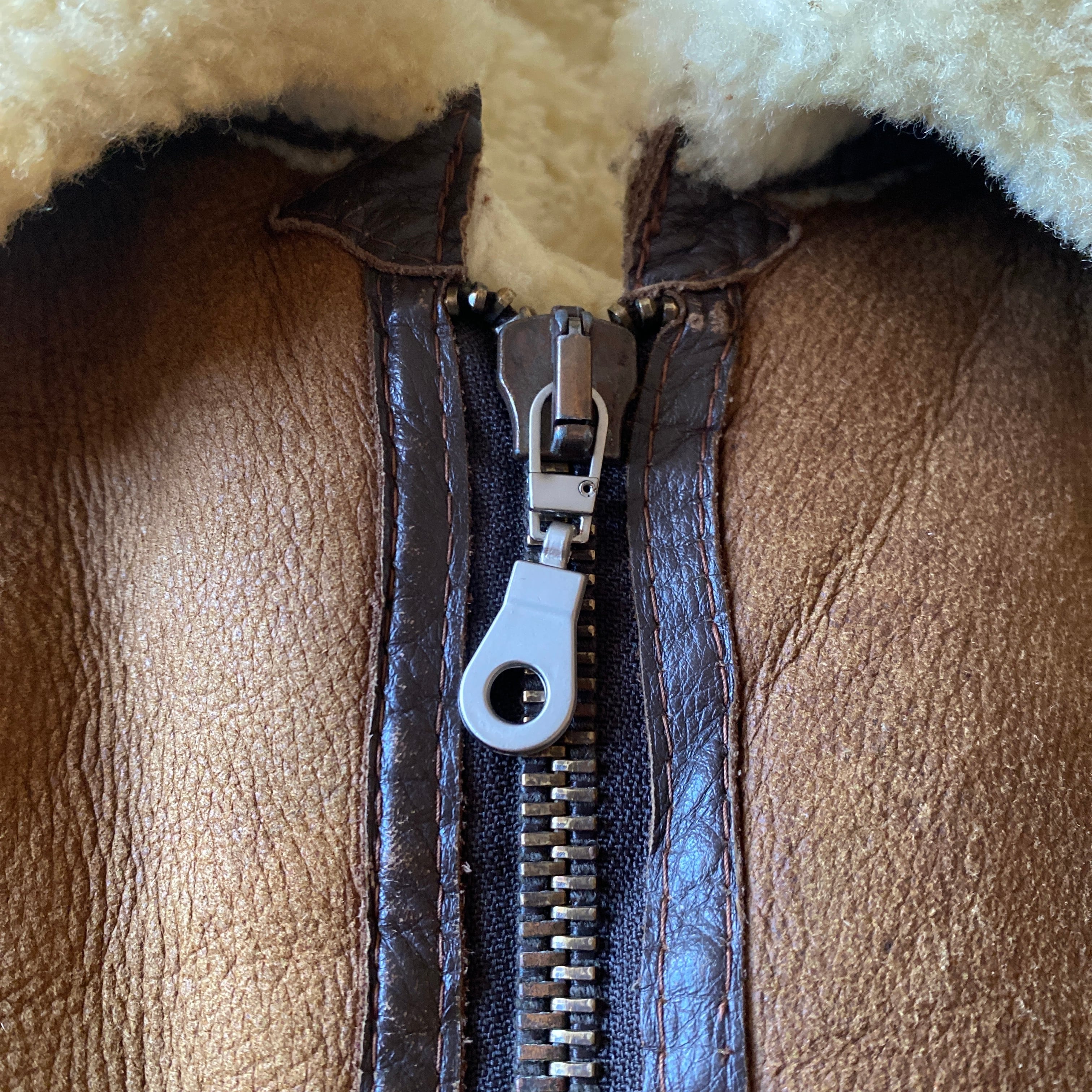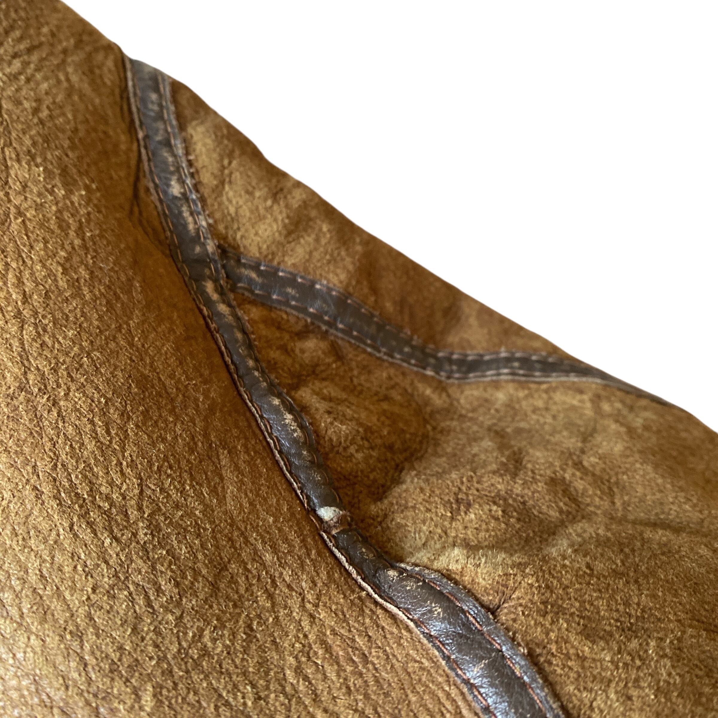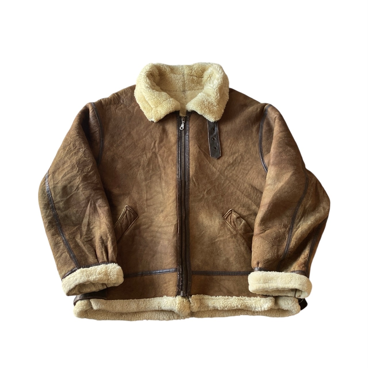 状態/多少の汚れ、ダメージ、ポケット内部のリペア、ジッププルの換装などありますが、古いムートンの中では良い状態だと思います。