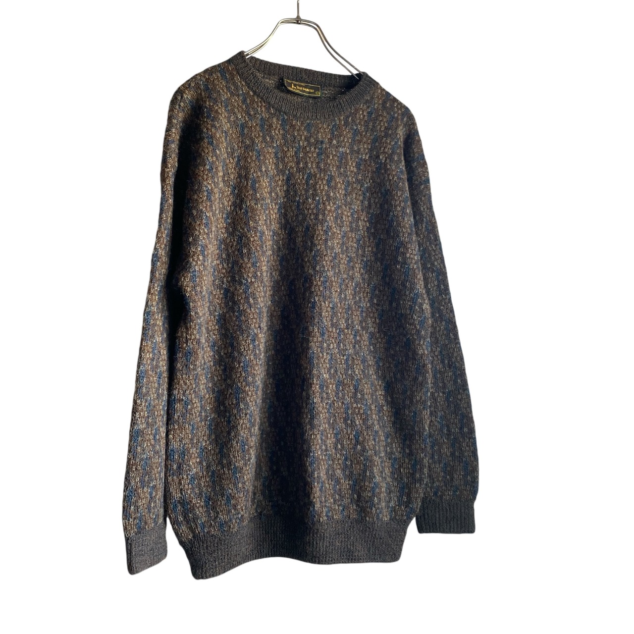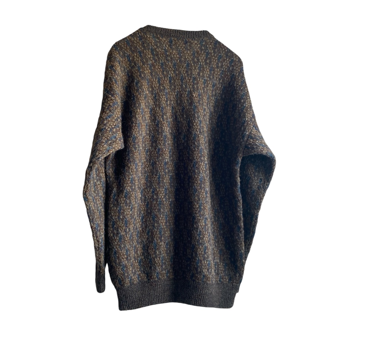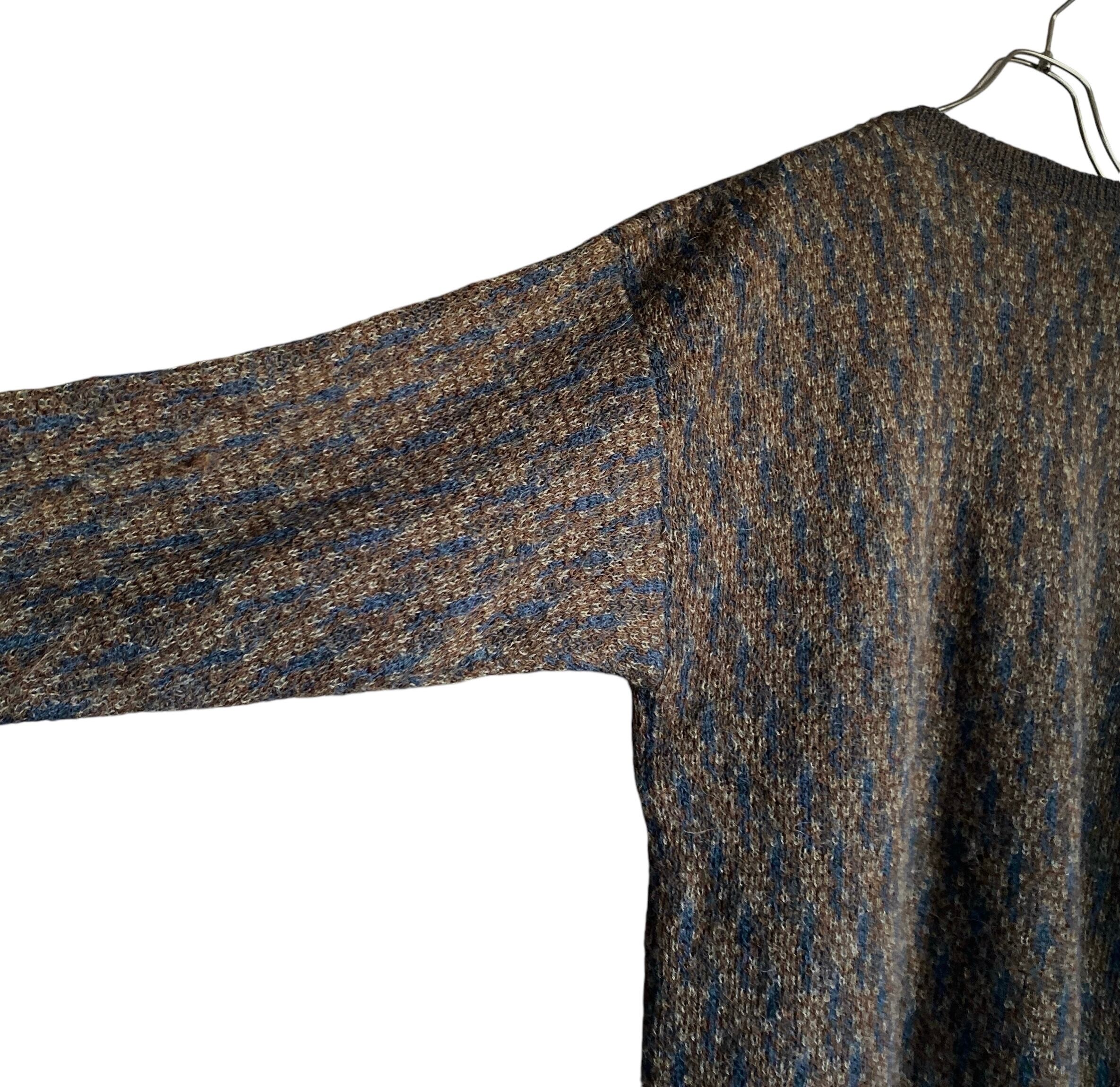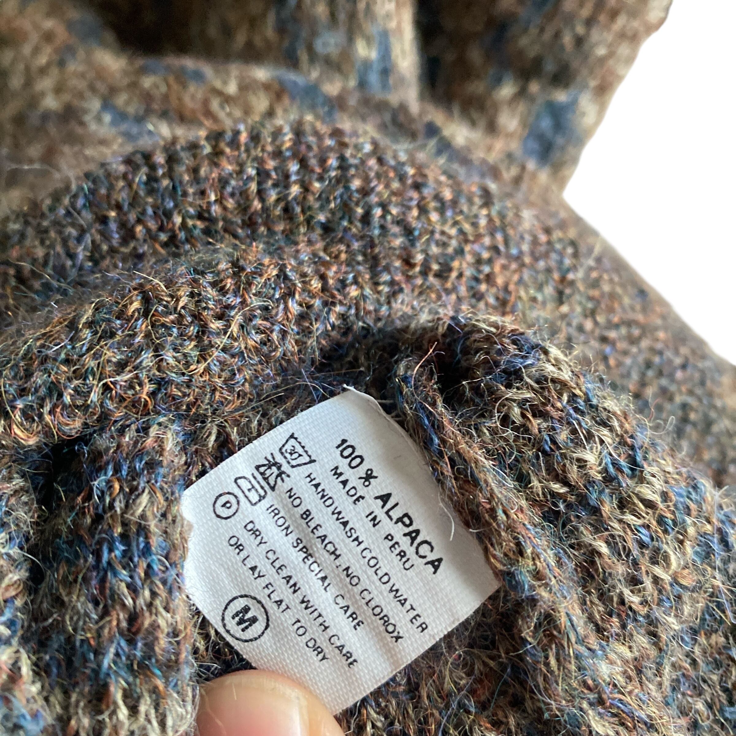 肉厚でフカっと柔らかい極上のアルパカニットに、暖色と寒色を織り交ぜたセンスの良い総柄が素晴らしい一着。