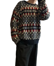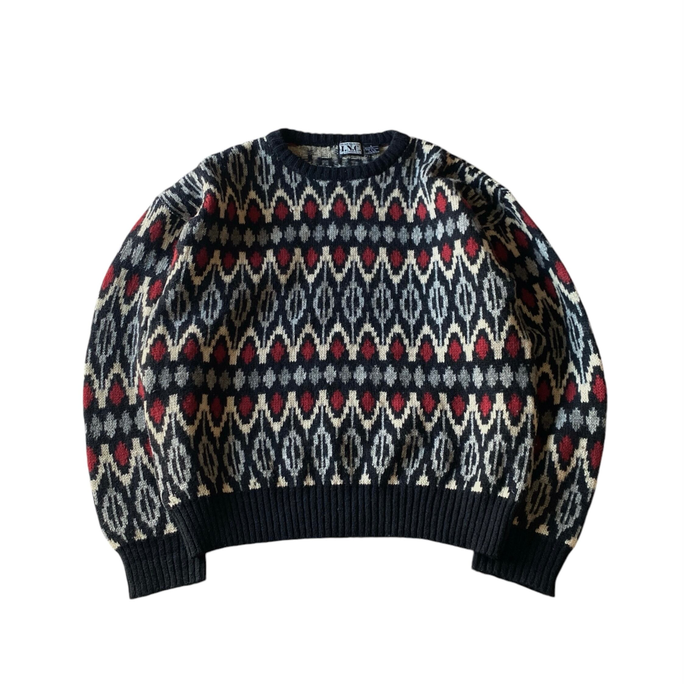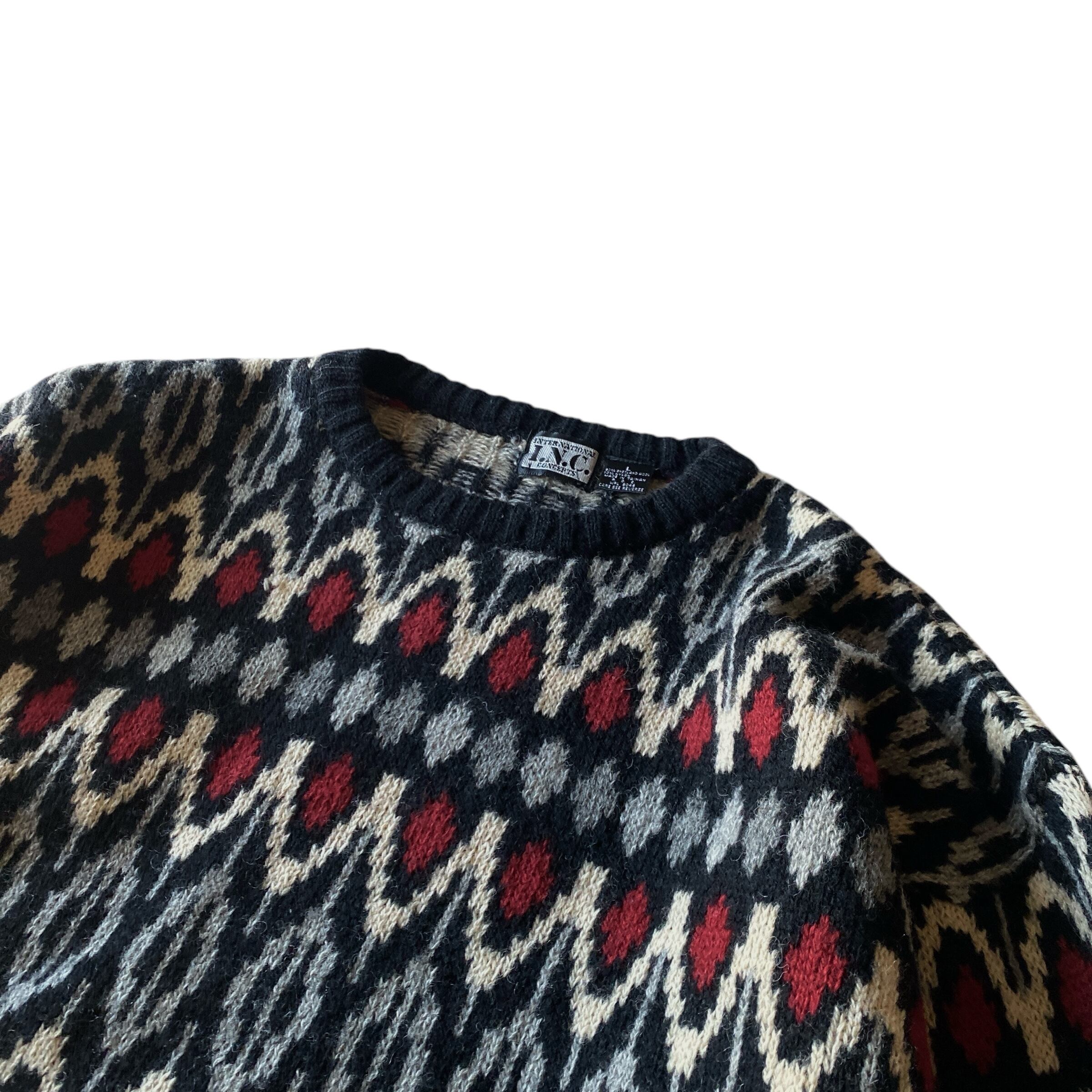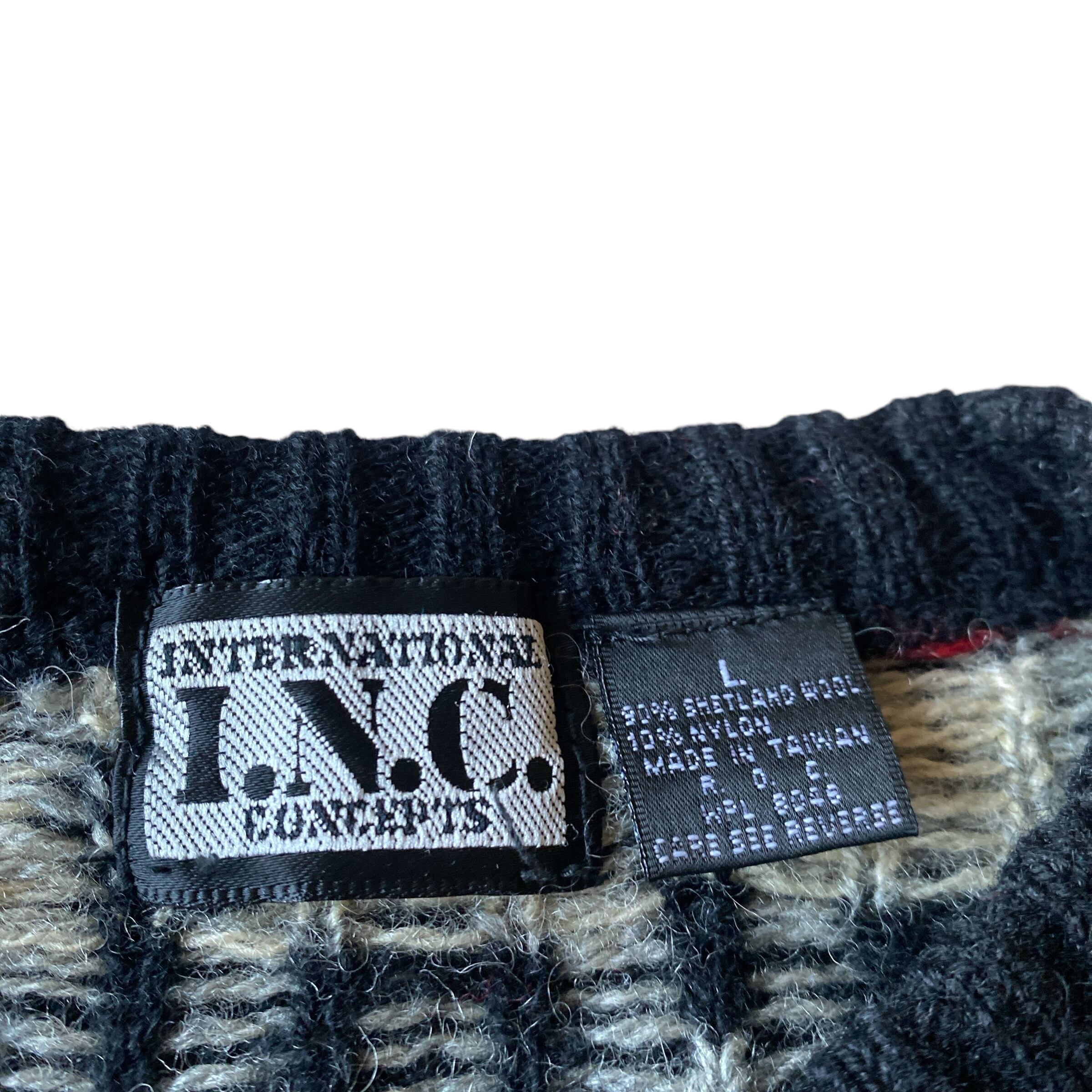 1980-90年代ごろの台湾製「INTERNATIONAL I.N.C CONCEPTS」のシェットランドウール総柄ニットセーターになります。