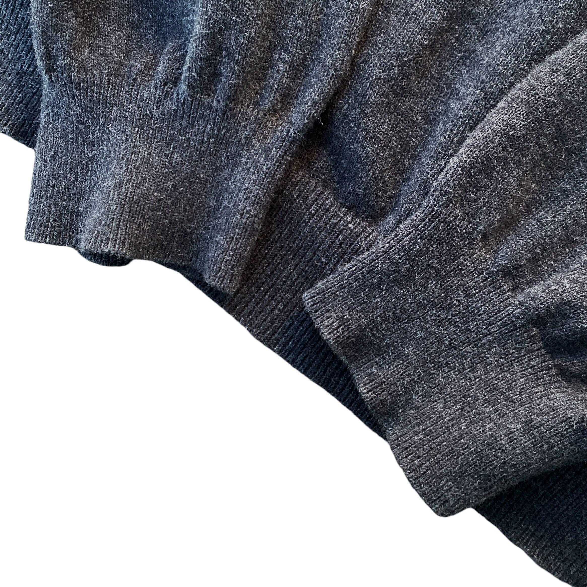 上品なダークグレーカラーに、程よい厚みのハイゲージニット、丸みのあるボックスシルエットが非常に格好良い一着。