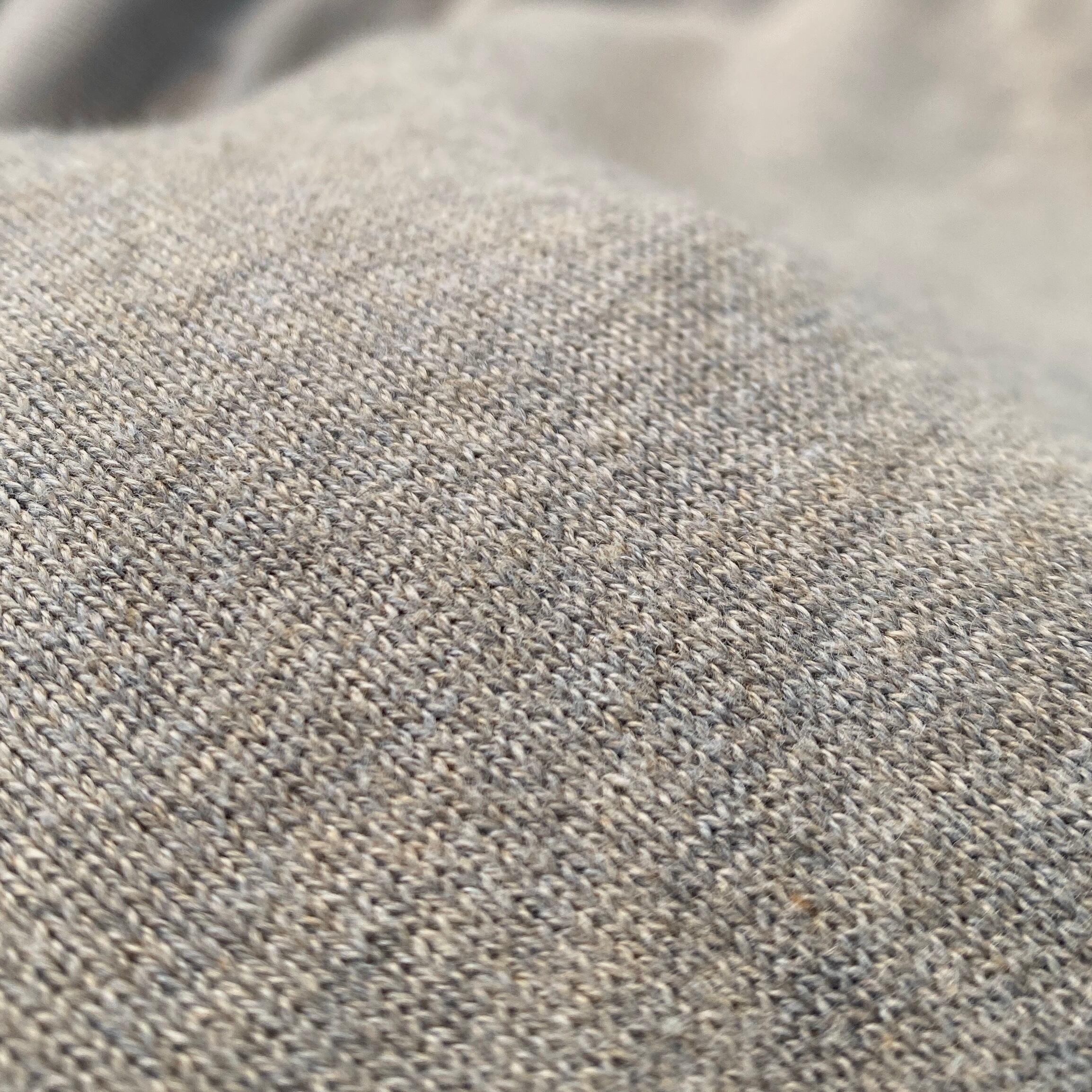 上品なメランジベージュカラーに、程よい厚みのハイゲージニット、丸みのあるボックスシルエットが非常に格好良い一着。
