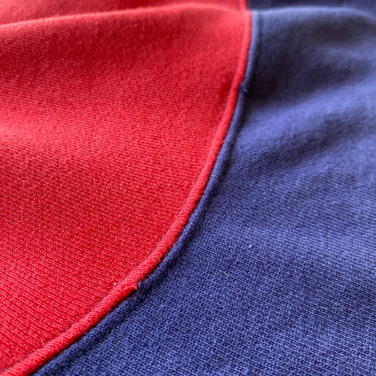 生地は80年代トリコタグに近い柔らかめな感じで、ややフェードしたレッド×パープルの組み合わせがpopで非常に格好良いです。