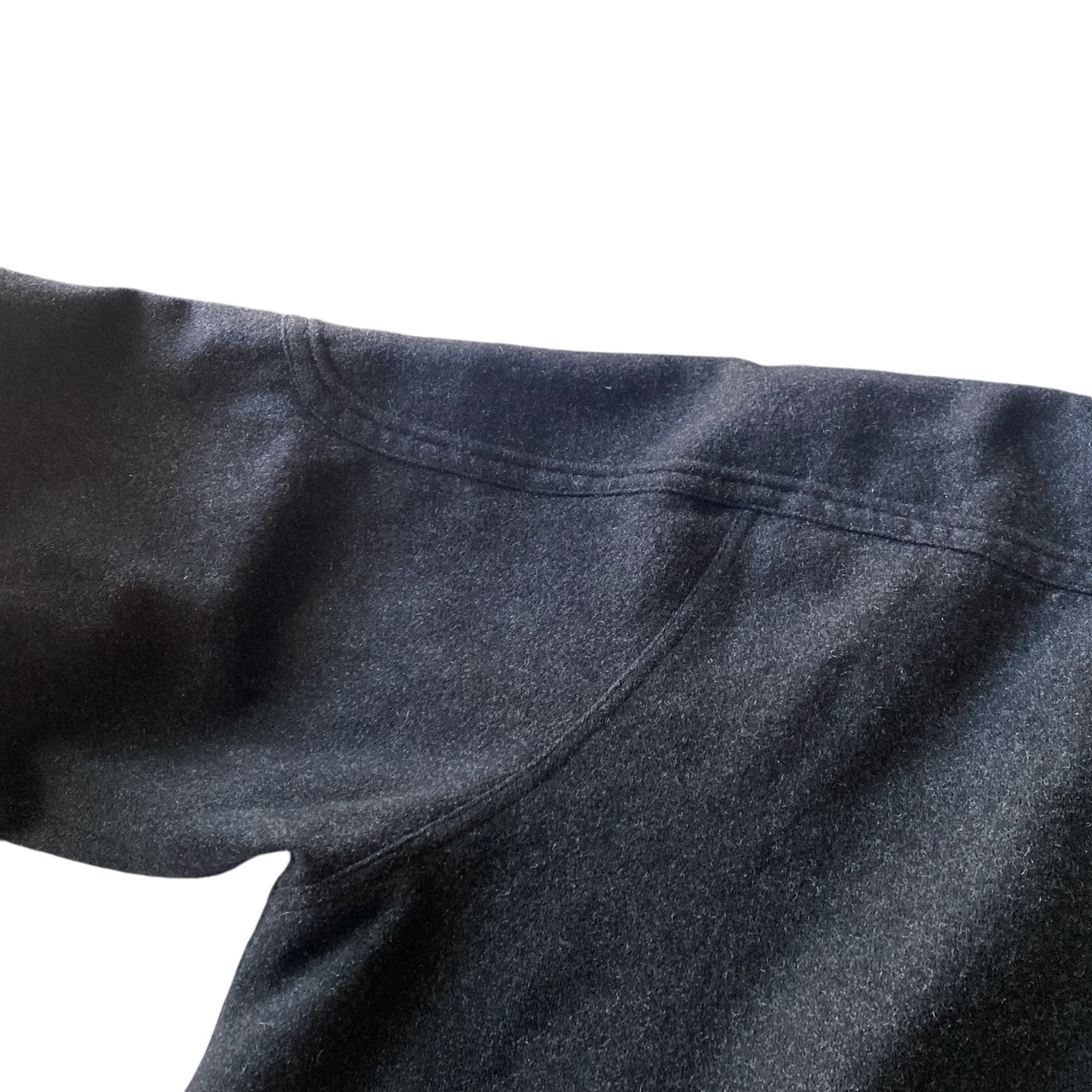 肉厚ながらしなやかで落ち感のあるウールメルトン生地に、上品なチャコールグレーカラー、丸みのある短丈ボックスなシルエットが非常に格好良い一着。