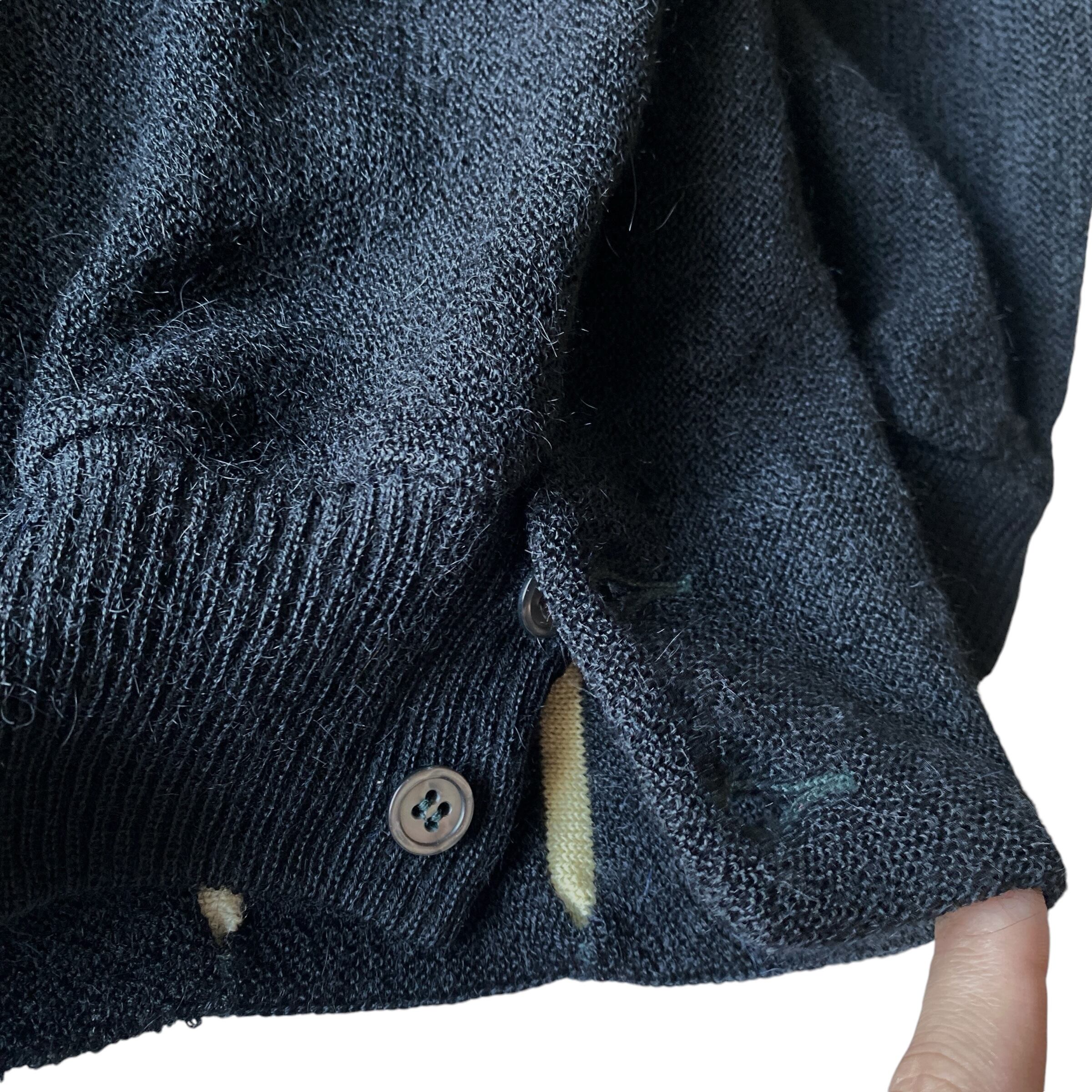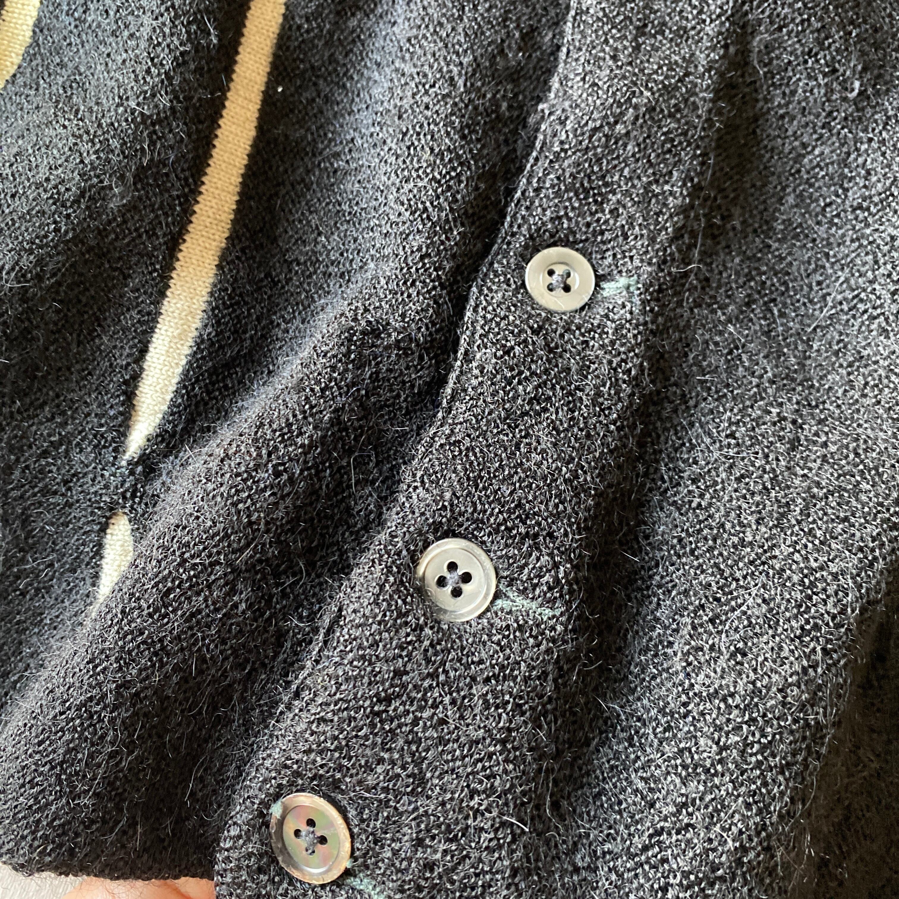 この年代のカーディガンの中でも、モヘアに次いで非常に人気で希少なブラックアルパカが使用された一着。