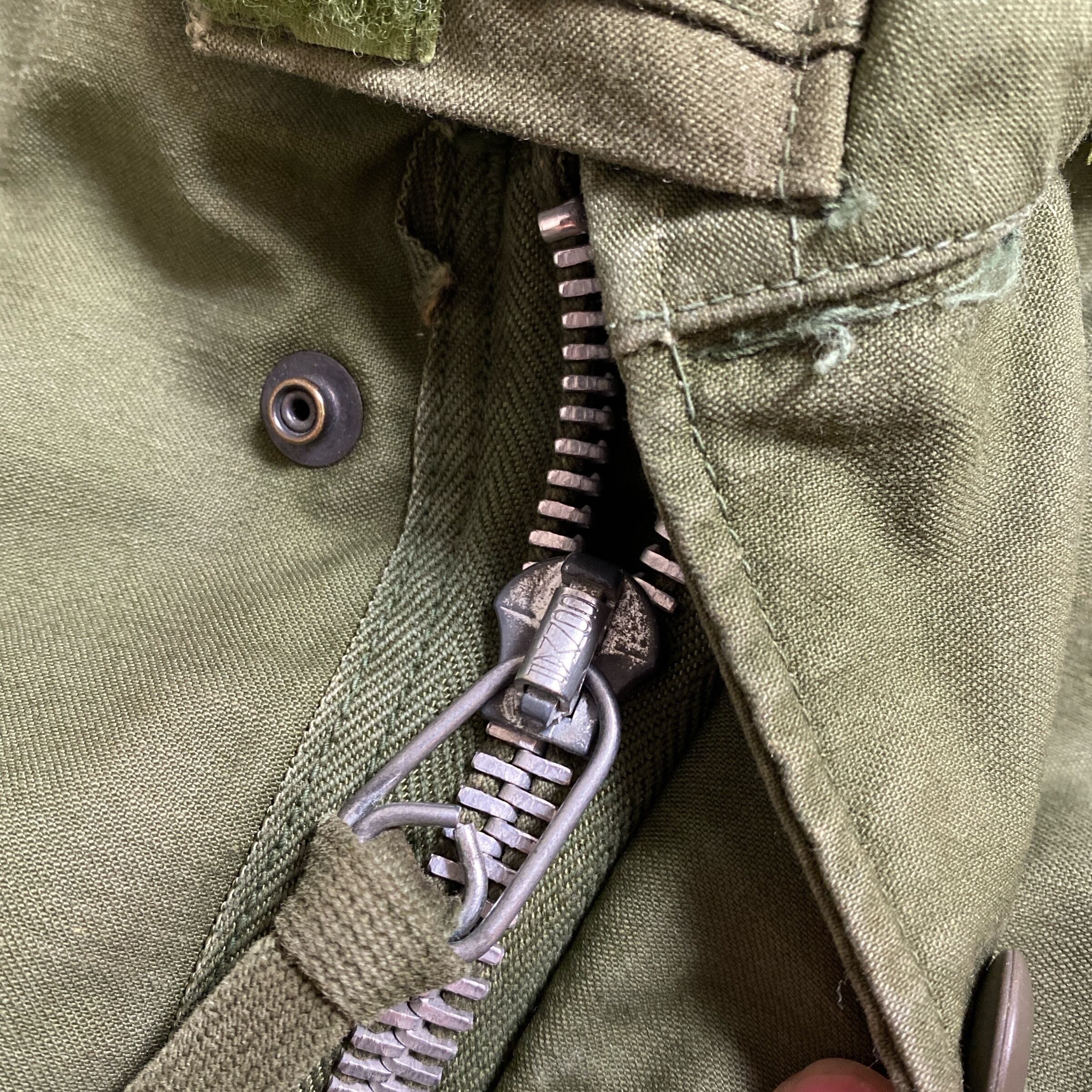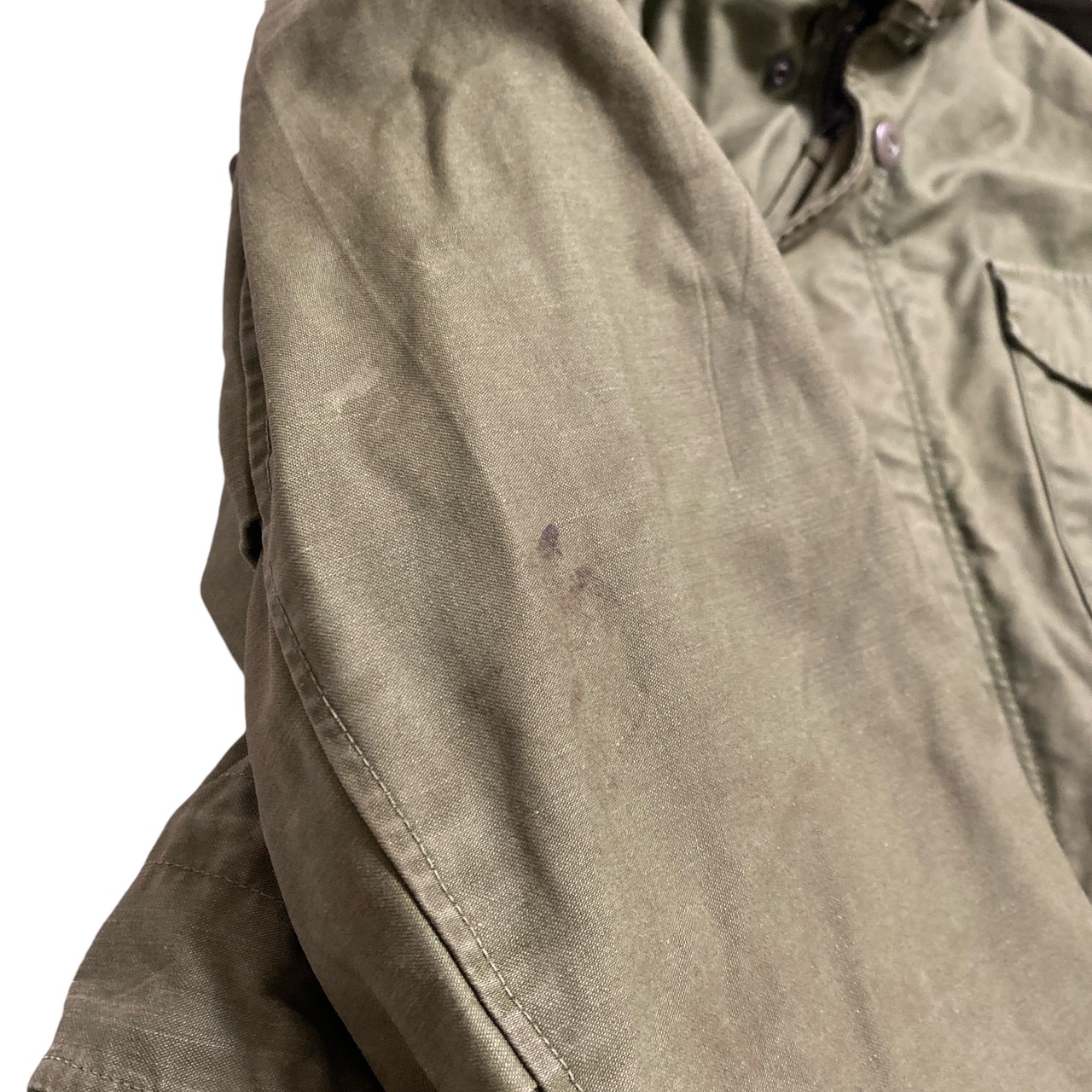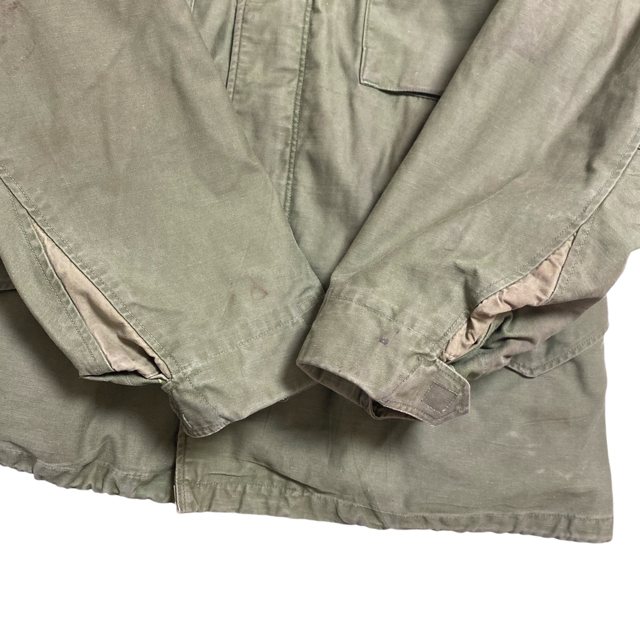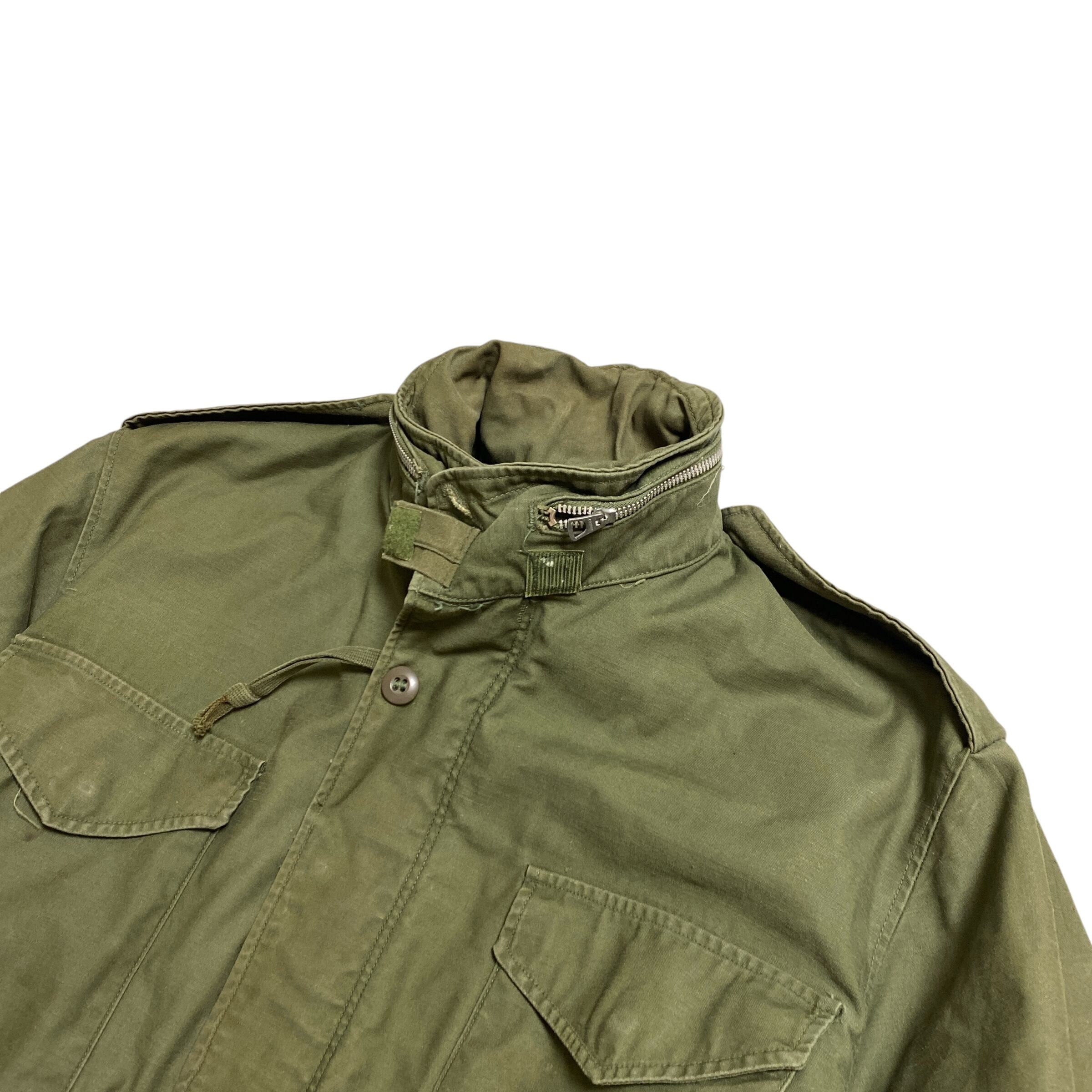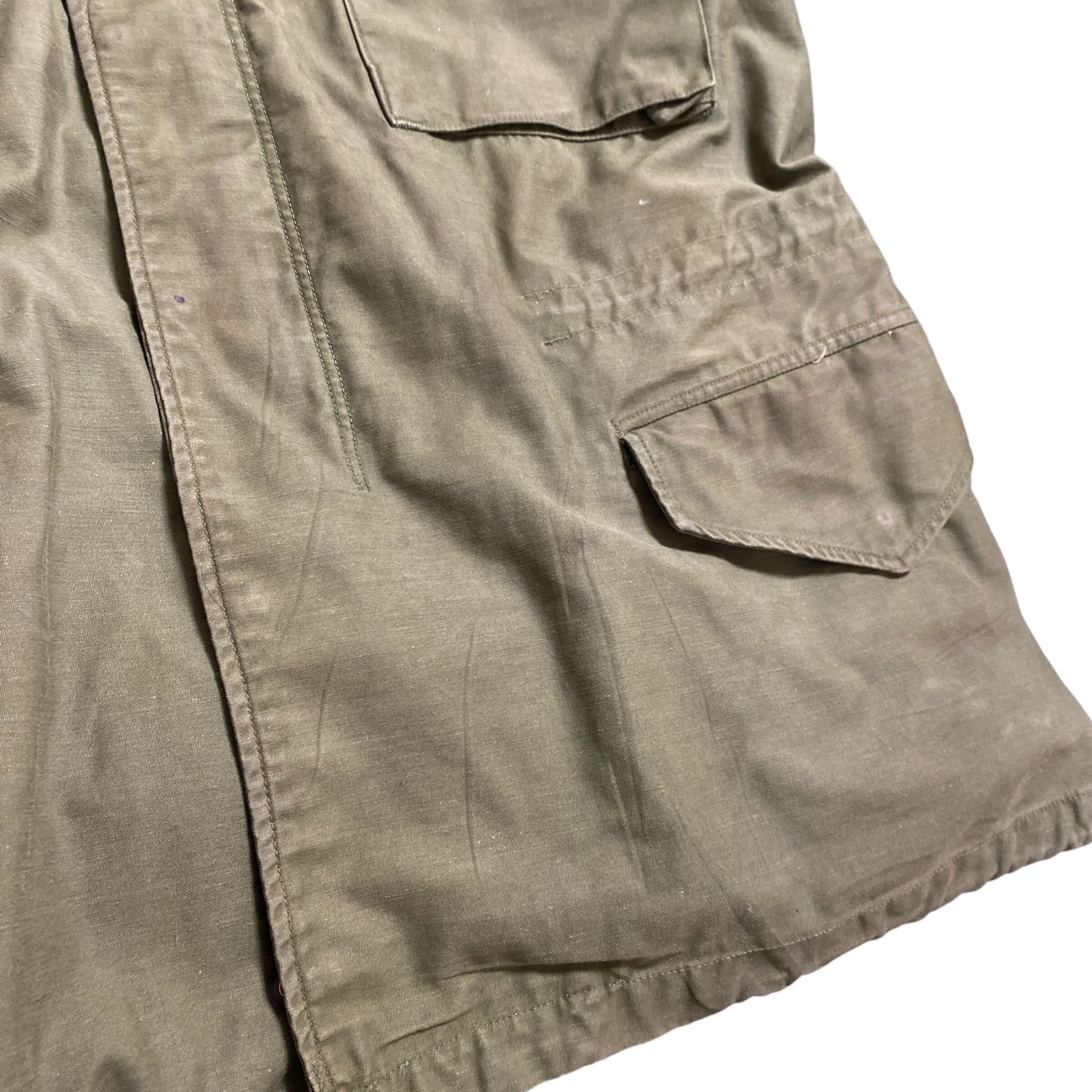 1960年代頃のアメリカ軍M65フィールドジャケットになります。(襟フラップ別生地、袖にスレキが付くので60年代後期だと思われます)