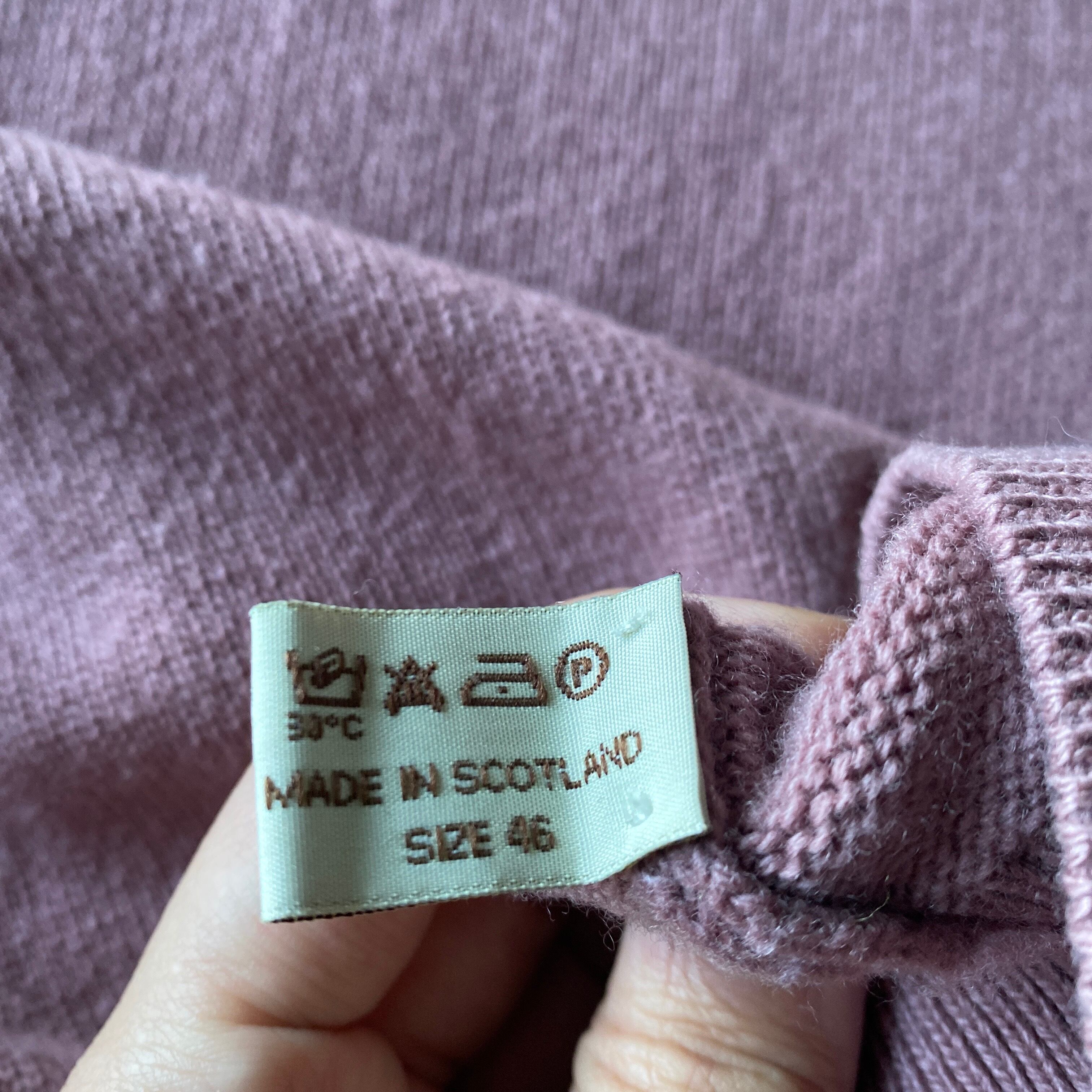 カシミヤに引けを取らない肉厚で滑らかな質感のニットに、パープルとピンクを混ぜたような上品なくすみ系カラー、サイズ46のゆったりとしたサイズ感が素晴らしいです。
