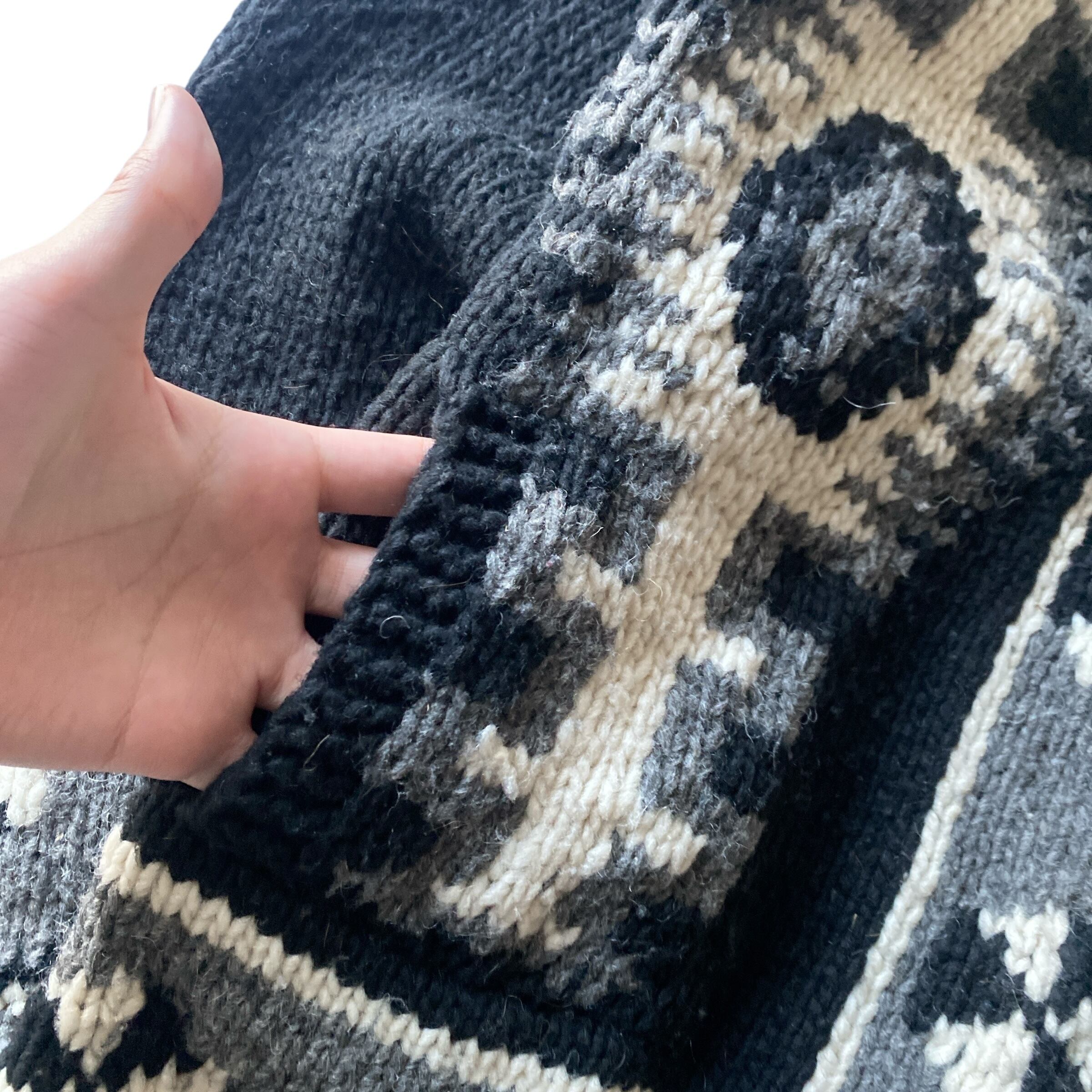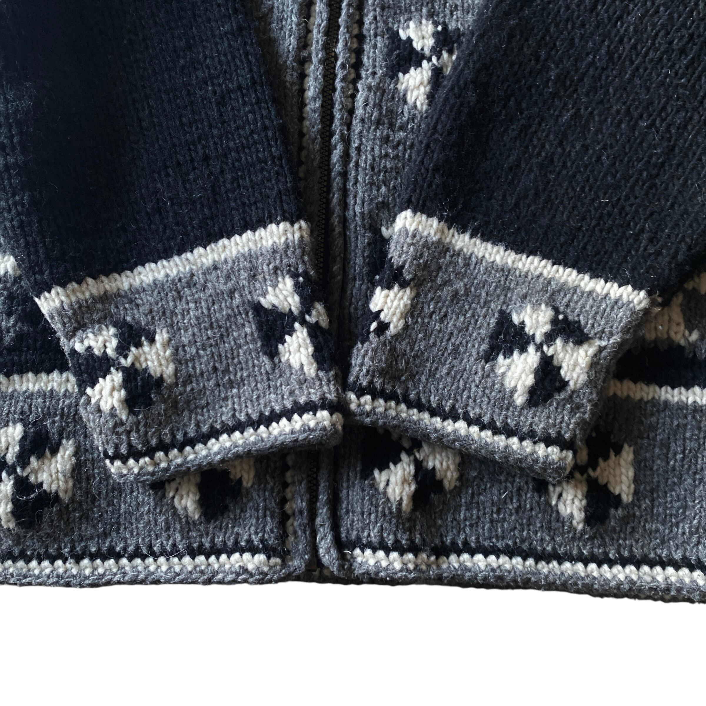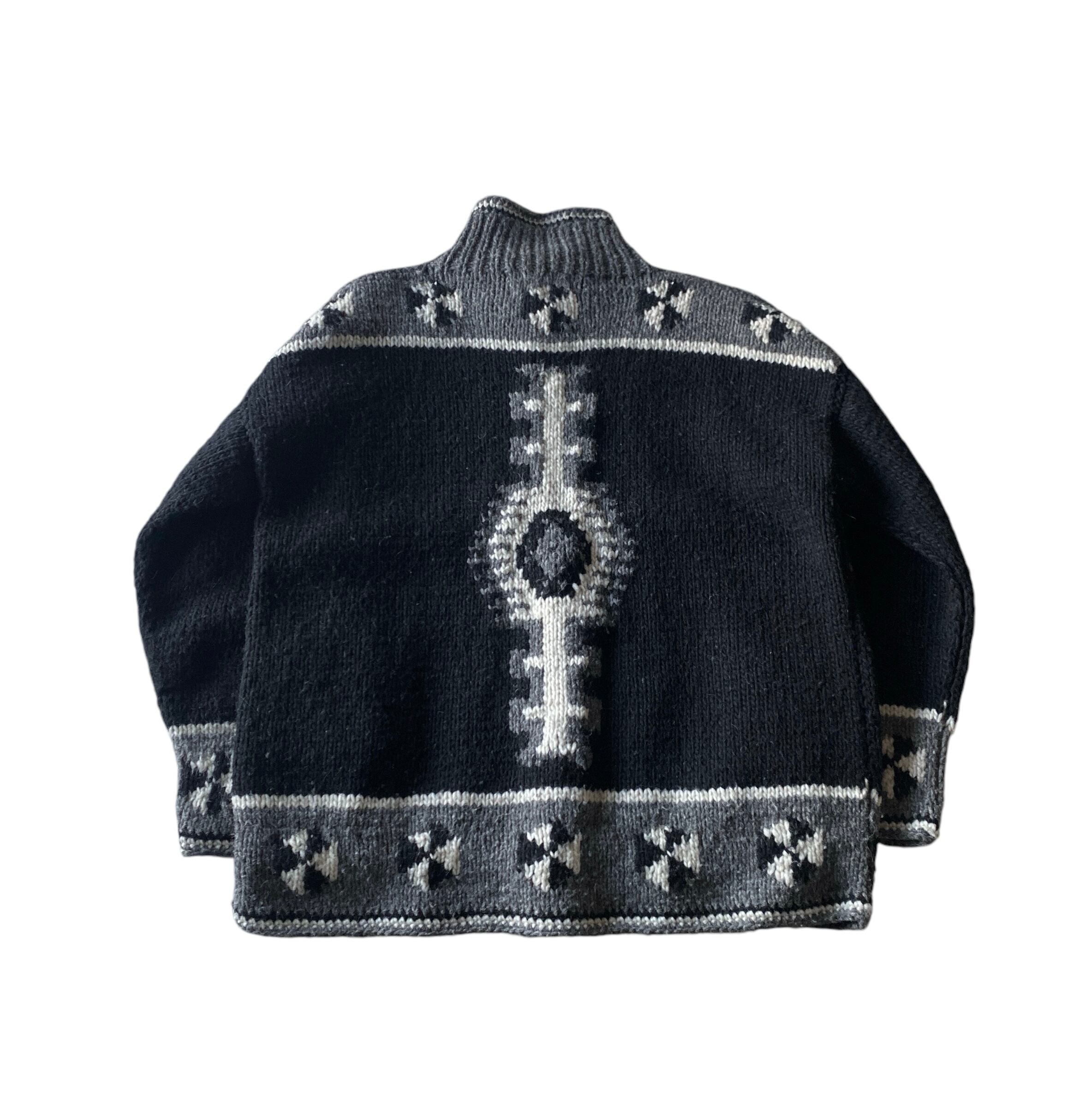 この手のニットの中でも非常に珍しい、ブラックベースでモノトーン配色のネイティブ柄が非常に格好良い一着。