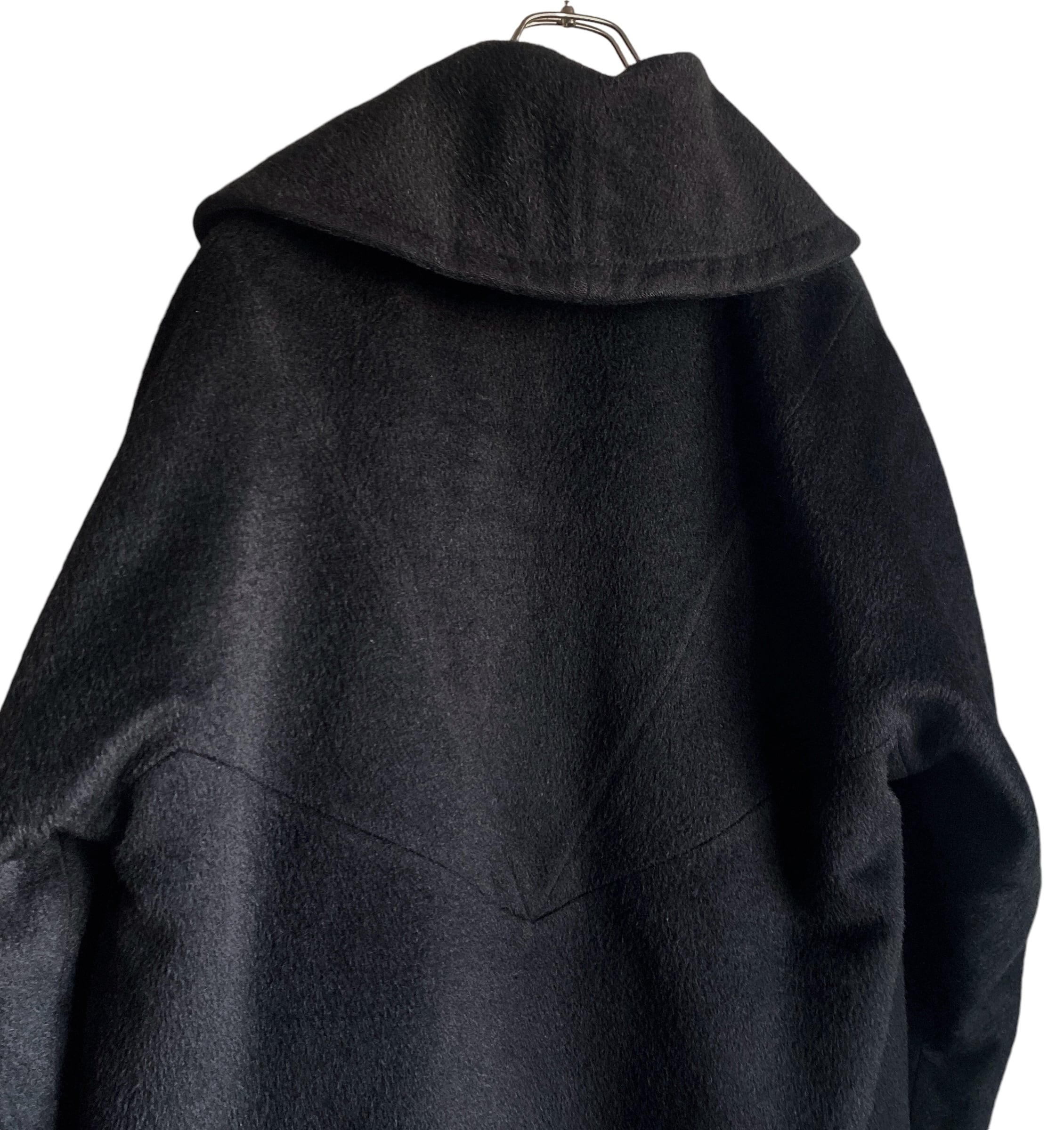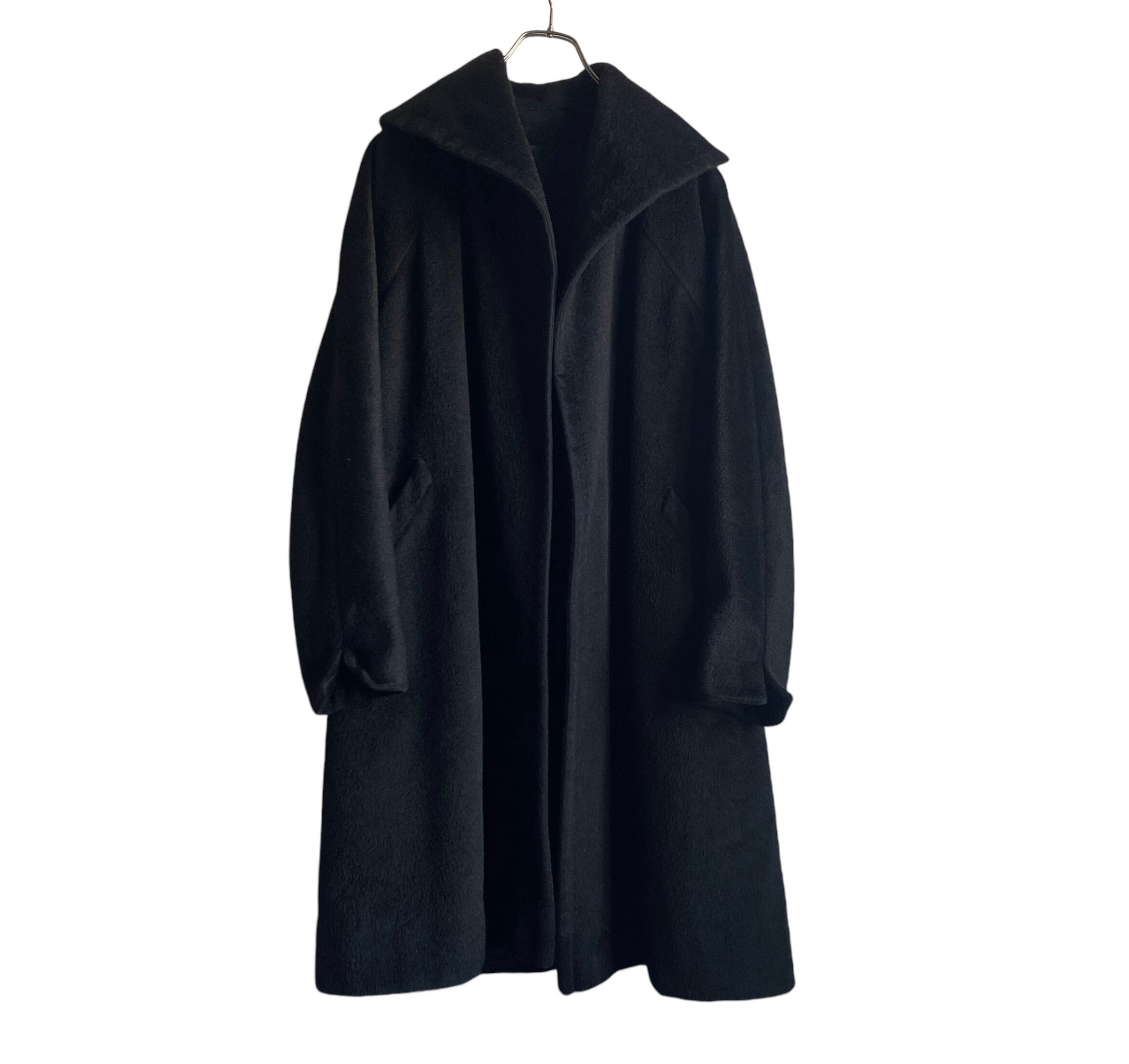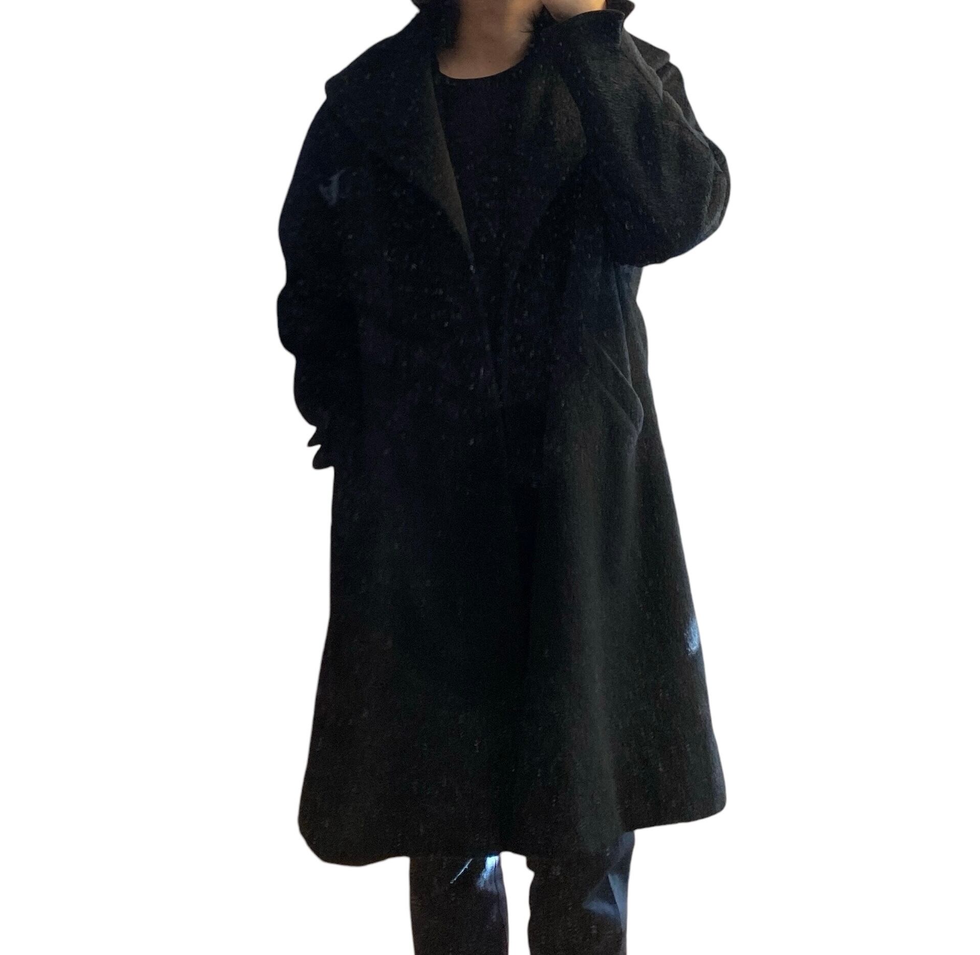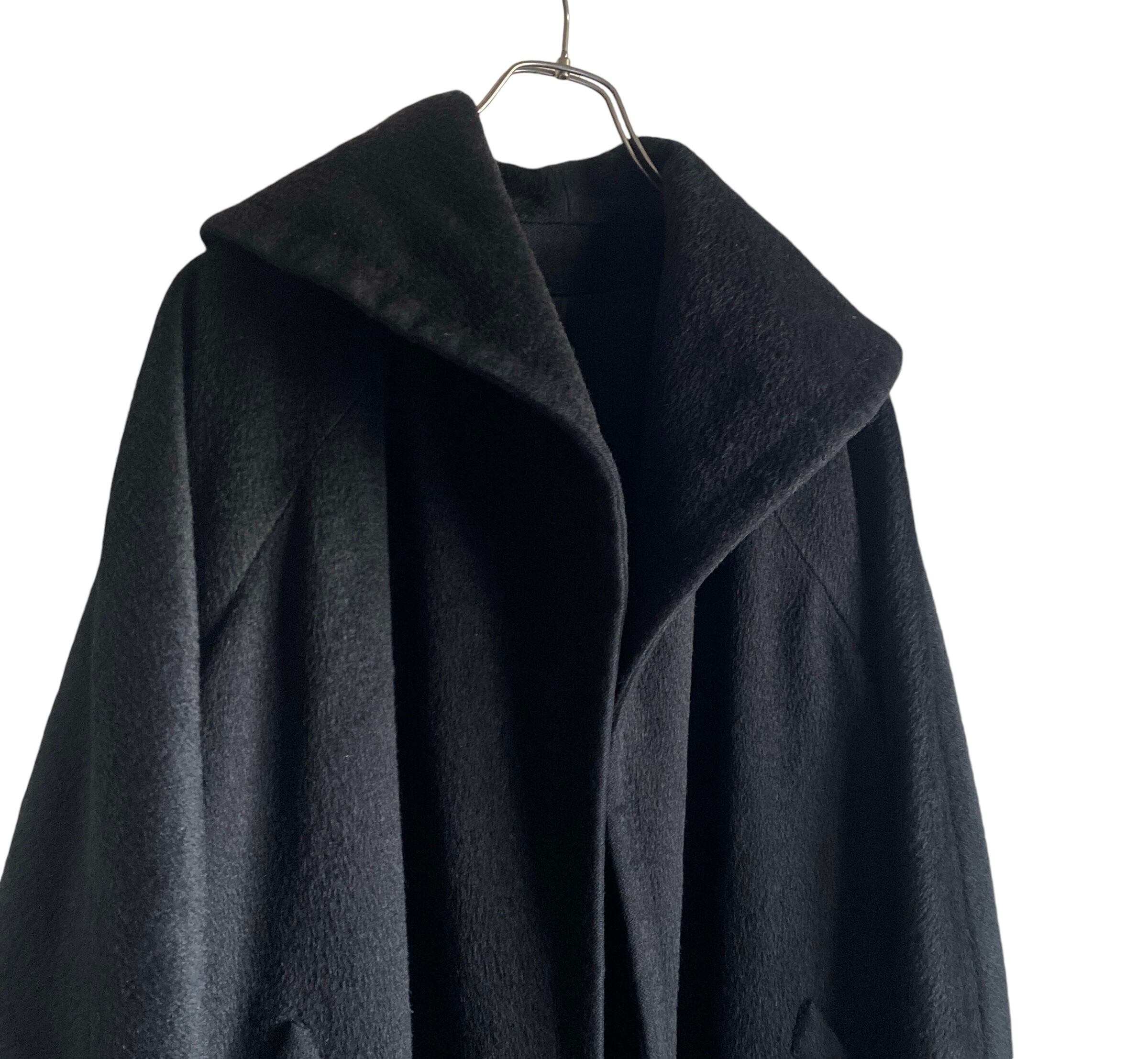 シャギーかつ滑らかで柔らかい非常に上品な生地(モヘア混ないしはアルパカやアンゴラ混のウールだと思われます)に、深みのあるブラックカラー、ゆったりとしたシルエットが非常に格好良い一着。