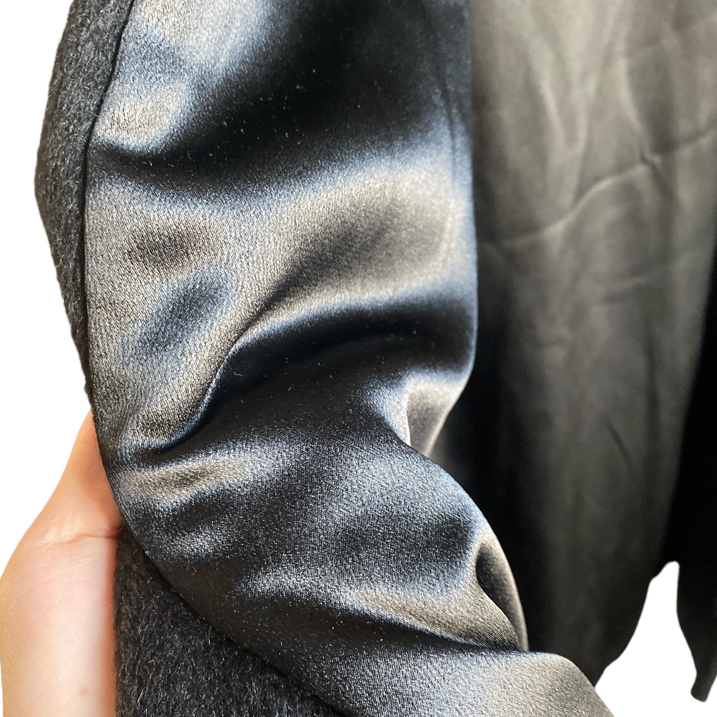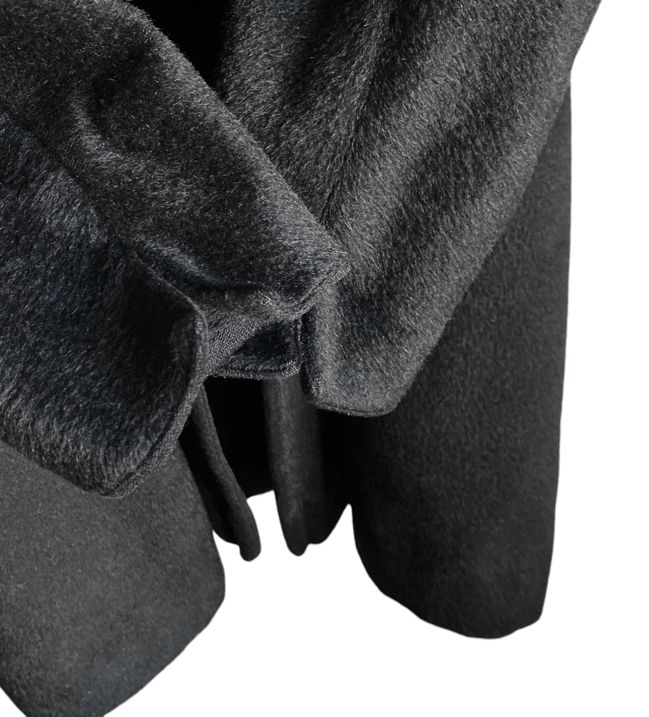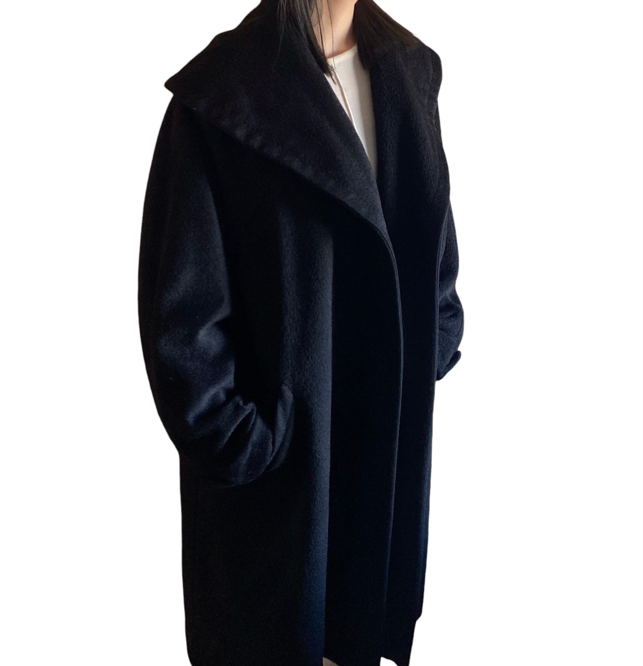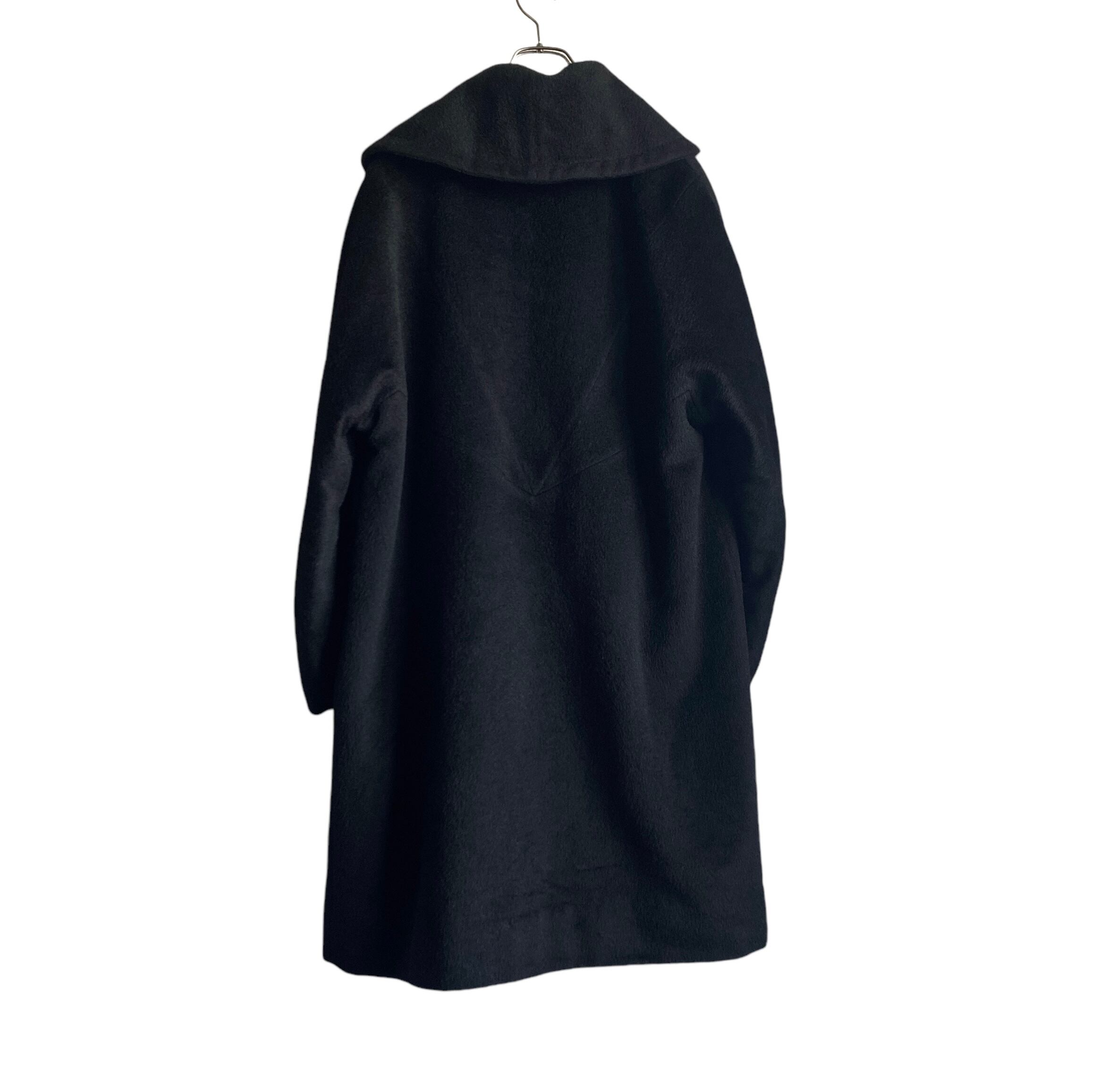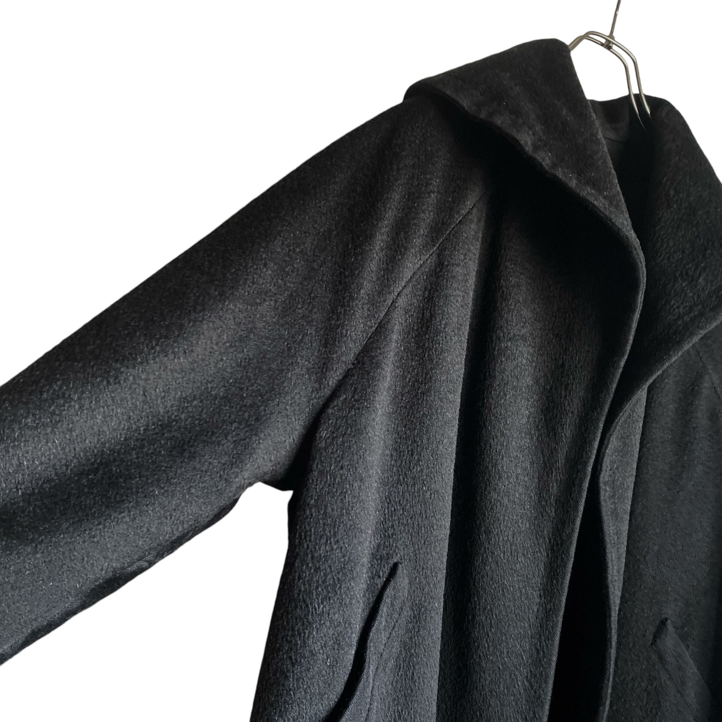 シャギーかつ滑らかで柔らかい非常に上品な生地(モヘア混ないしはアルパカやアンゴラ混のウールだと思われます)に、深みのあるブラックカラー、ゆったりとしたシルエットが非常に格好良い一着。