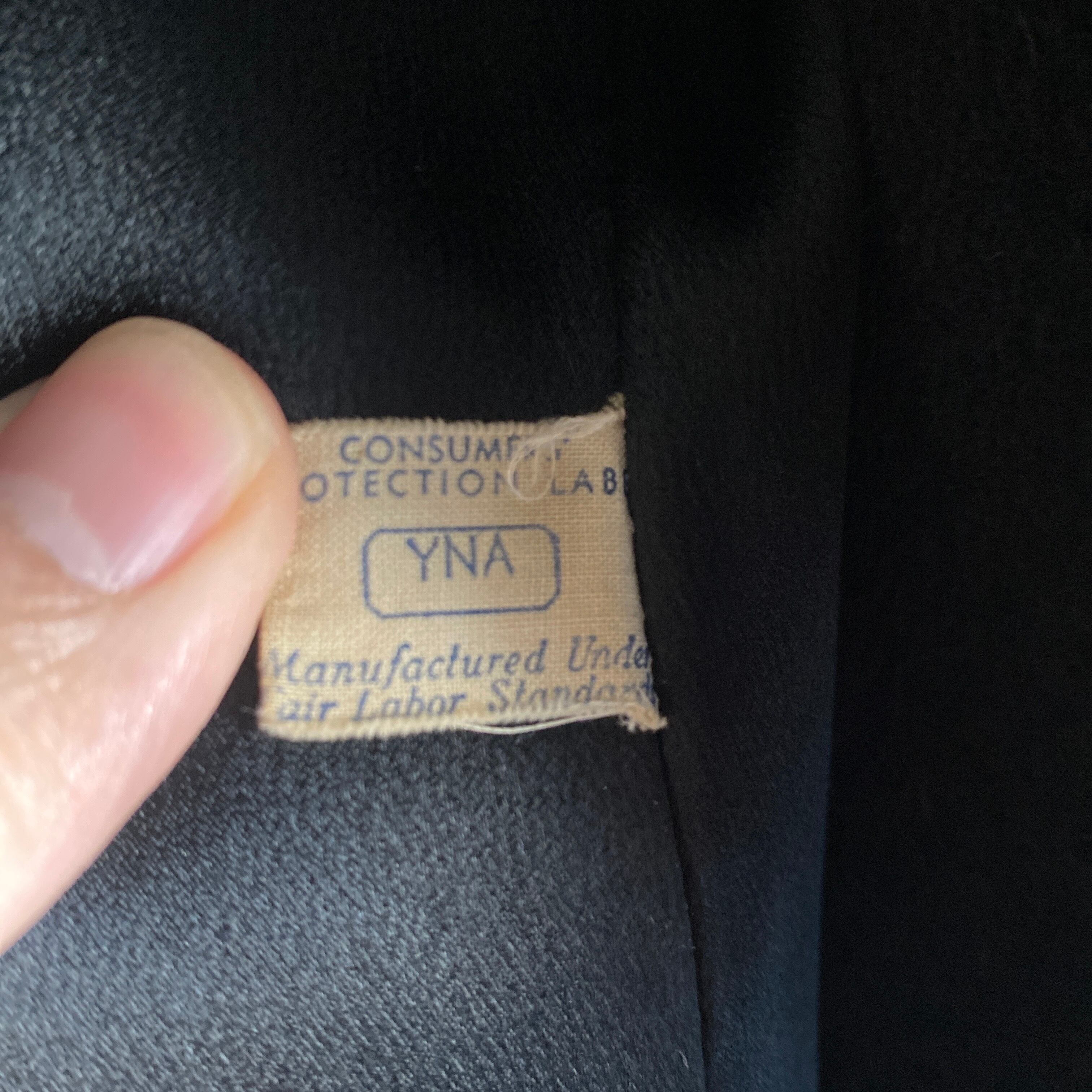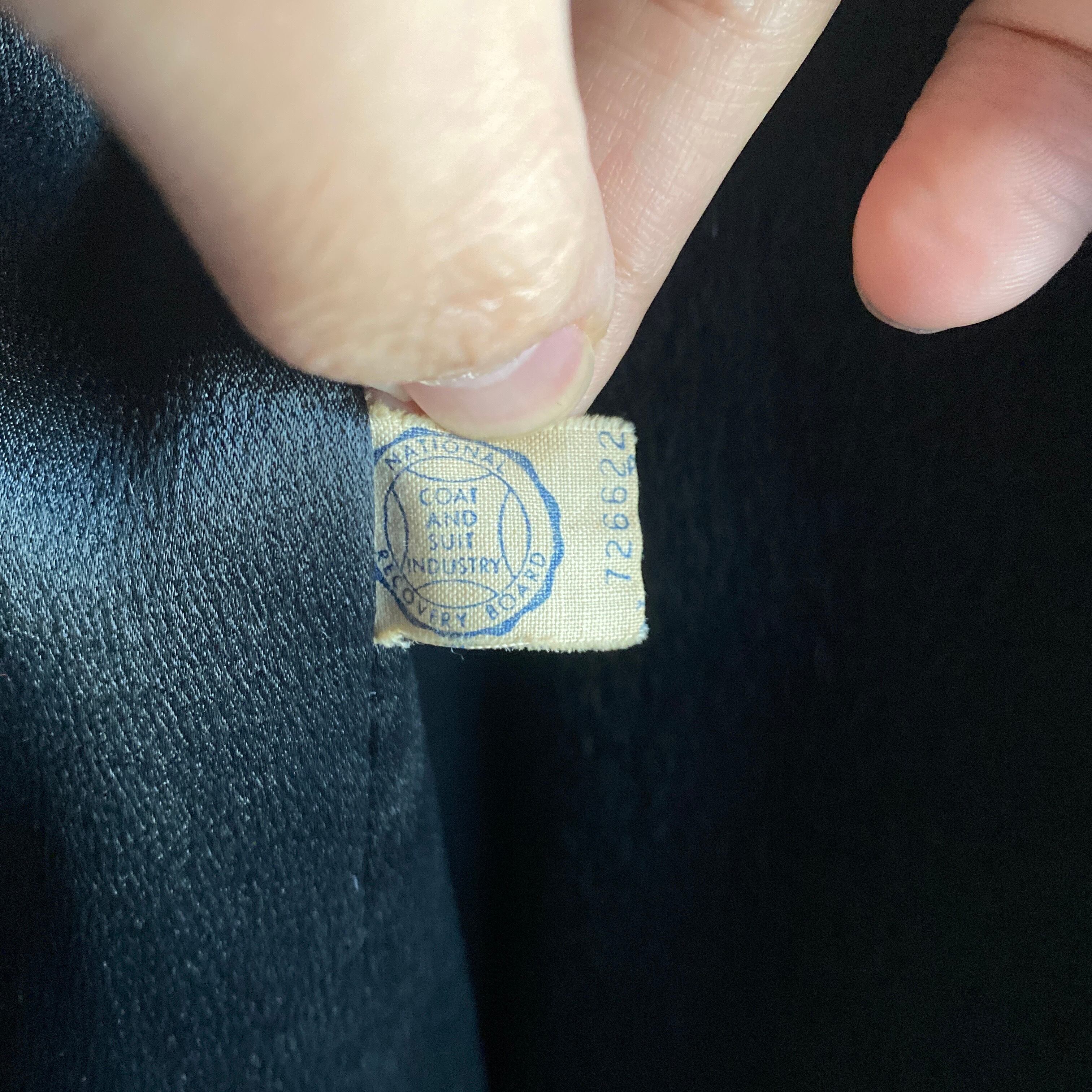 推定1950-60年代頃〜のアメリカ製ボタンレスショールカラーコートになります。(判断材料がcoat and suits industryのタグとオーダータグ?のような物だけなので定かではないですが、作りからして70年代以降ではないと思います)