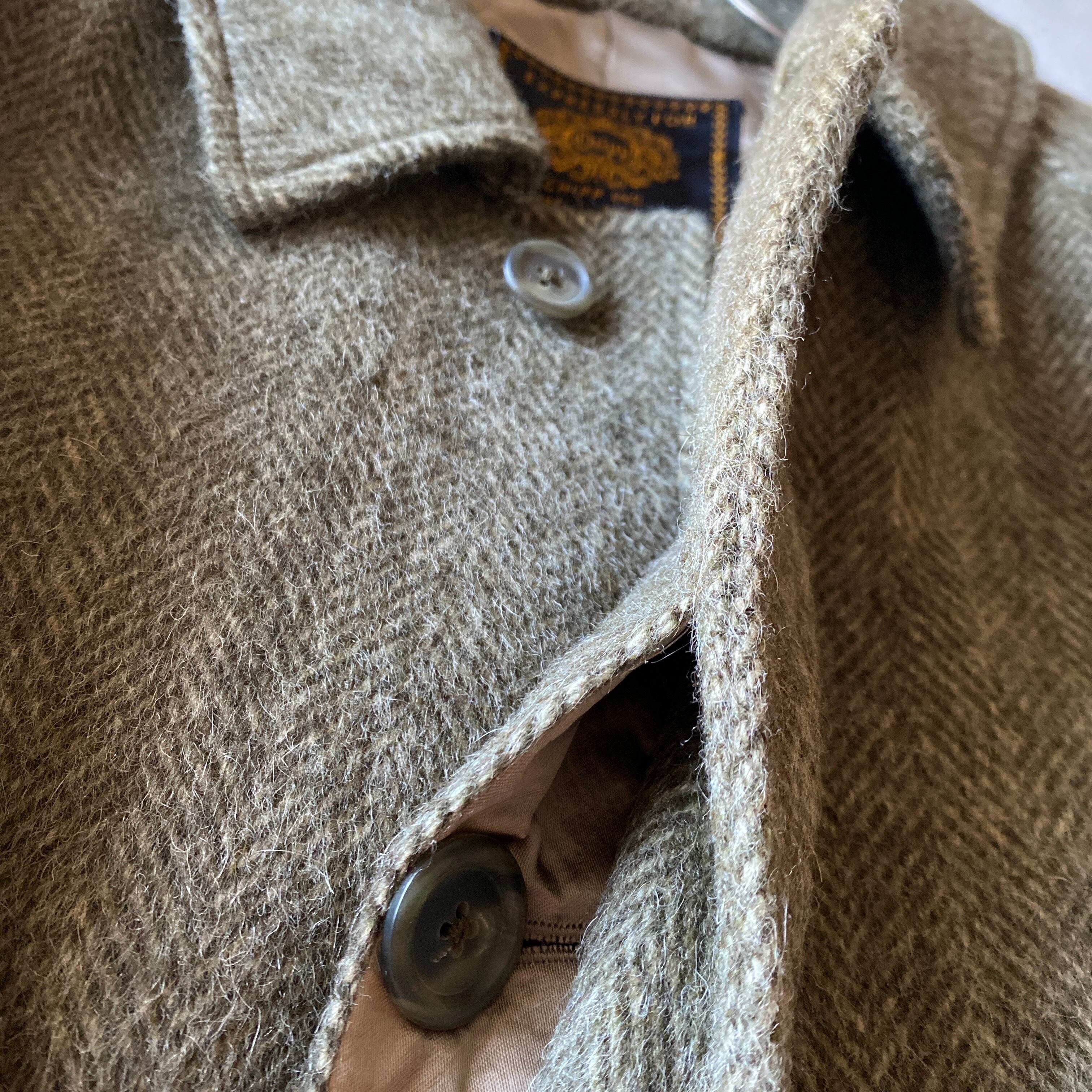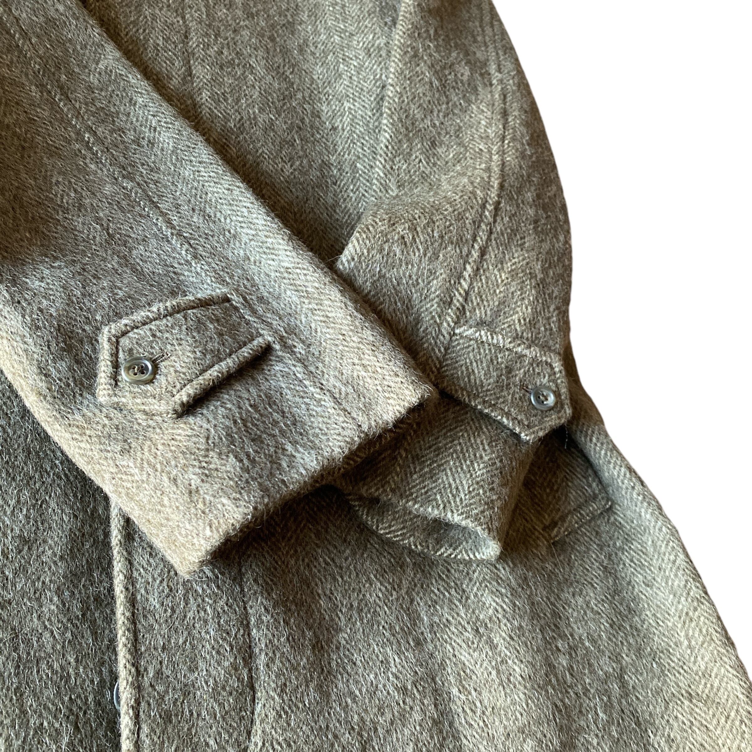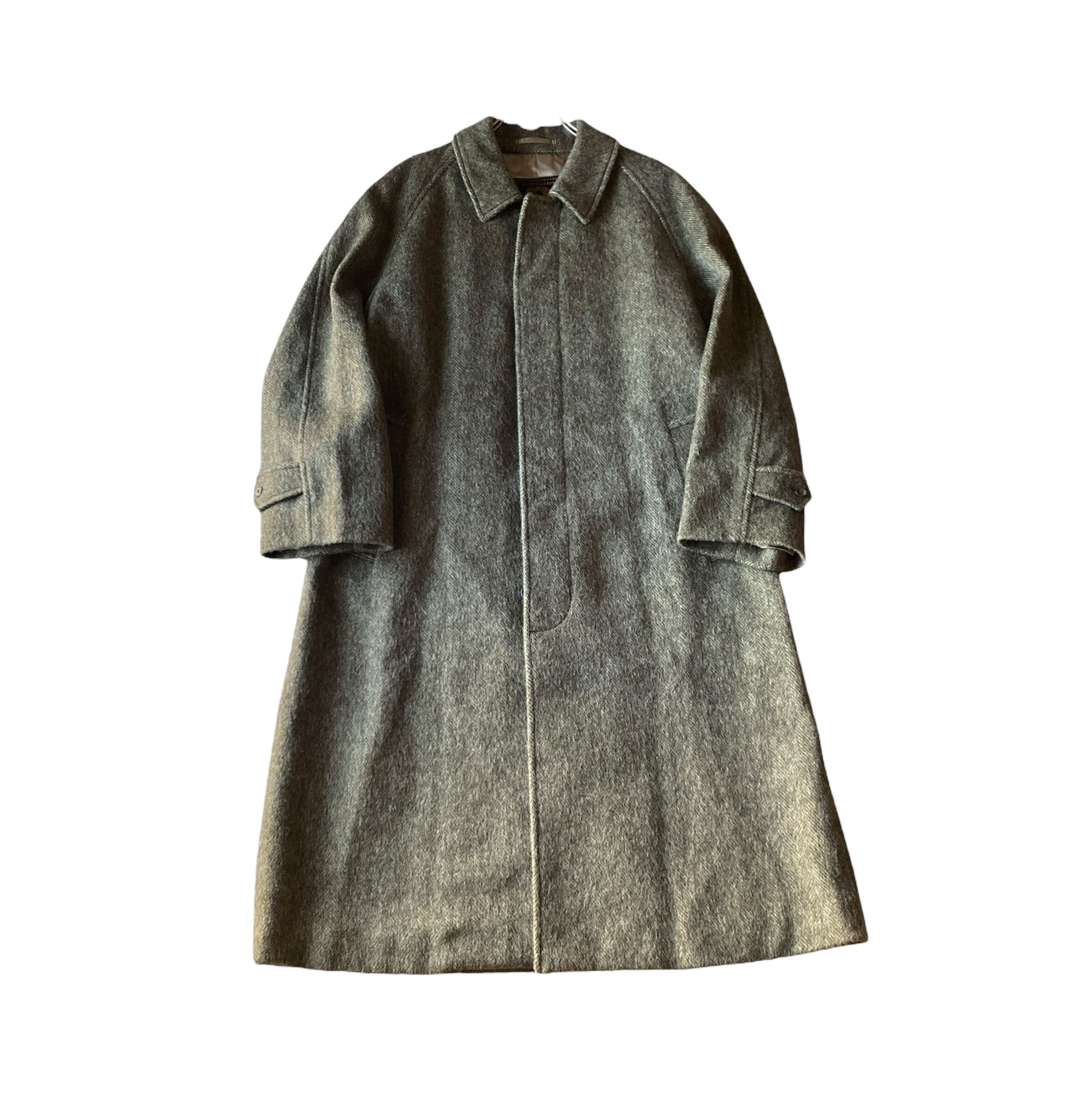 シャギーで滑らかな風合いのウールヘリンボーンローデンクロスに、柔らかく上品なグレーオリーブ系の色目、ロング丈のベーシックなシルエットが非常に格好良い一着。