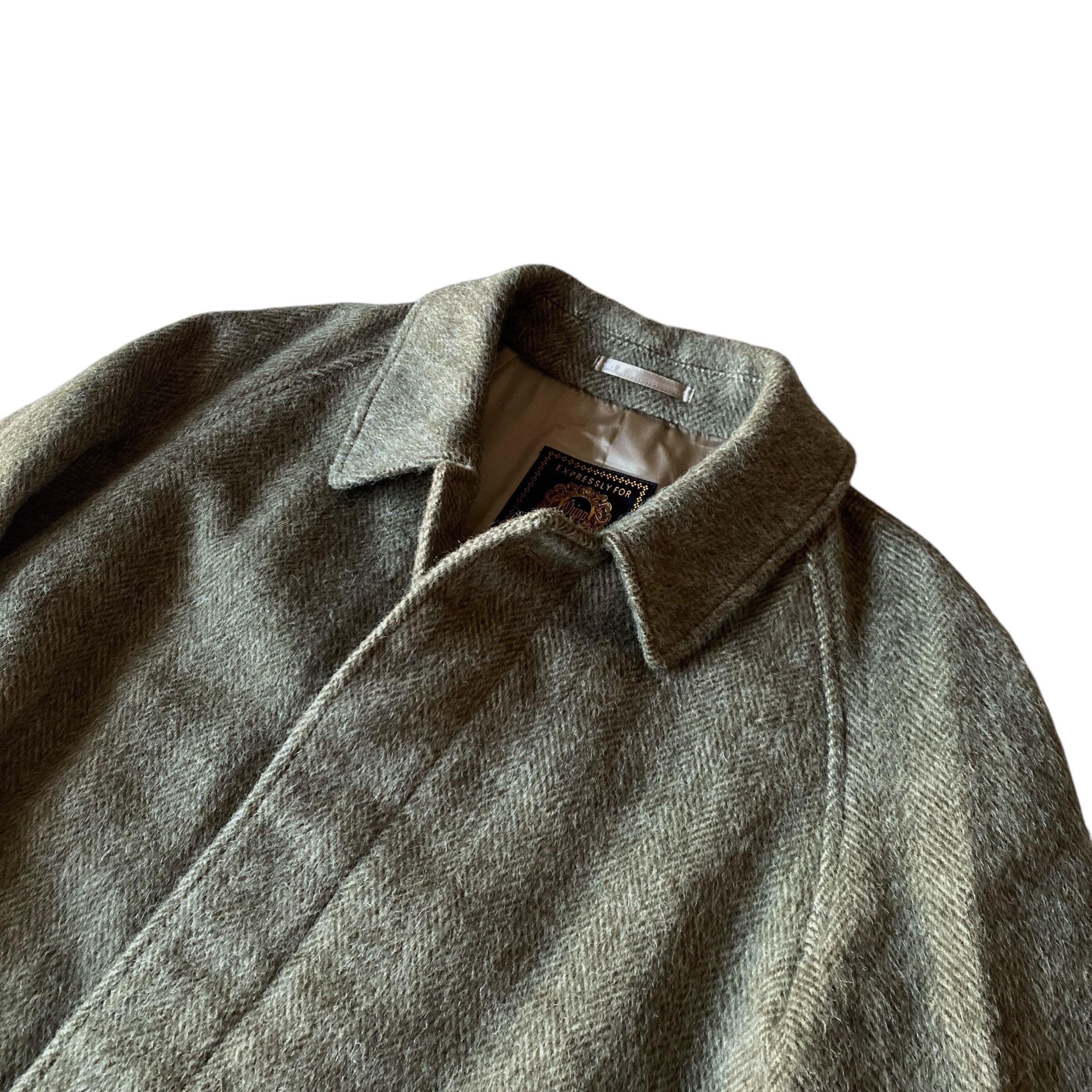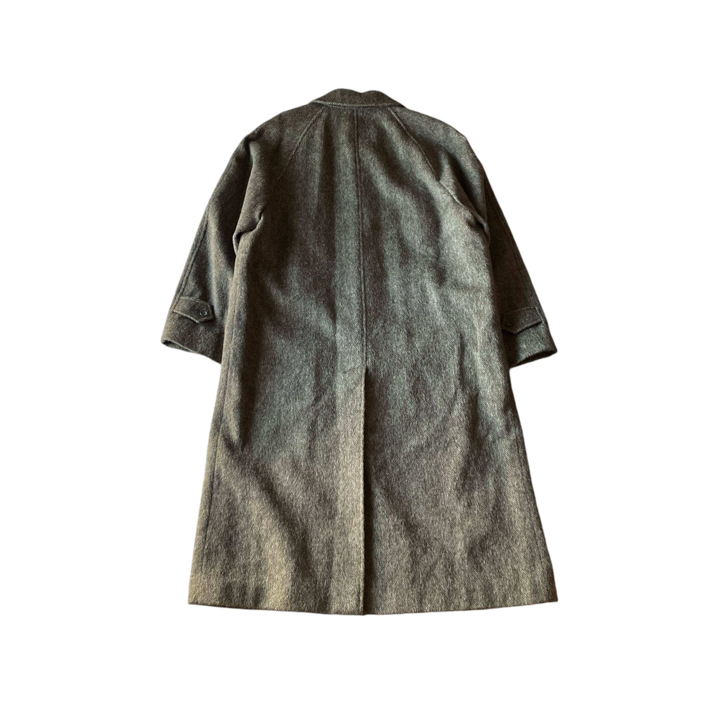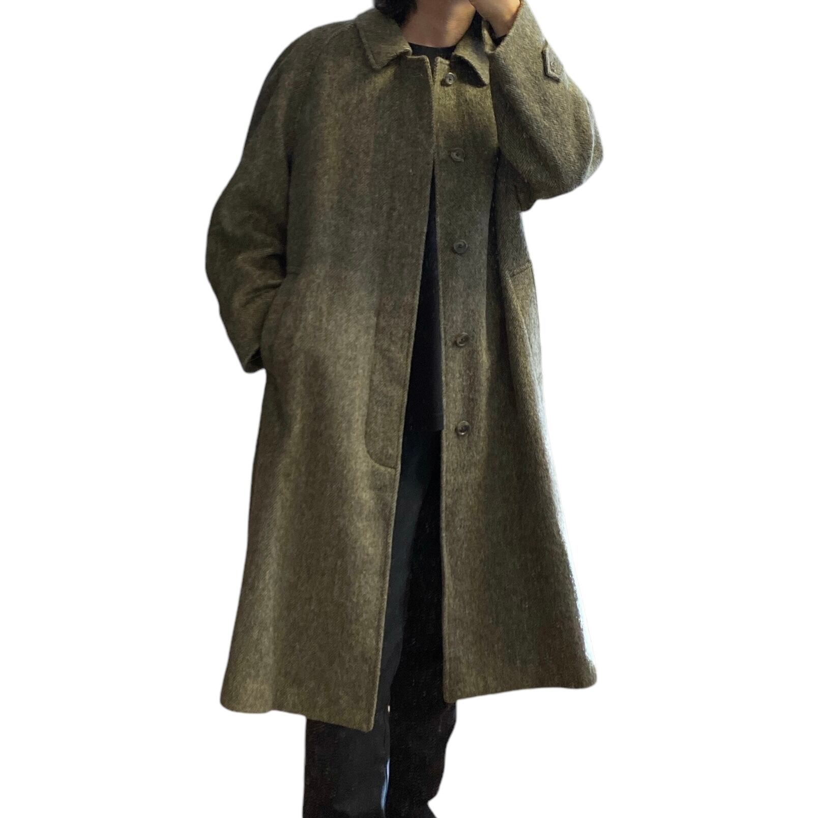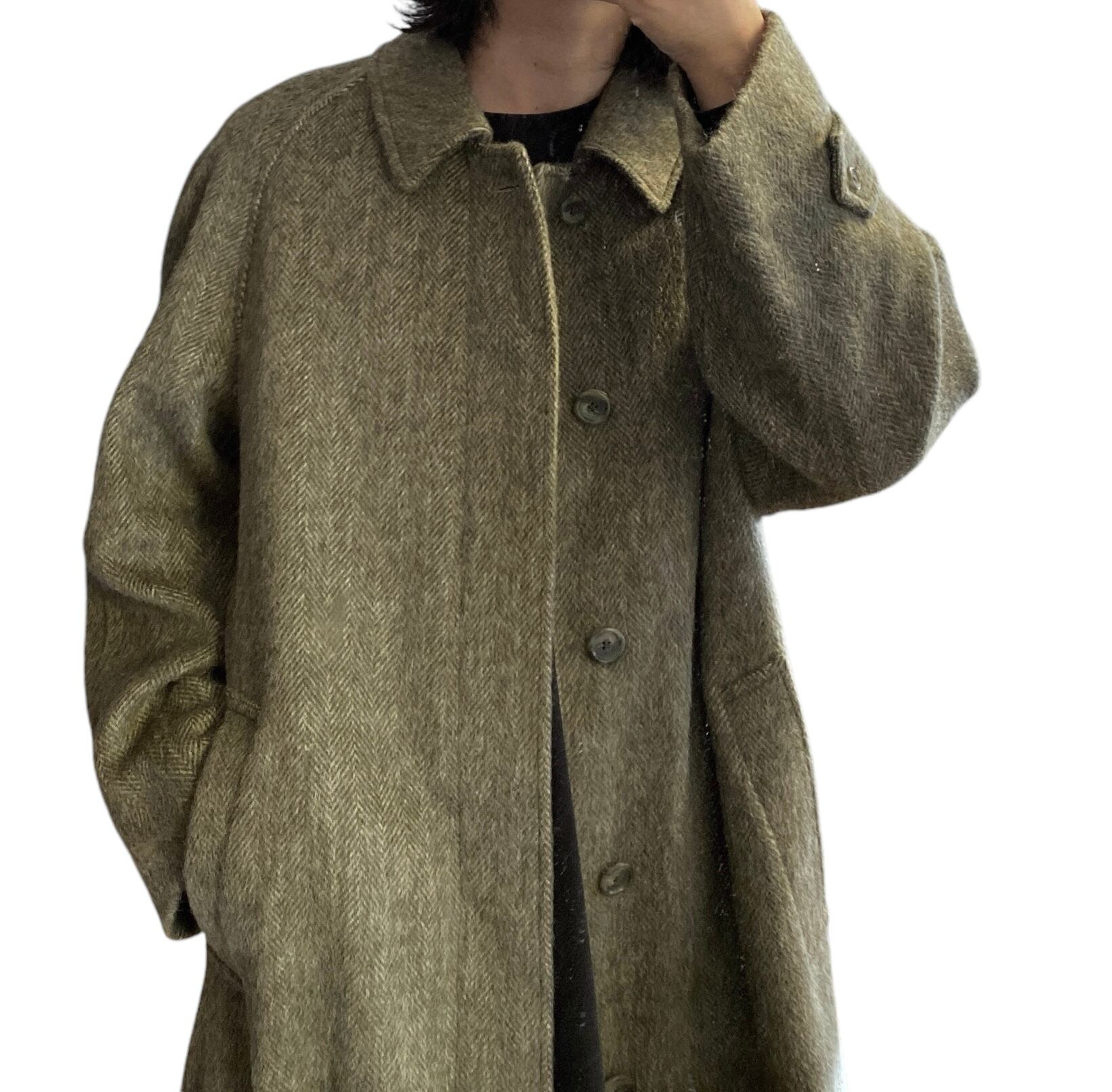 シャギーで滑らかな風合いのウールヘリンボーンローデンクロスに、柔らかく上品なグレーオリーブ系の色目、ロング丈のベーシックなシルエットが非常に格好良い一着。