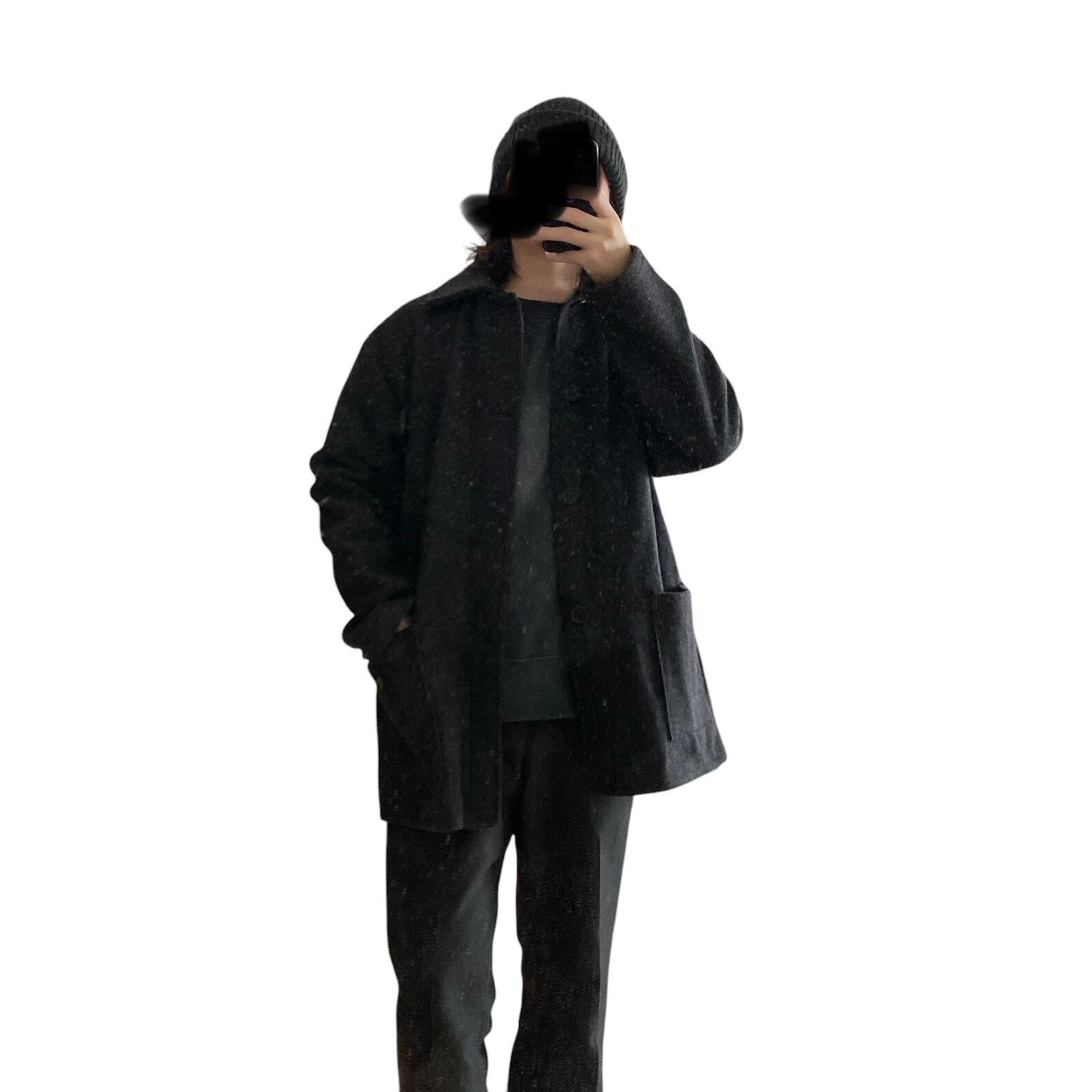 ギュッとつまった中厚手ぐらいのウールメルトンに、深いダークグレーの上品な色目も◎。