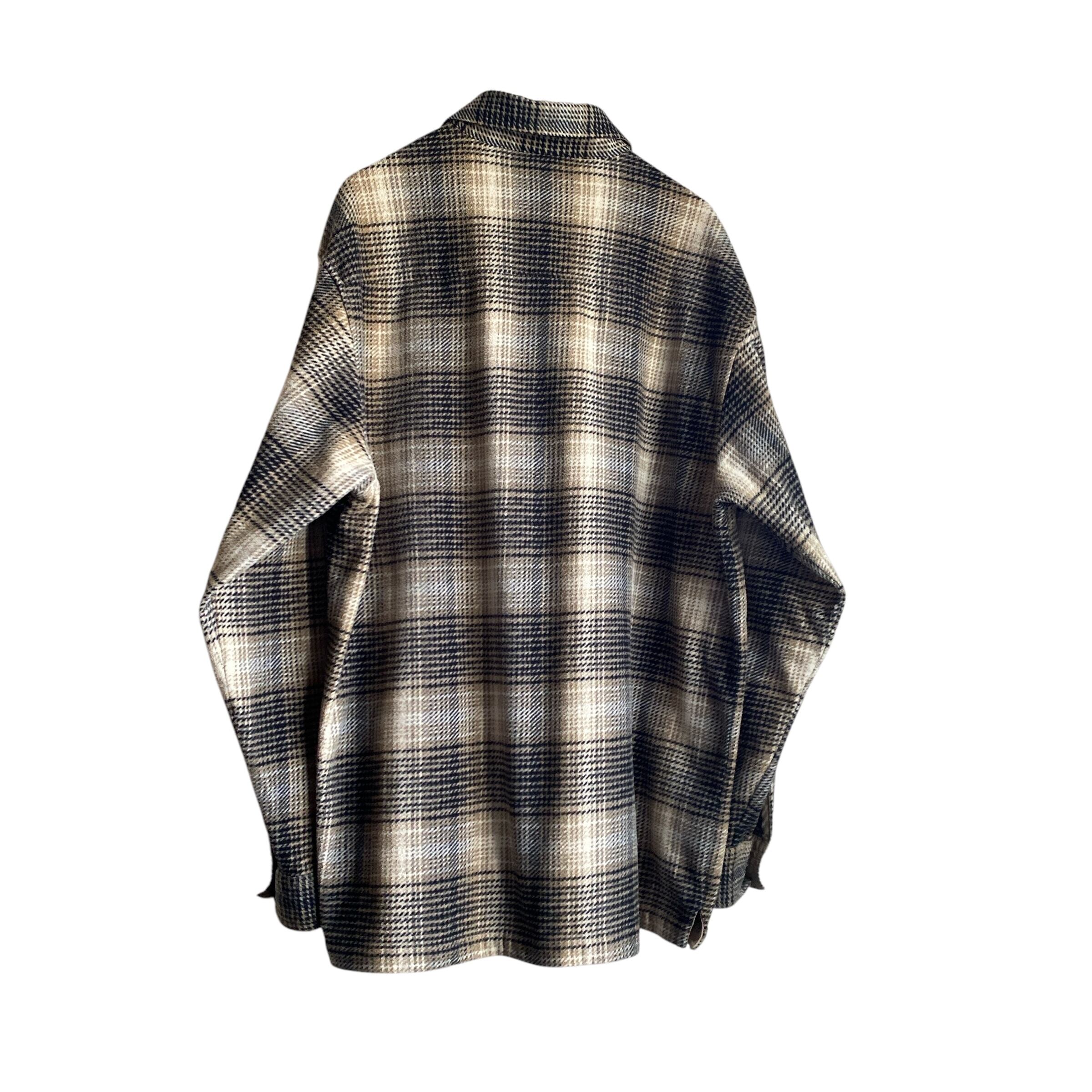 ありそうでないライトフリース素材に、ベージュ×ブラック×ホワイトの綺麗な色目のオンブレチェックが非常に格好良い一着。