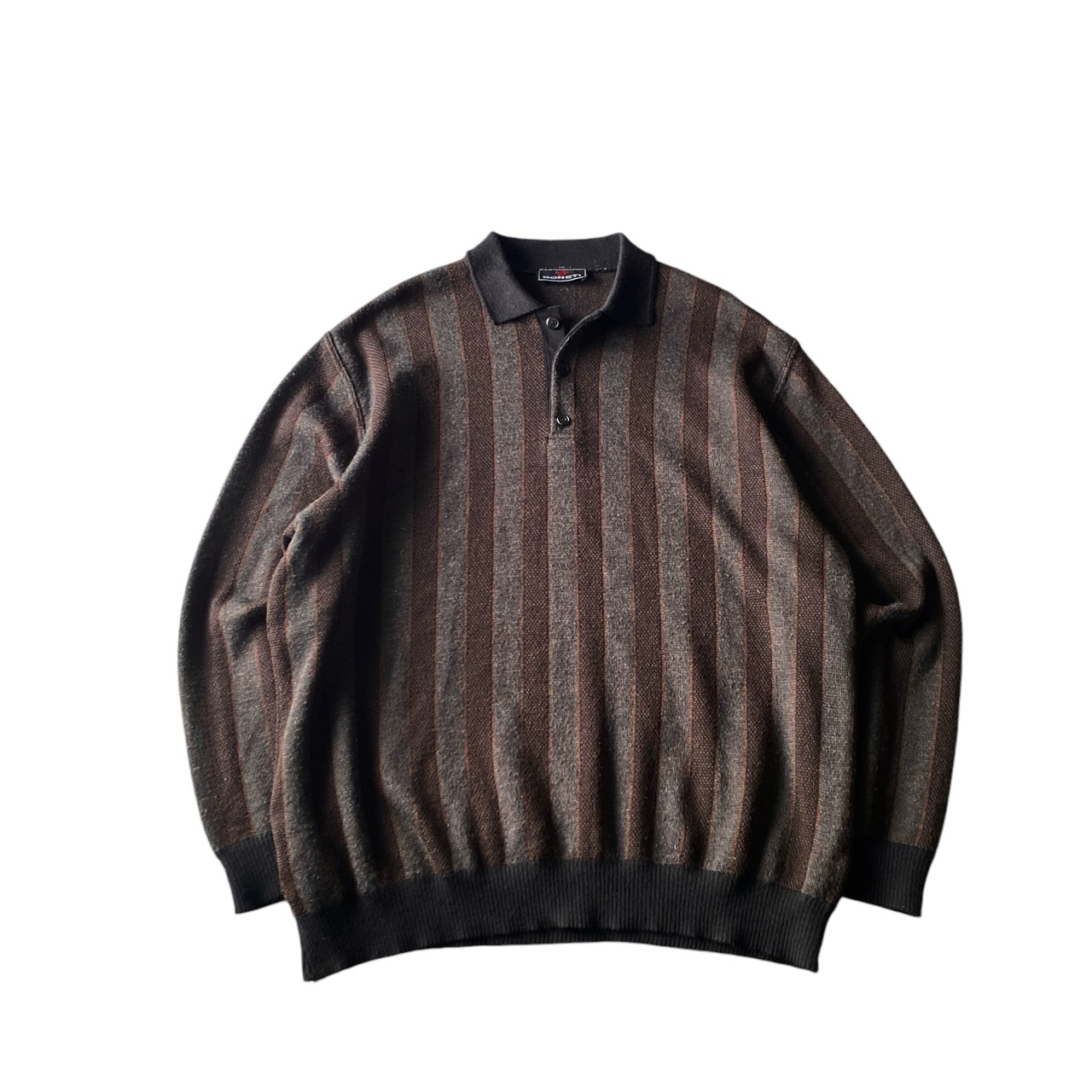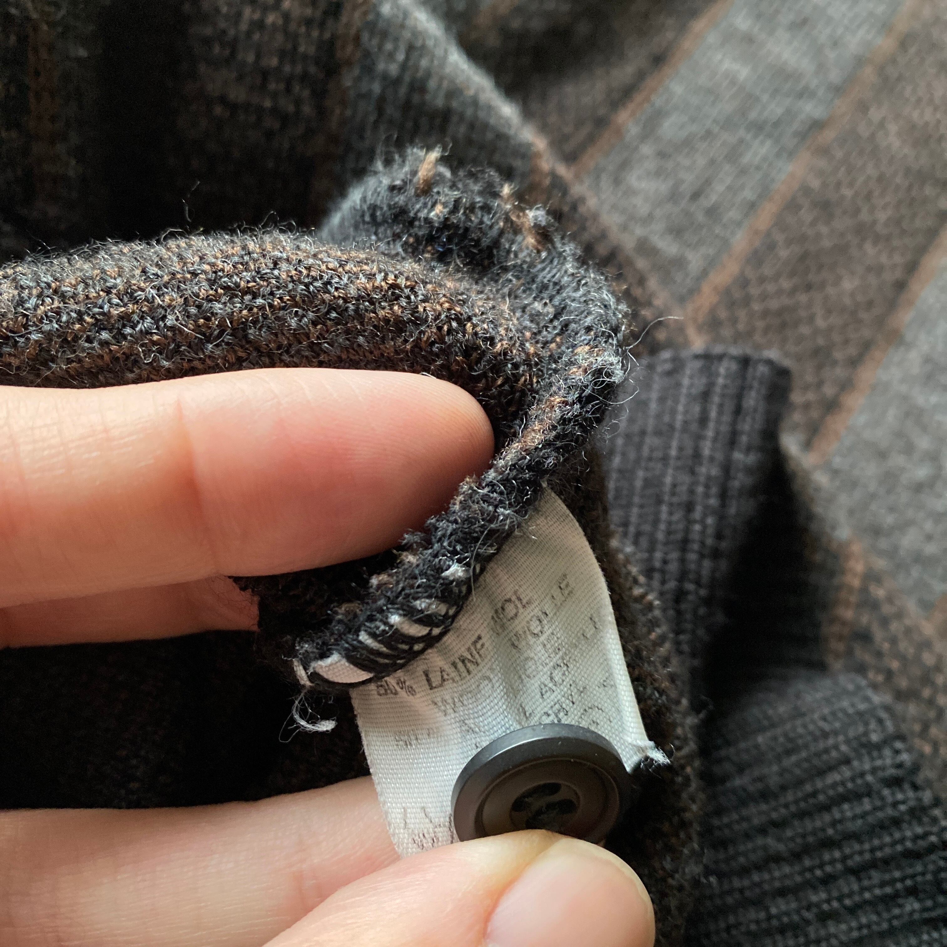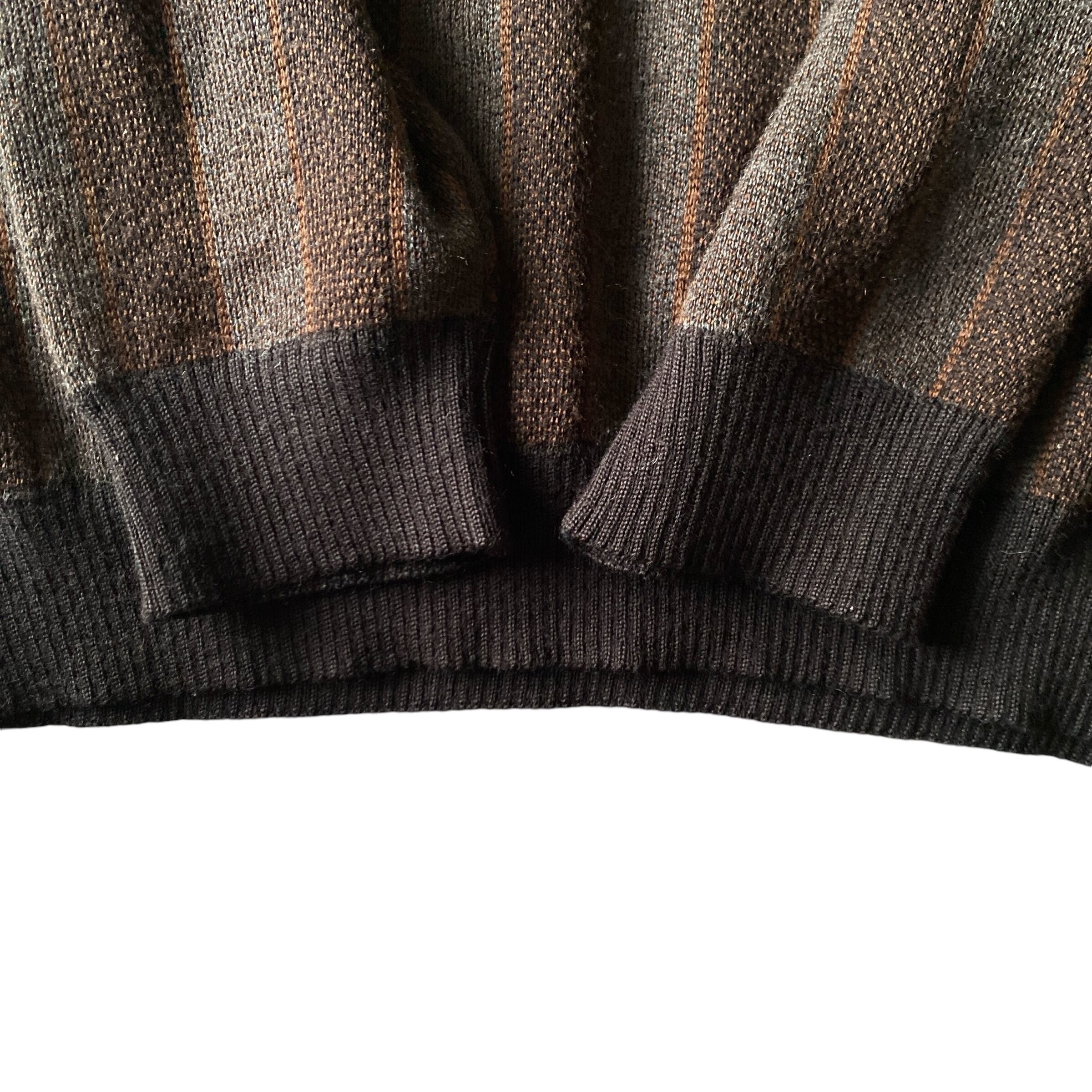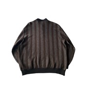 肉厚で落ち感のあるウールアクリル素材のニットに、ブラウンのストライプデザイン、ゆったりとしたビッグシルエットが非常に格好良い一着。