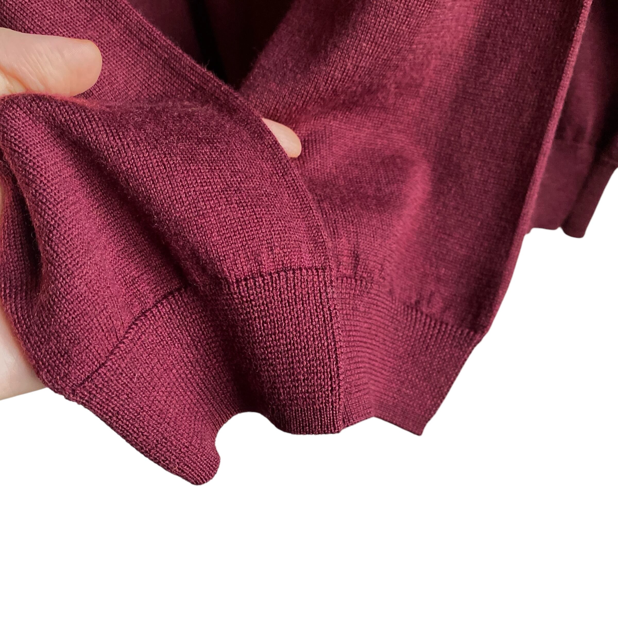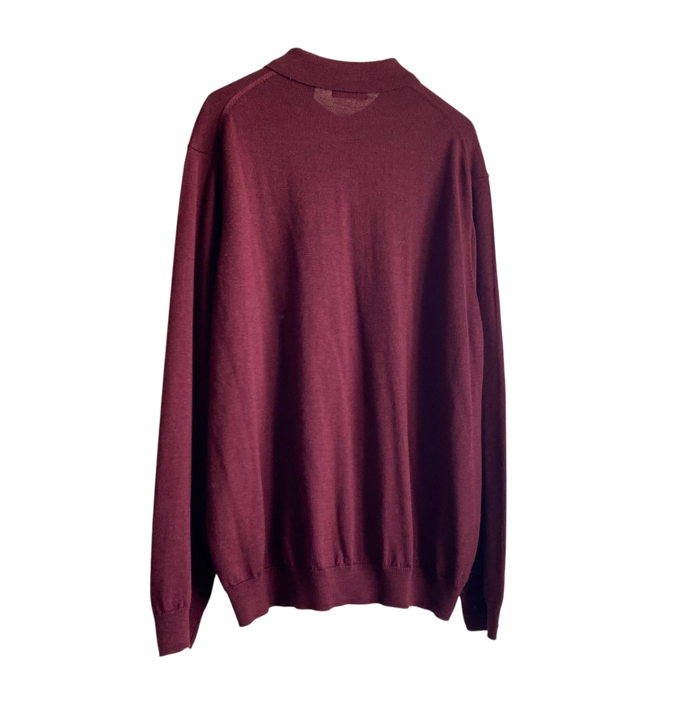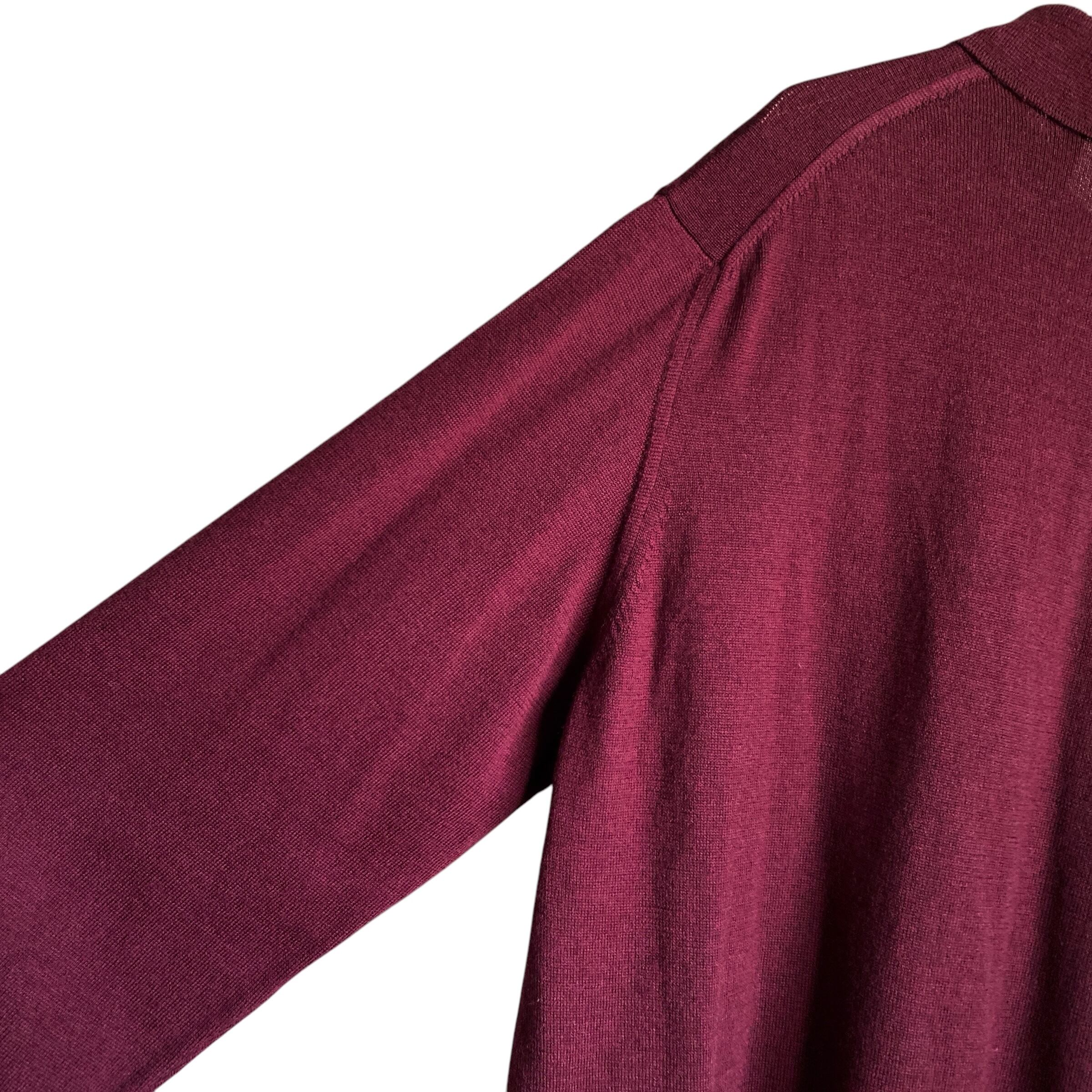 上質で滑らかなハイゲージのメリノウールニットに、上品なバーガンディレッドカラー、程よくゆったりとしたベーシックなシルエットが素晴らしい一着。