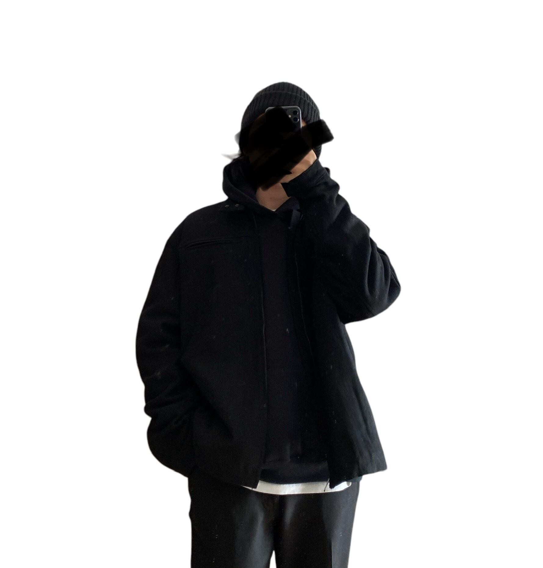 程よく肉厚なウールメルトン生地に、ブラックカラー、ミニマルなシングルライダースデザイン、丸みのある短丈ボックス目なシルエットが非常に格好良い一着。