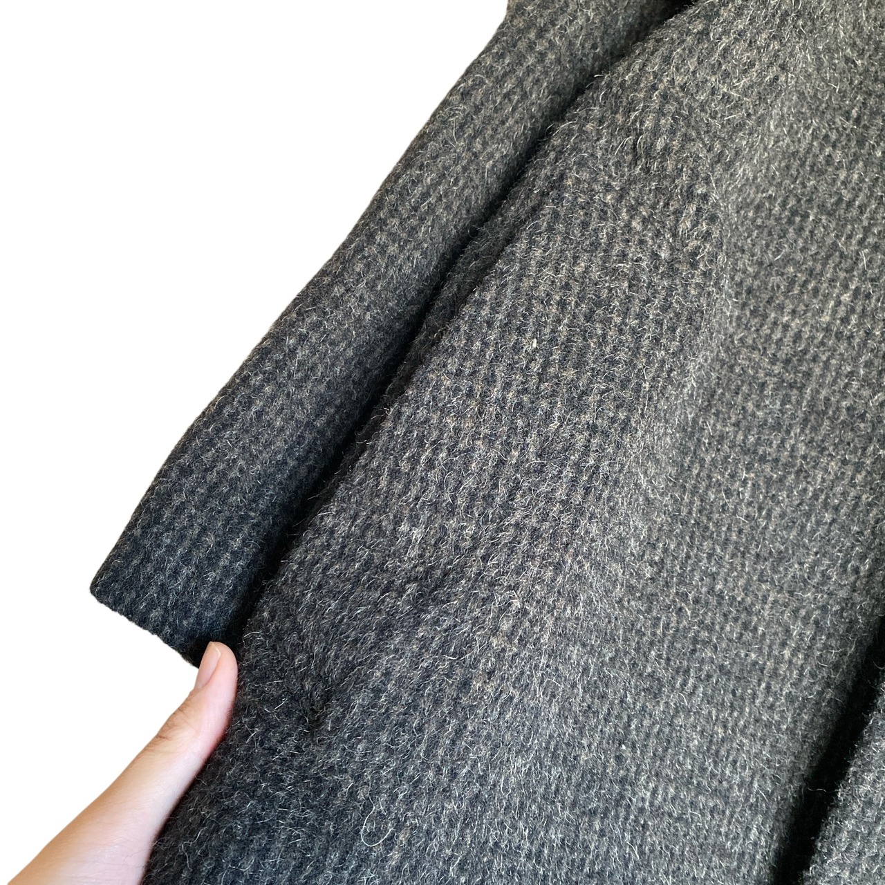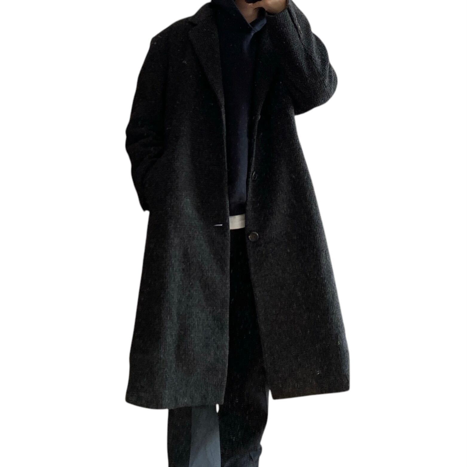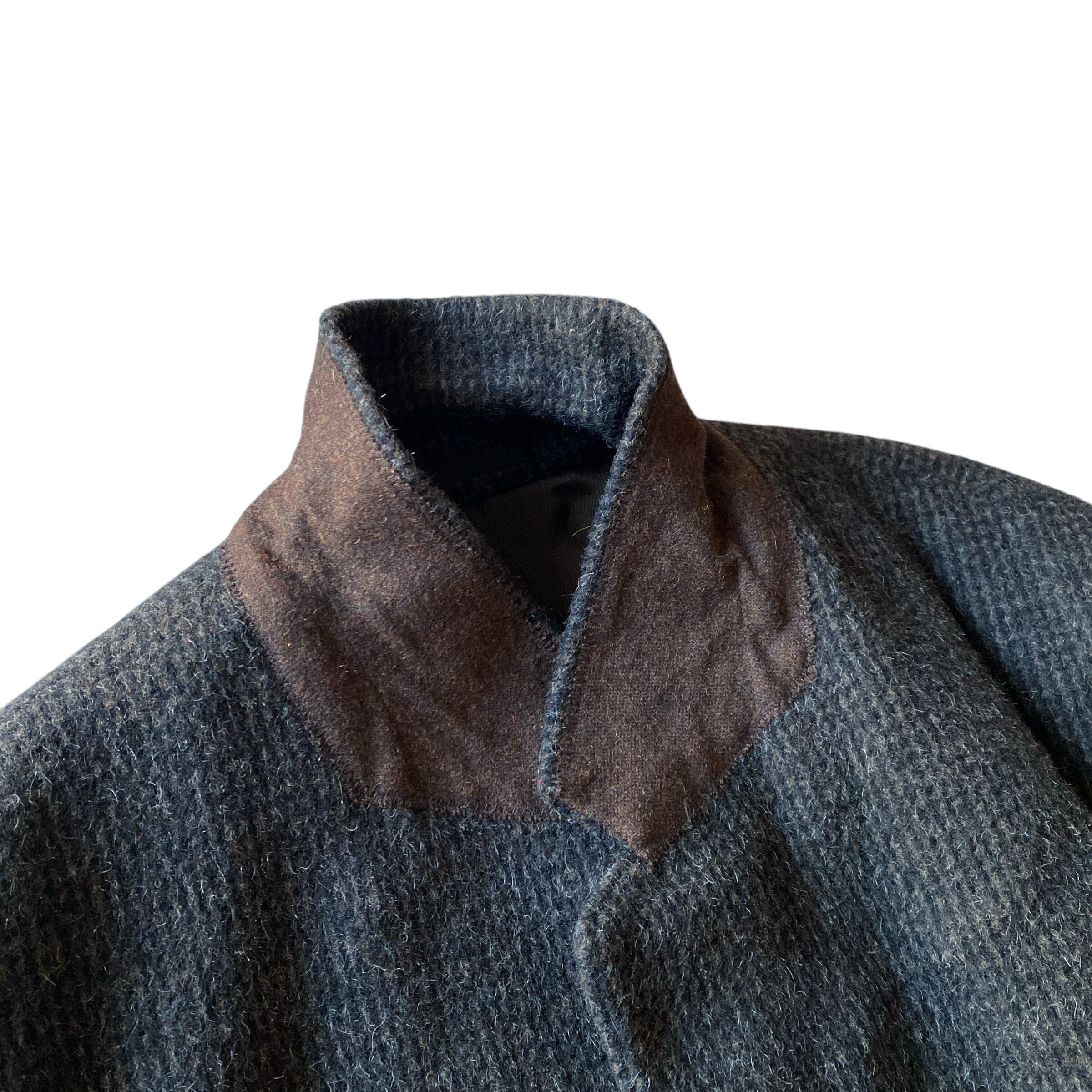 ブラック〜ダークブラウンの奥行きを感じる上品な色目に、肉厚でフワッと柔らかいウールツウィードの質感、オーバーサイジングなシルエットが非常に格好良い一着。