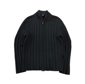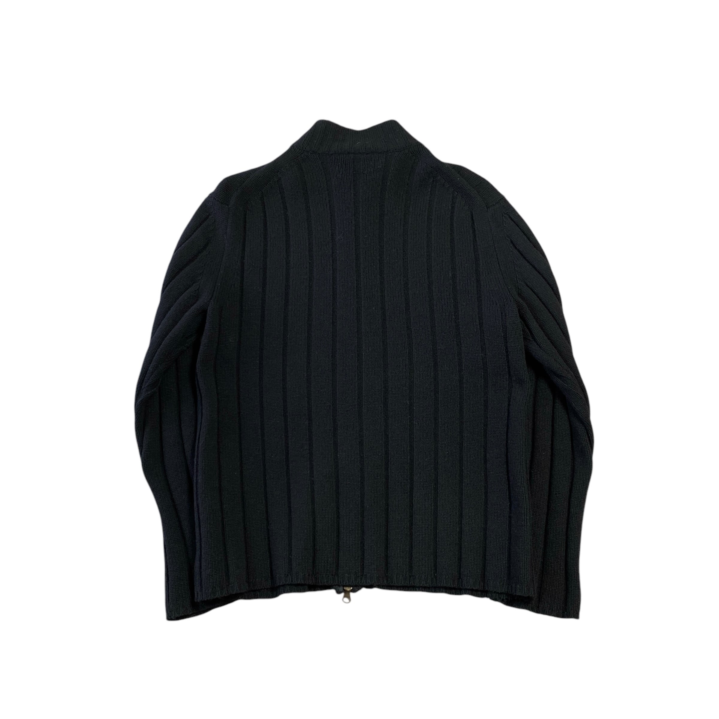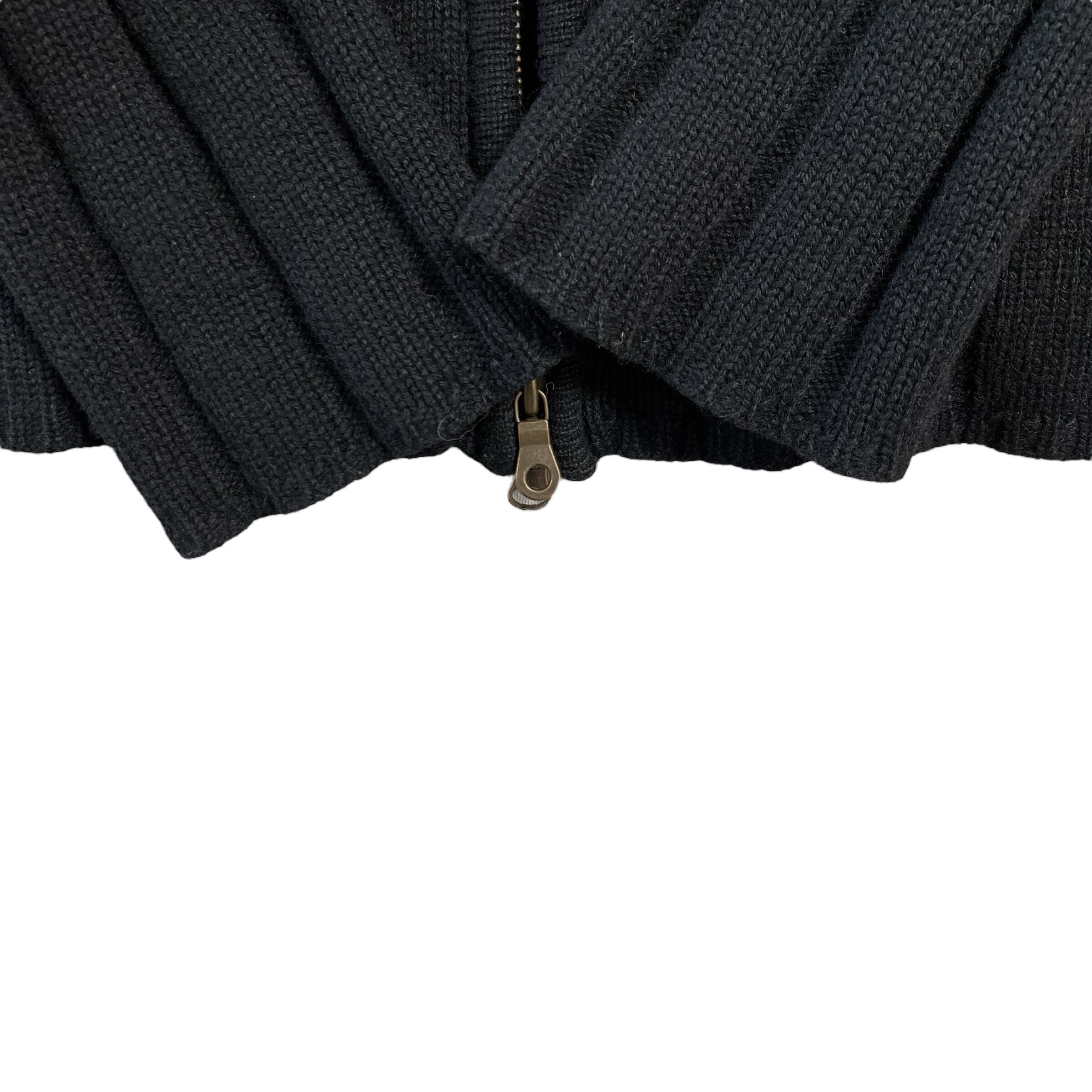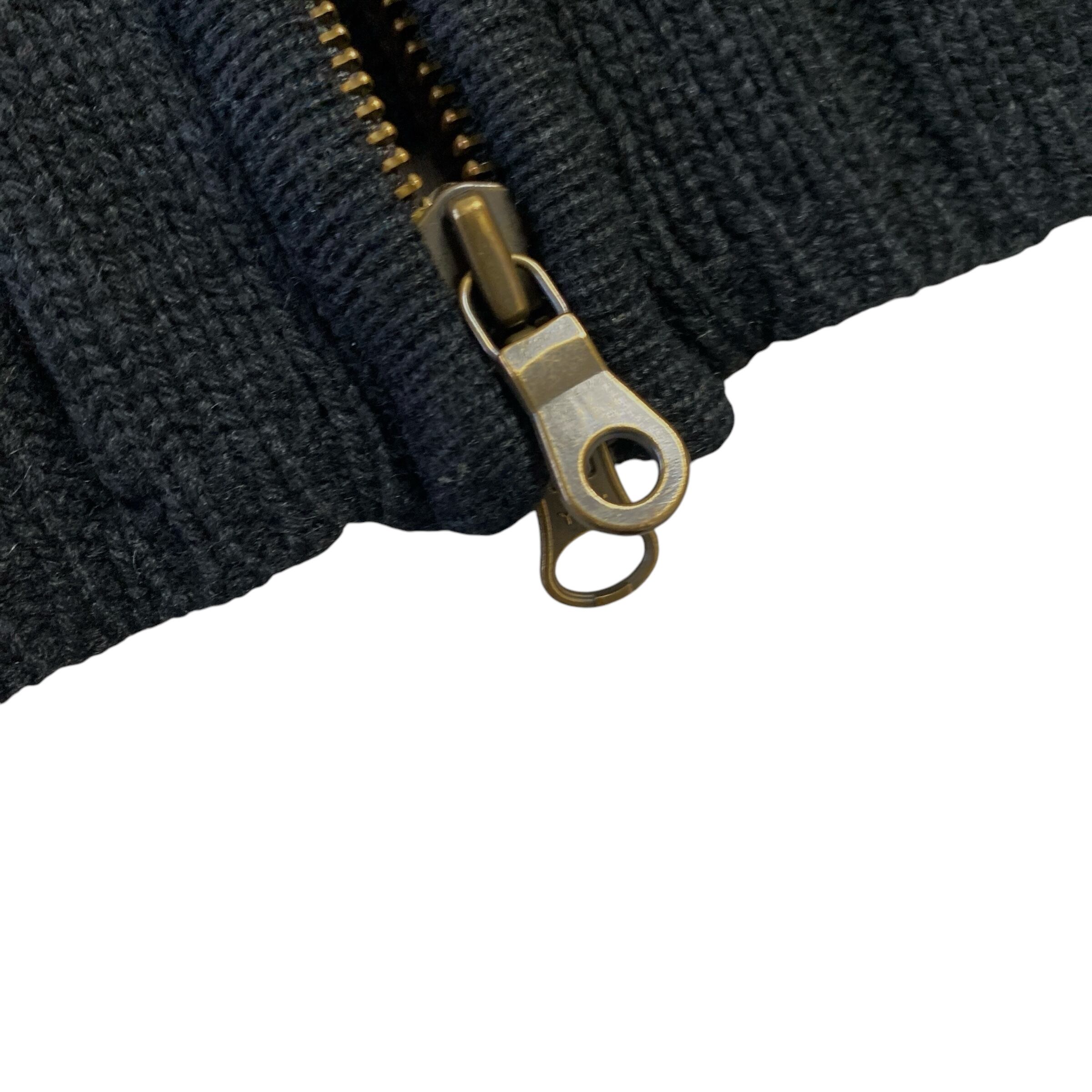 程よく肉厚で風合いの良いブラックカラーのウールリブニットに、シンプルミニマルなダブルジップのハイネックデザインが非常に格好良い一着。