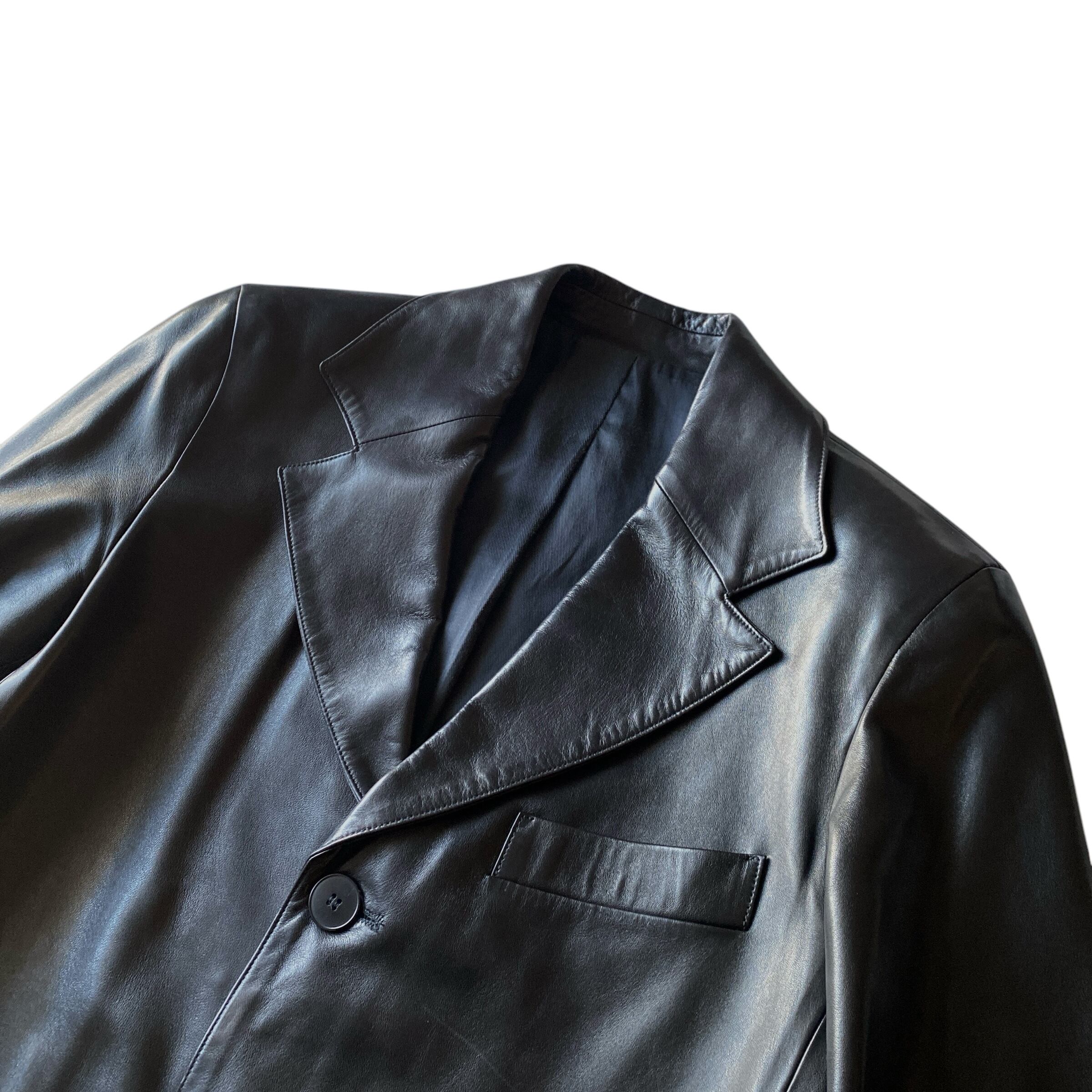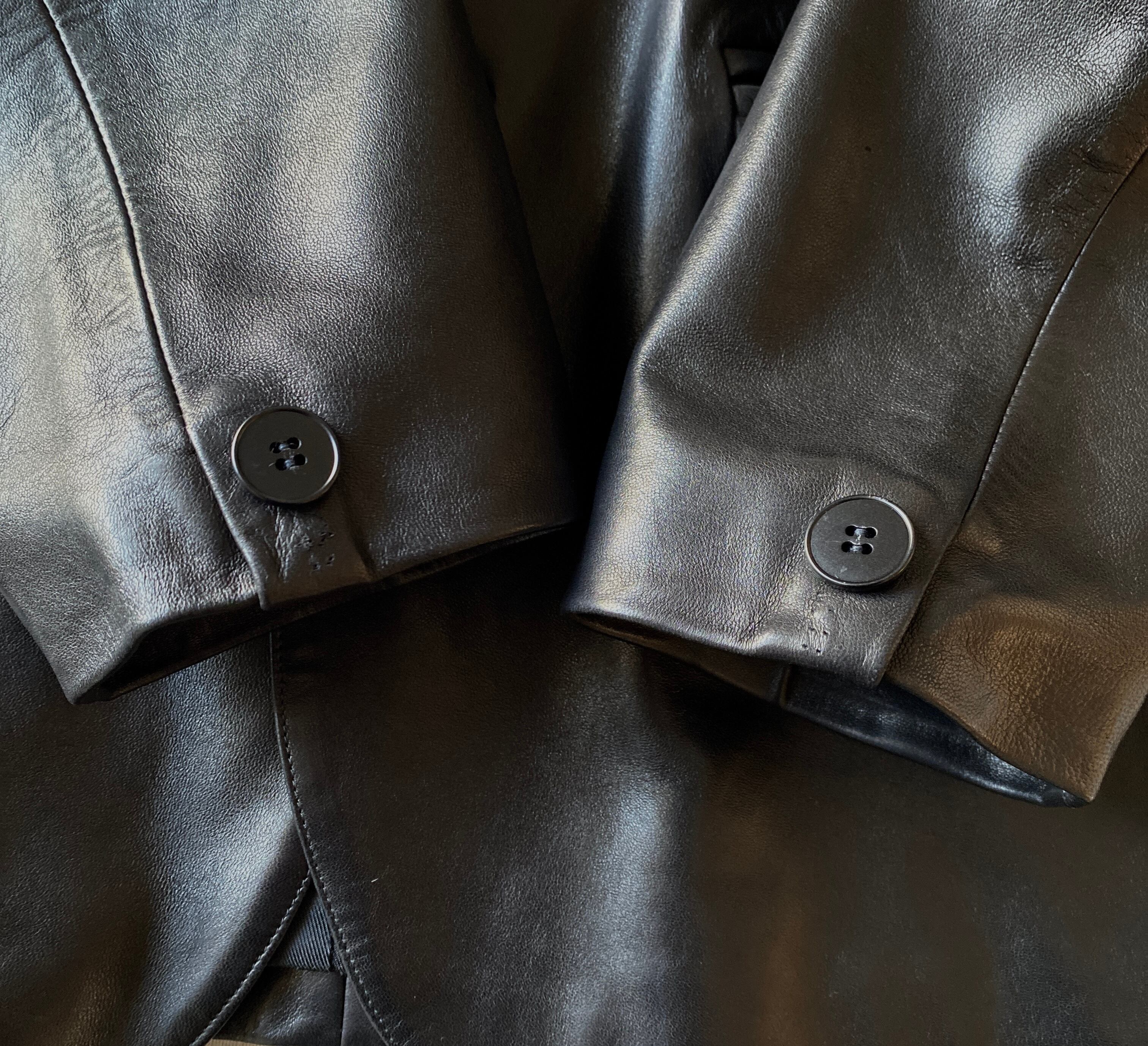 キメが細かくモチっとした手触りの上質なラムレザーに、ブラックカラー、アニエスらしいスラッとしたシルエットが非常に格好良い一着。