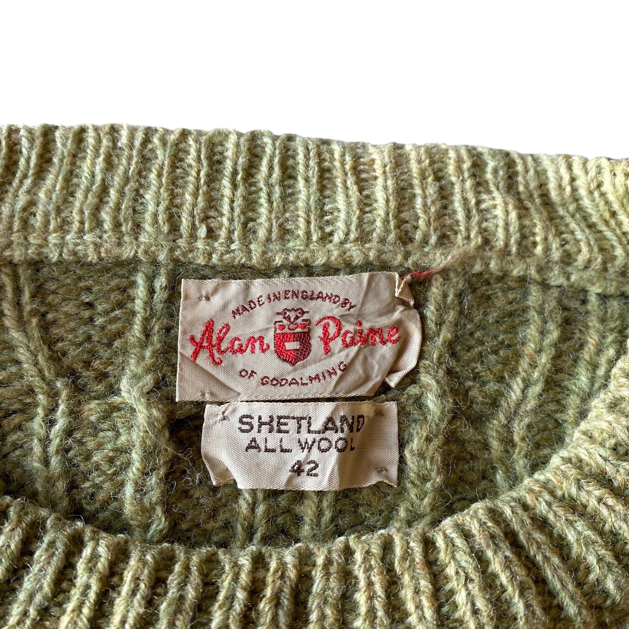 〜1960年代頃のEngland製「アランペイン」シェットランドウールクルーネックニットセーターになります。