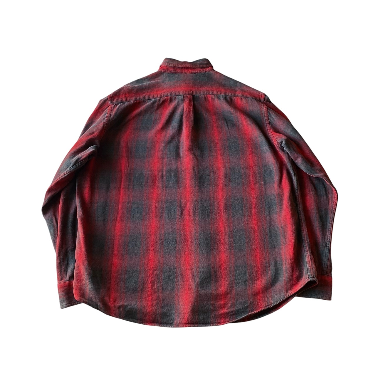 程よくフェードしたブラック×レッドのオンブレチェックに、ゆったりとしたシルエットが非常に格好良い一着。
