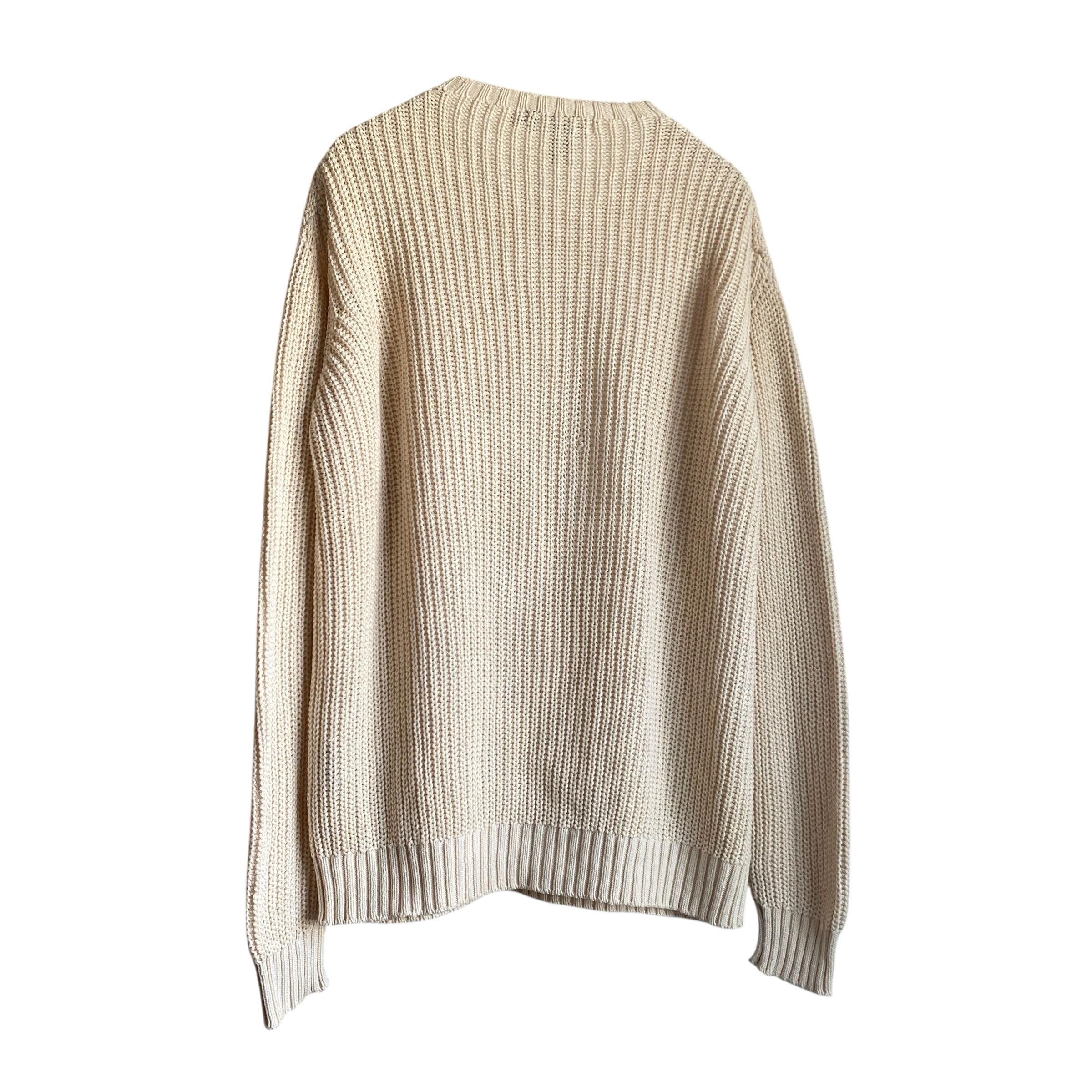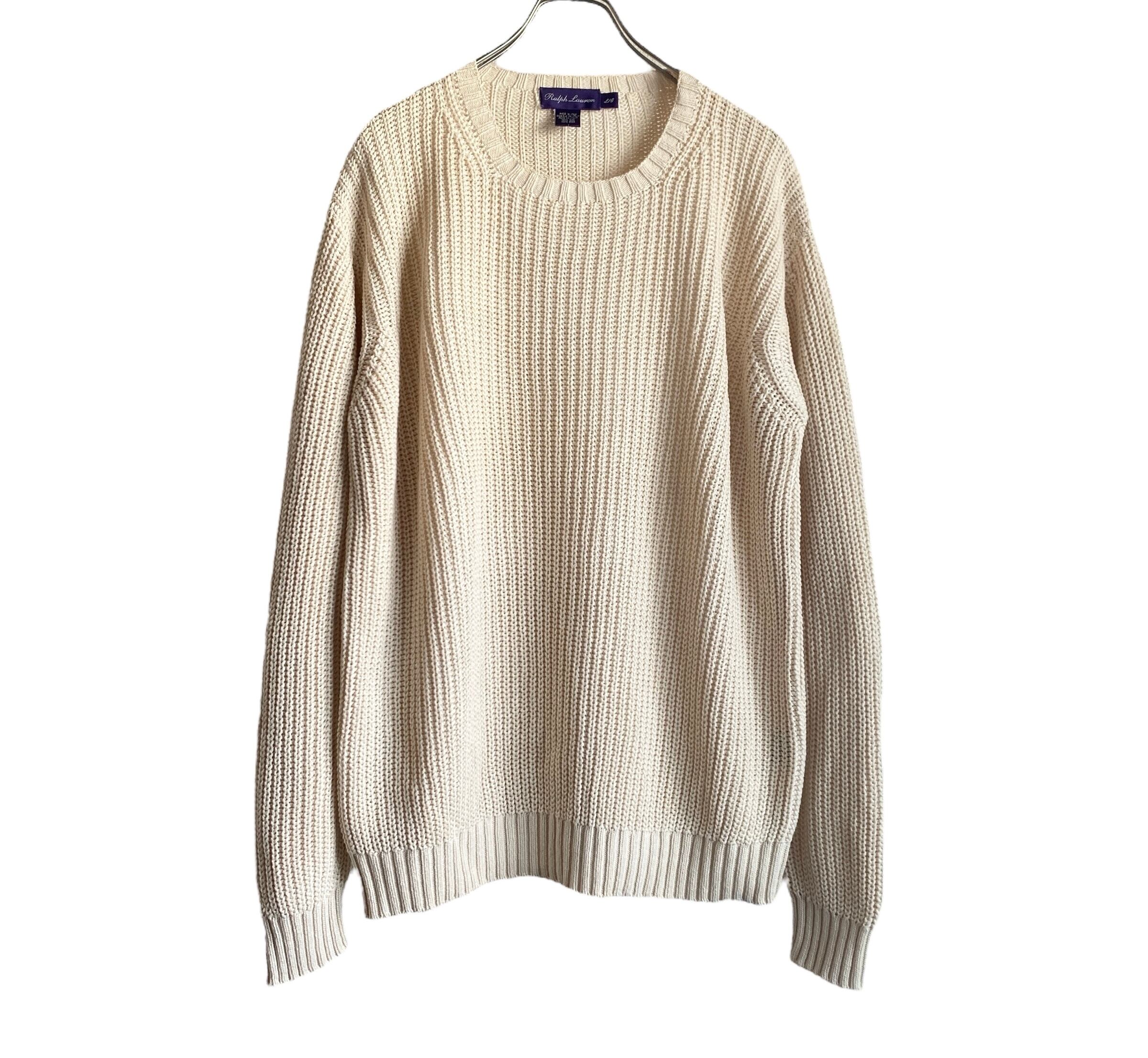 polo byのラインでも見かけるようなクルーネックのざっくりとした編みのセーターですが、こちらはポニー刺繍の入らないシンプルでミニマルな一着。