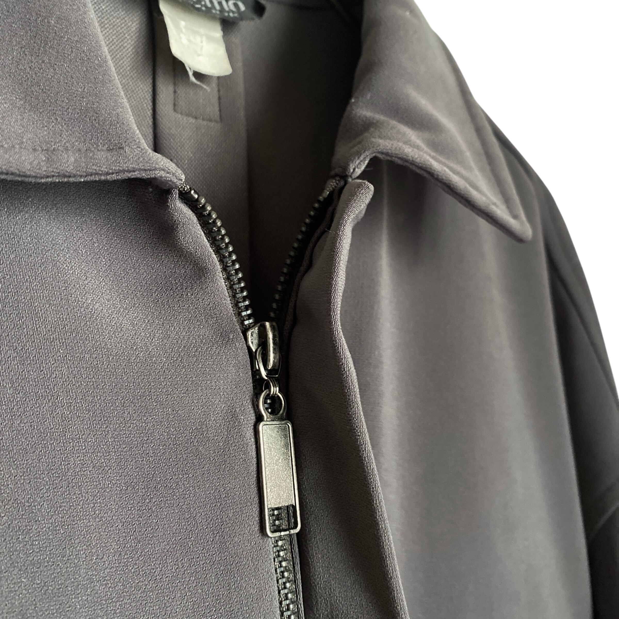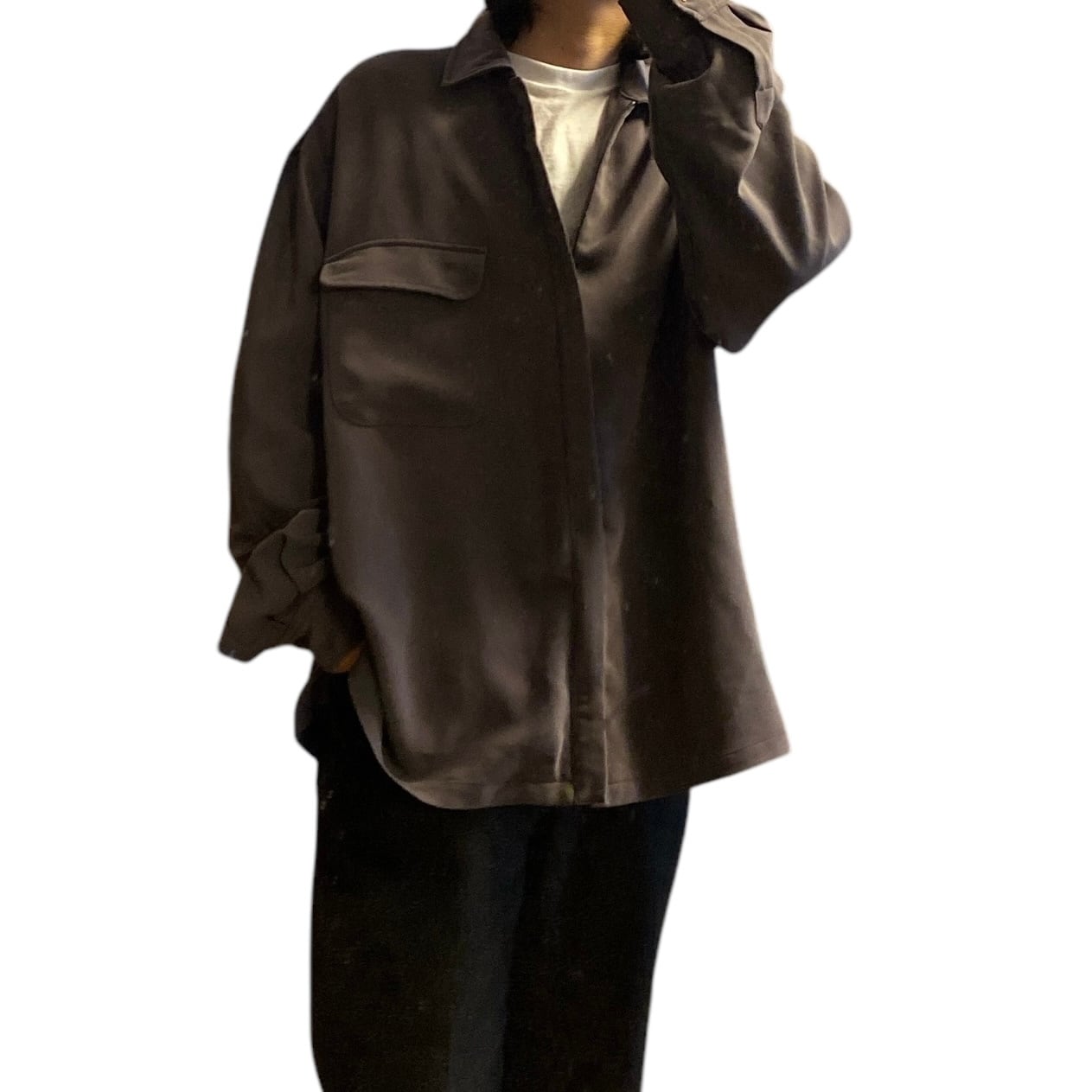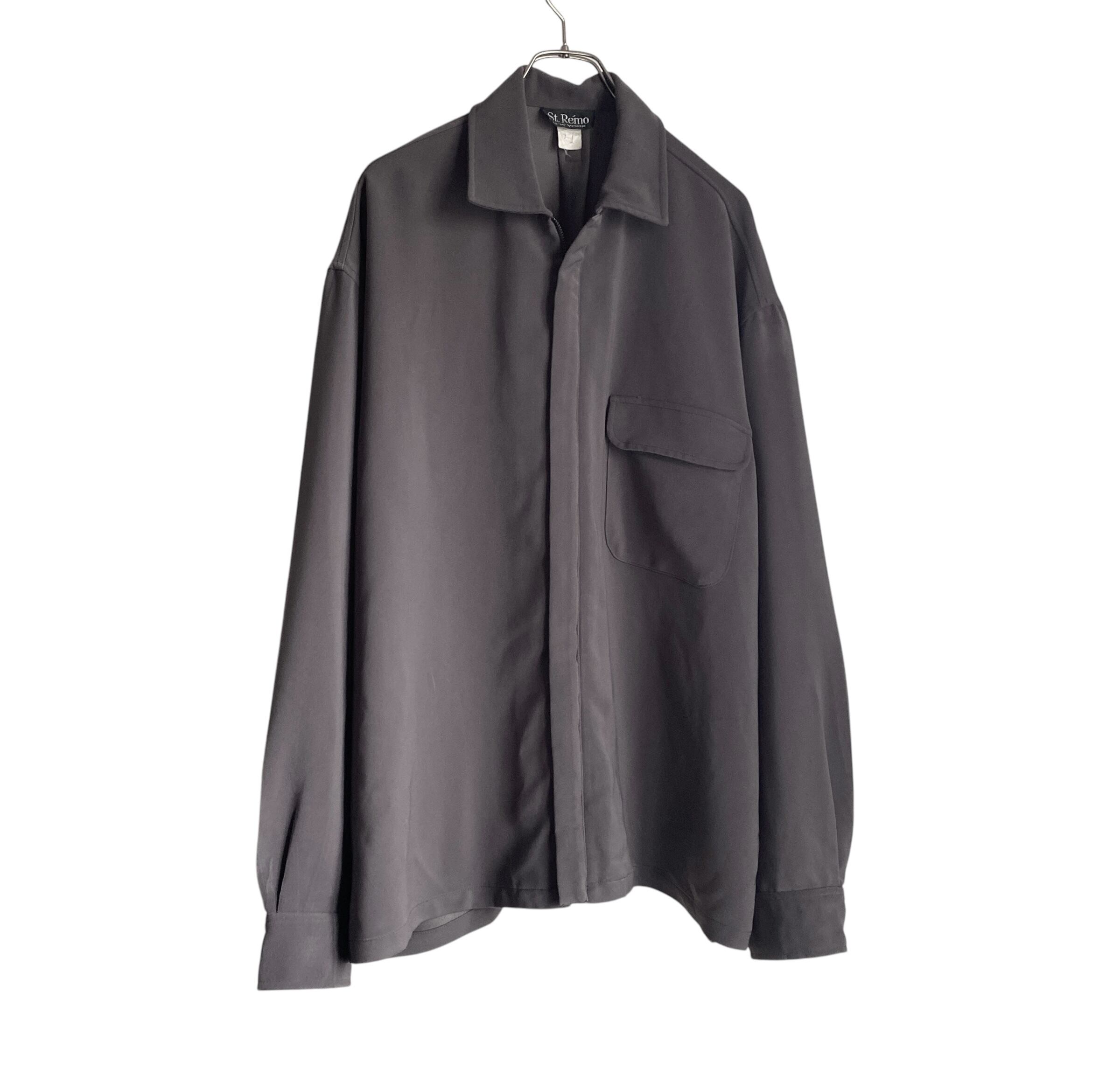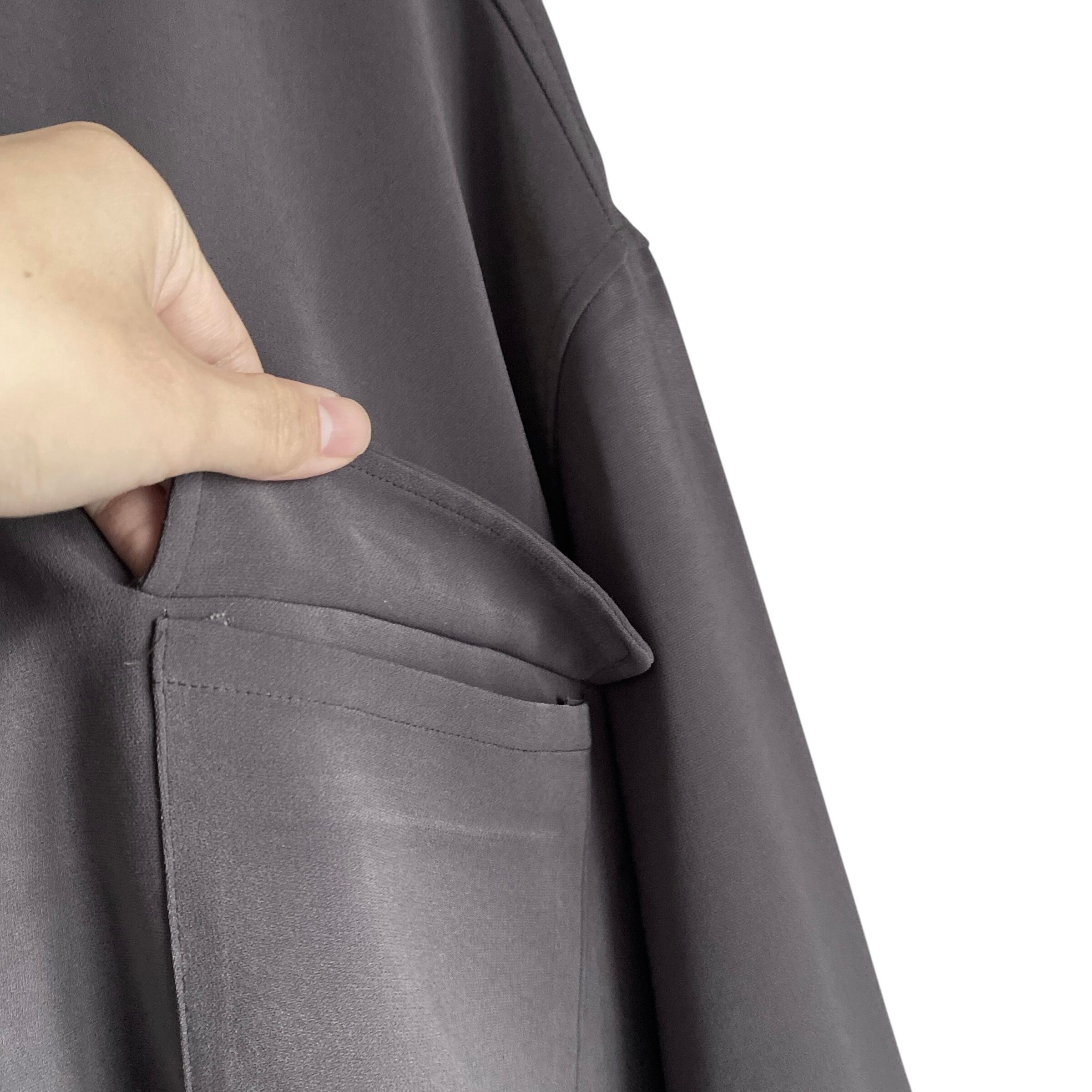 肉厚でとろみのある上質なアセテートレーヨン生地に(品質タグが飛んでいますが、おそらくレーヨンアセテートないしはレーヨンポリエステルだと思われます)、上品なチャコールグレーの色目、ガバッと大きめなボックスシルエットが非常に格好良い一着。