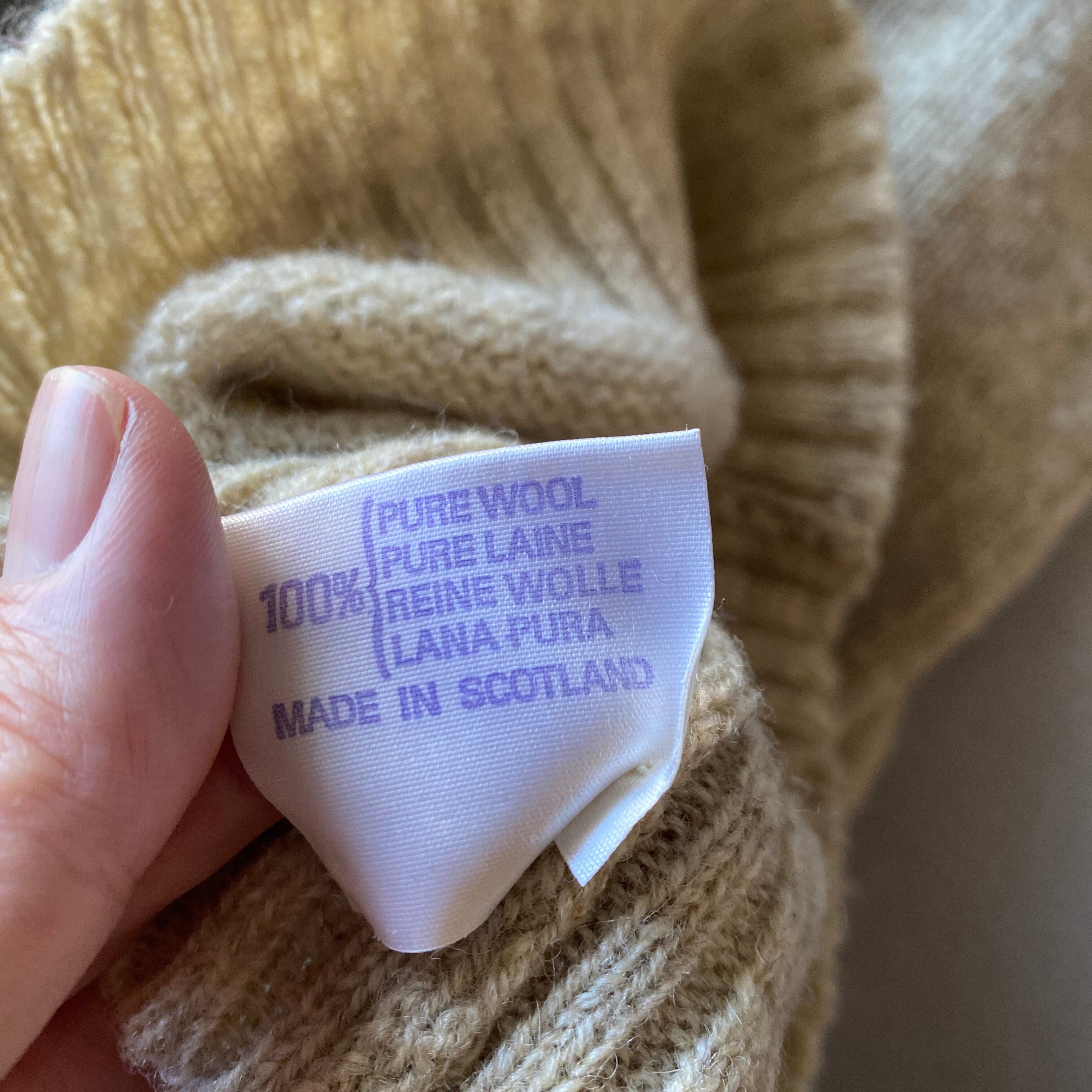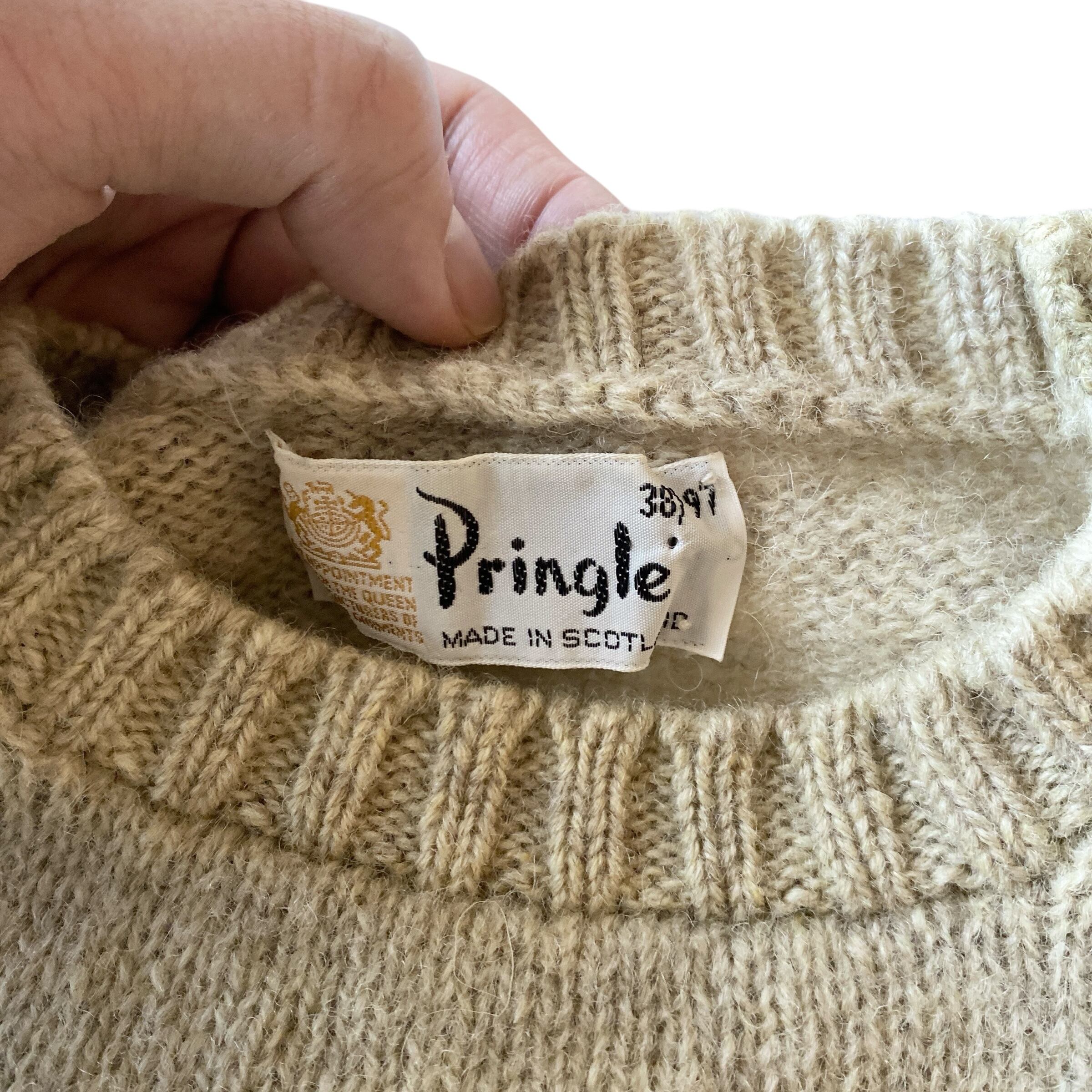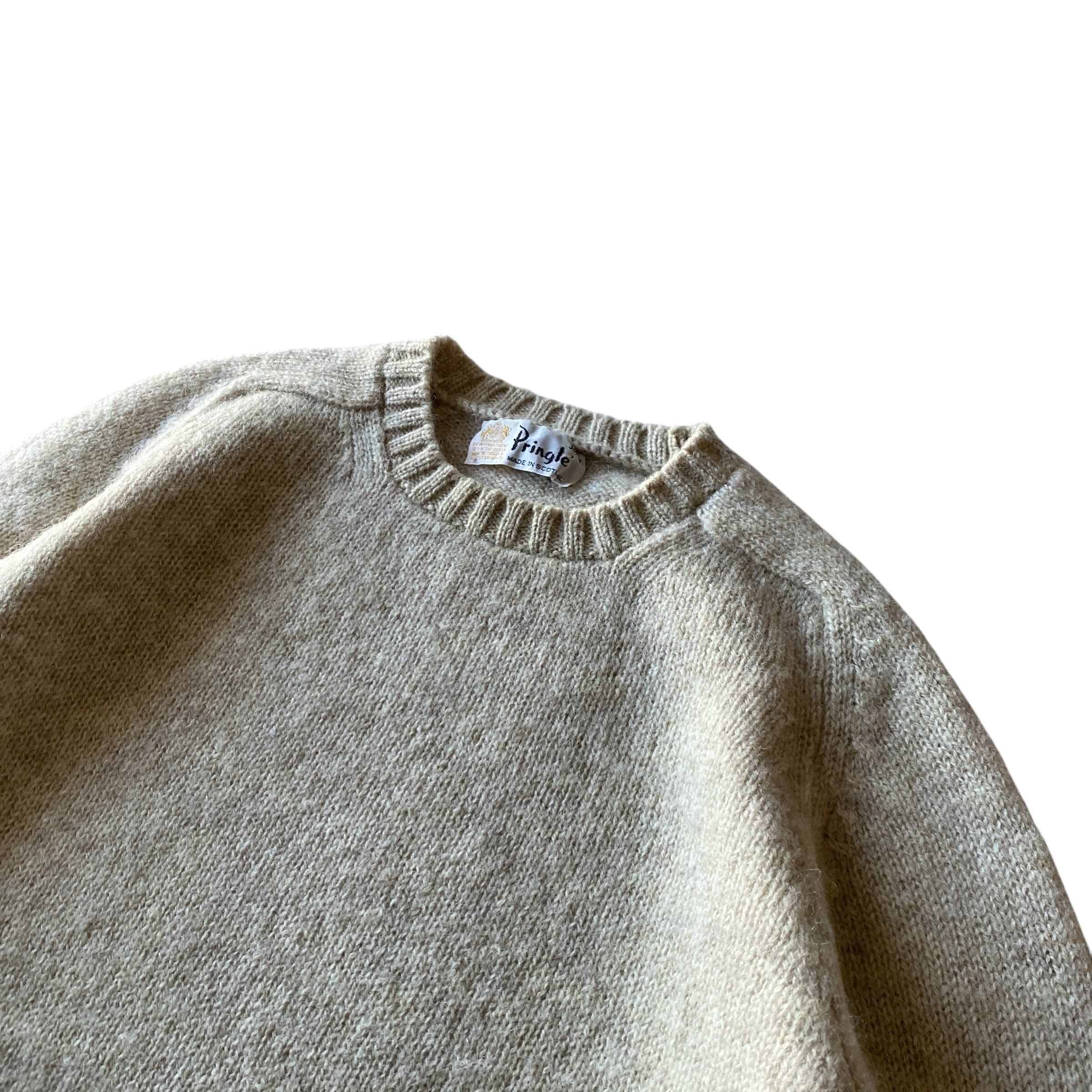 〜1980年代頃のスコットランド製「プリングル」シェットランドウールクルーネックニットセーターになります。(表記はpure woolのみですが、質感からシェットランドだと思われます)