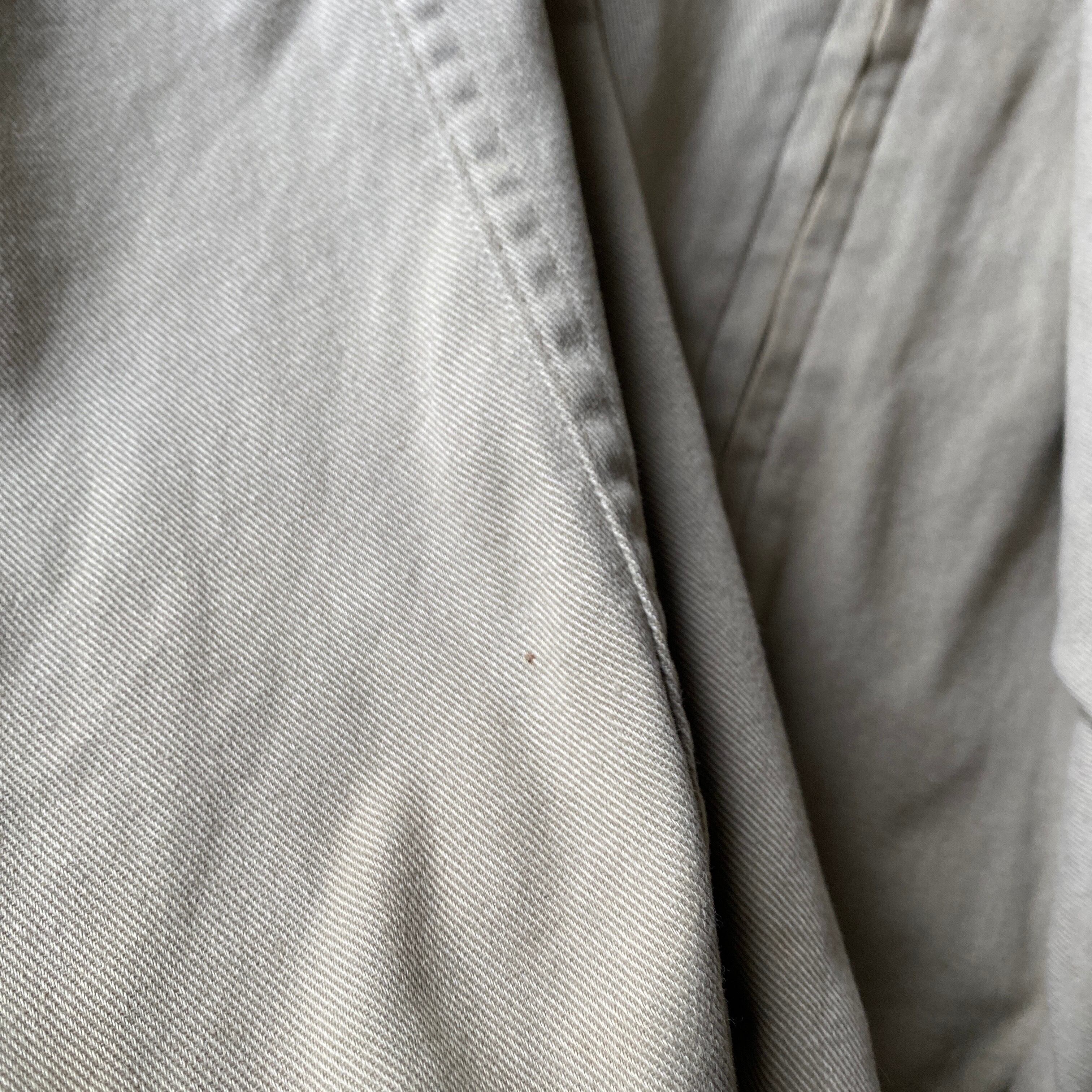 短丈ボックスシルエットに、無骨なベージュ〜カーキ系カラーのざらっとしたコットンツイル生地が非常に格好良いです。