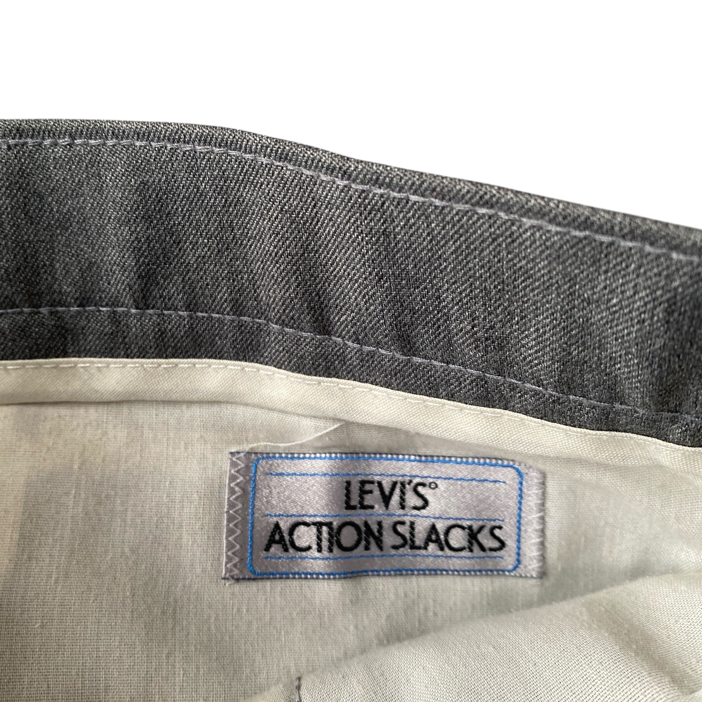 1980年代〜アメリカ製のリーバイスアクションスラックスになります。(サイズ表記のタグがついていませんが、ロケットタロンが付いている物でUSA製以外を見たことがないので間違いないと思います)