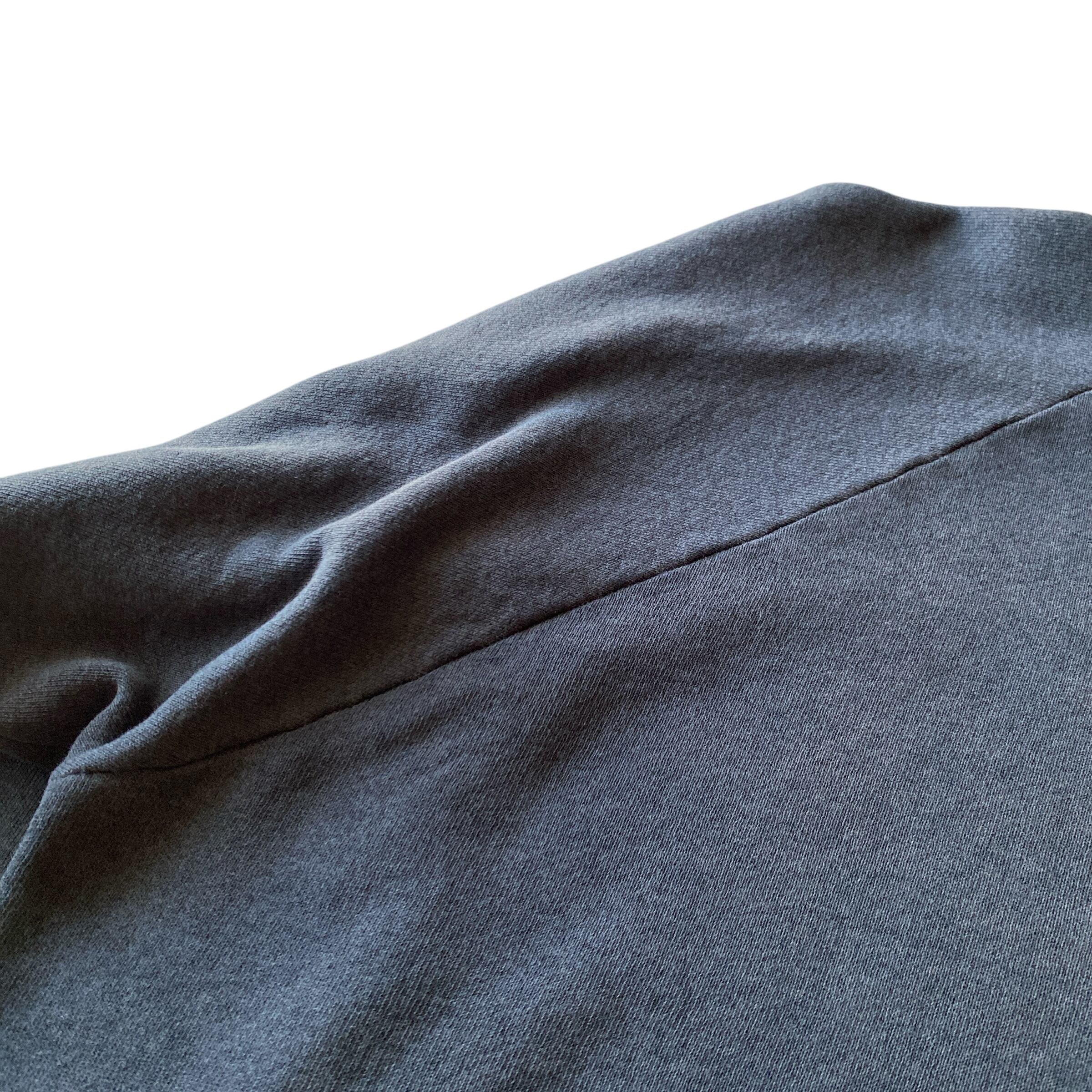 ガッツリフェードしたブラックカラーに、コットンが抜けてややテロっとしたとろみのある生地感、身幅広めの短丈ボックスなシルエットが非常に格好良い一着。
