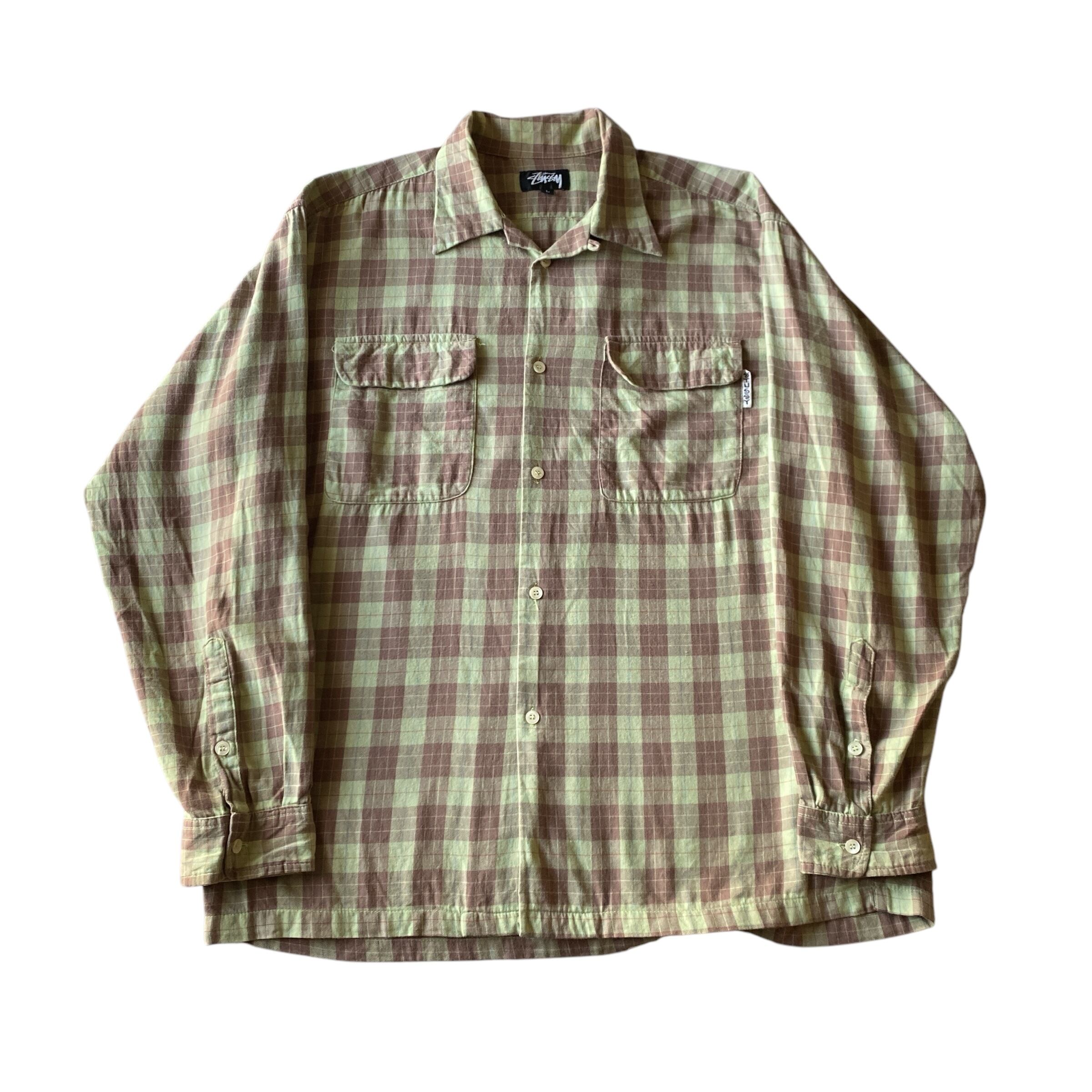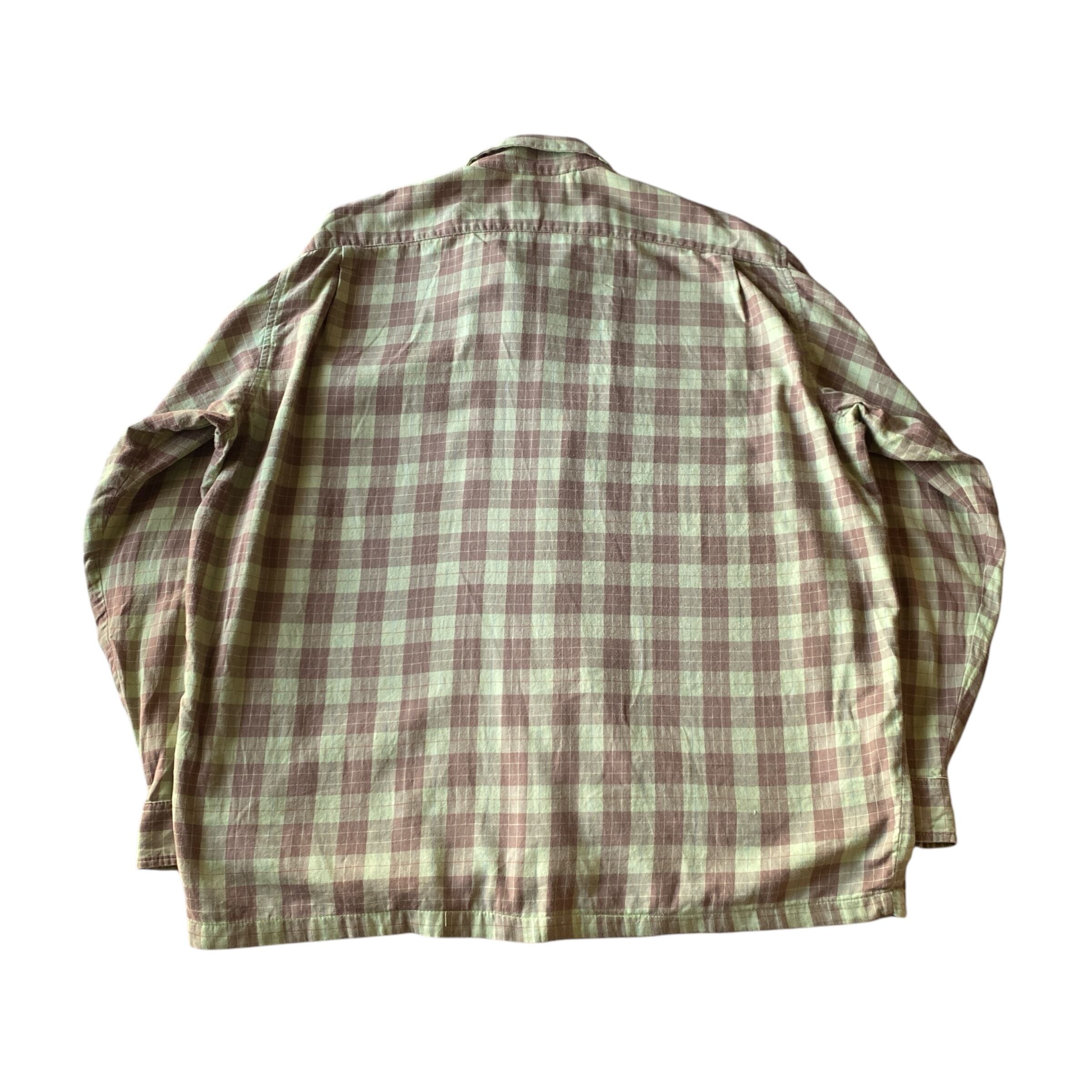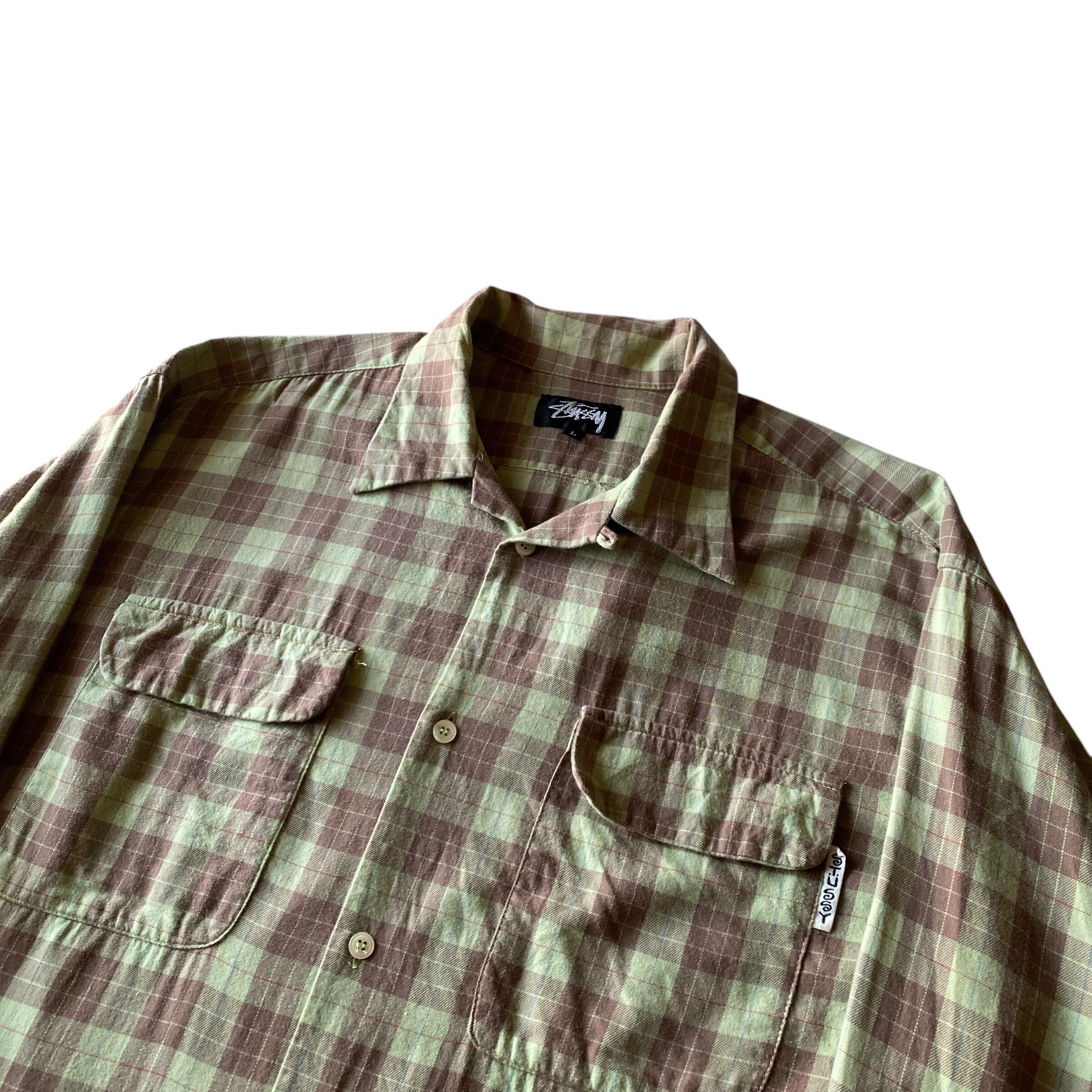 80s old stussy open collar check shirt