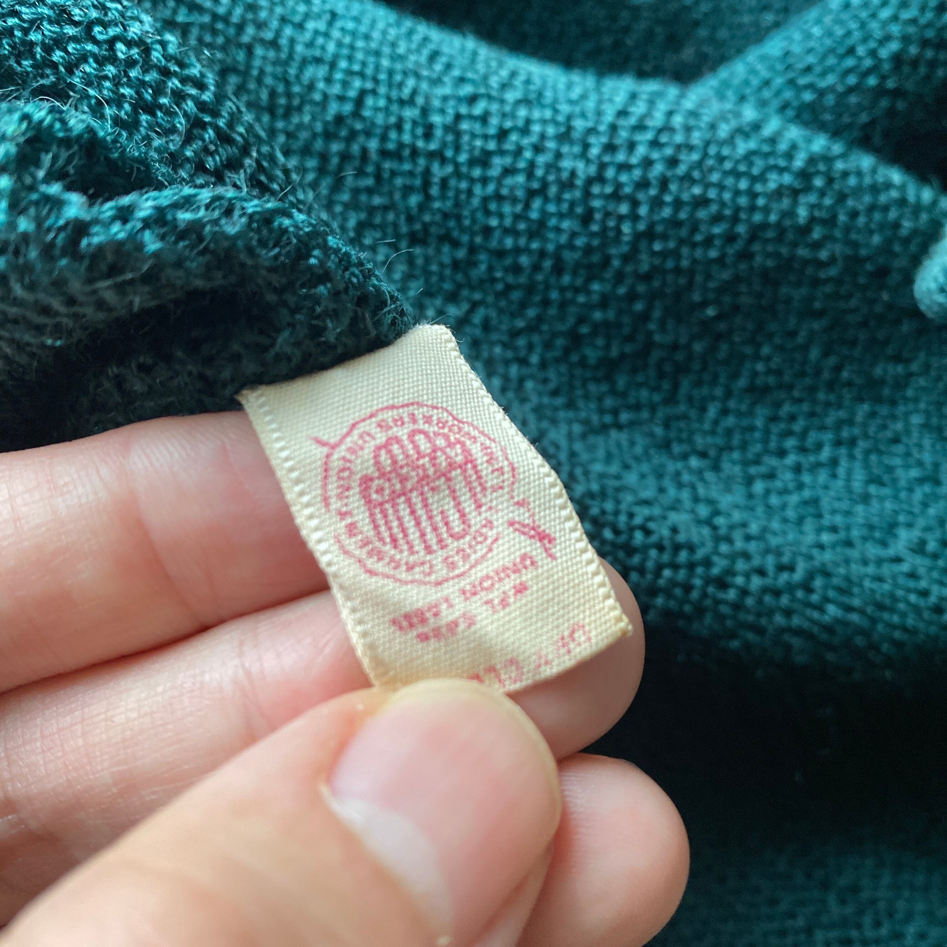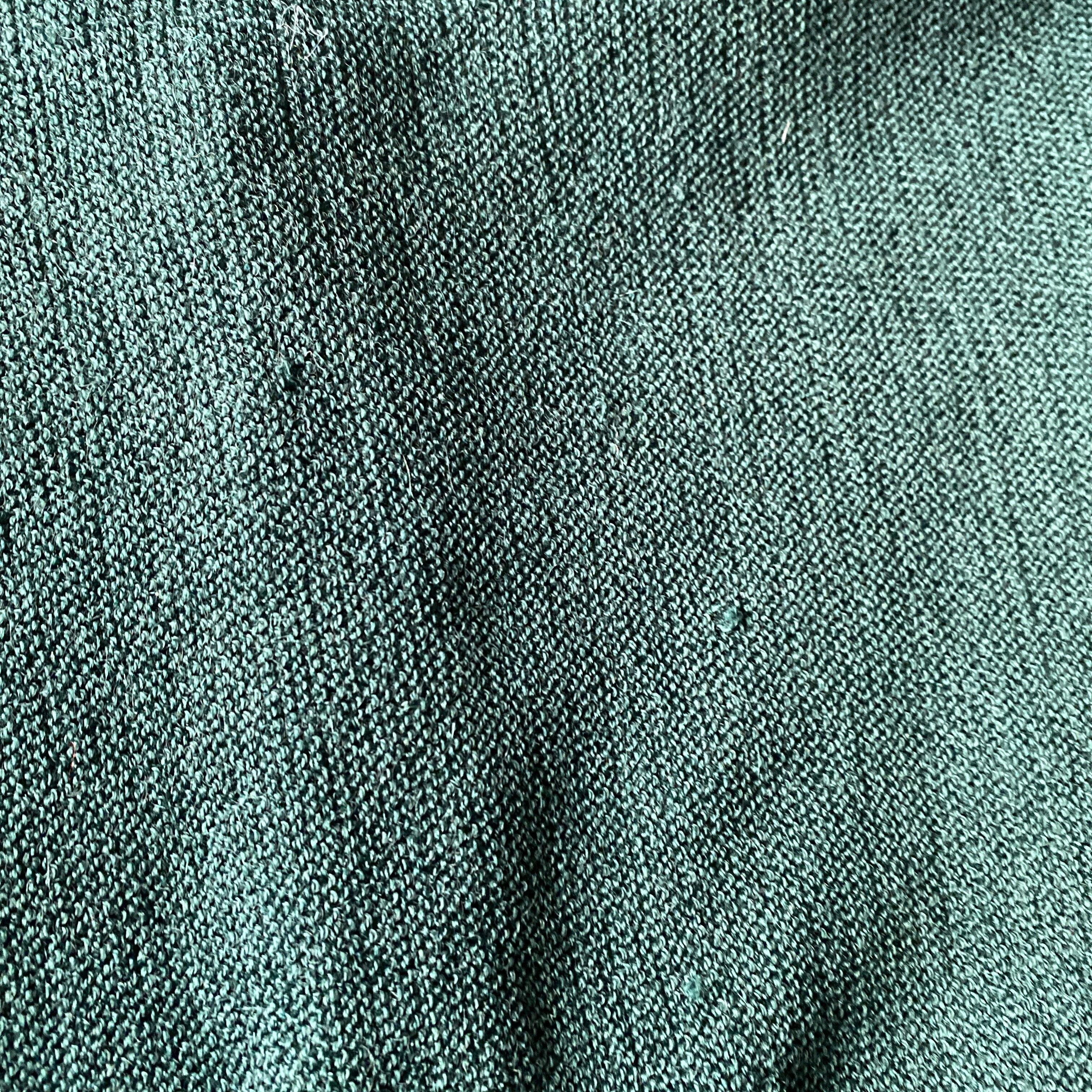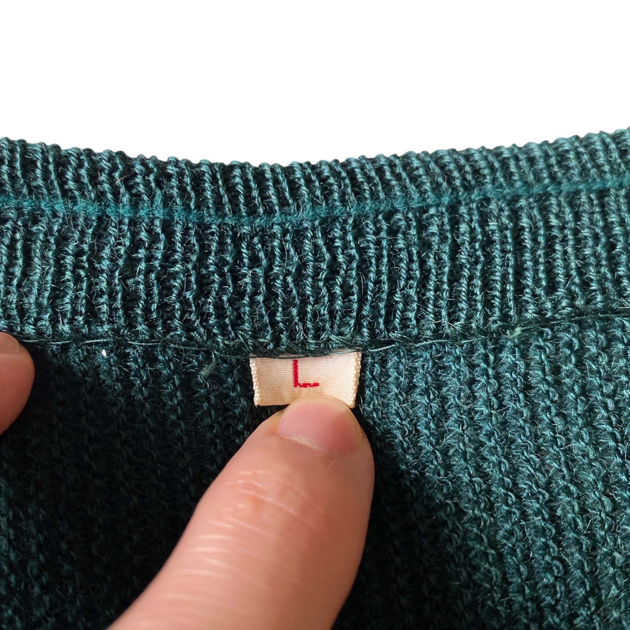 ウール×モヘアのツルッとしたコシのある上質なニット地に、複雑で深みのあるダークグリーンカラー、丸みのある短丈ボックスなシルエットが非常に格好良い一着。