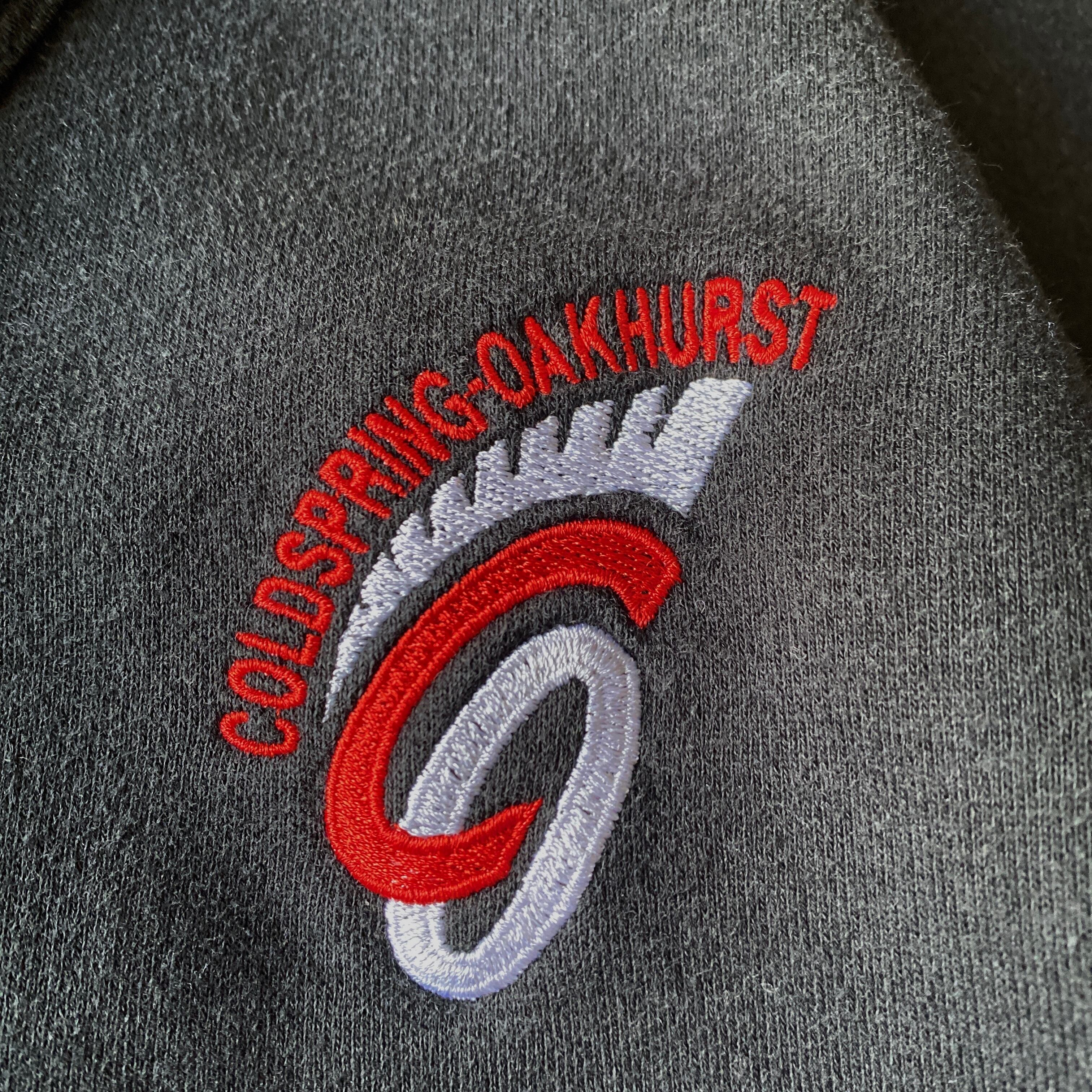古着界隈だと人気の高いブラックカラーのスウェットカーディガンに、coldspring oakhurst(テキサス州コールドスプリングの学校)の刺繍ロゴ、ゆったりとしたボックスシルエットが非常に格好良い一着。