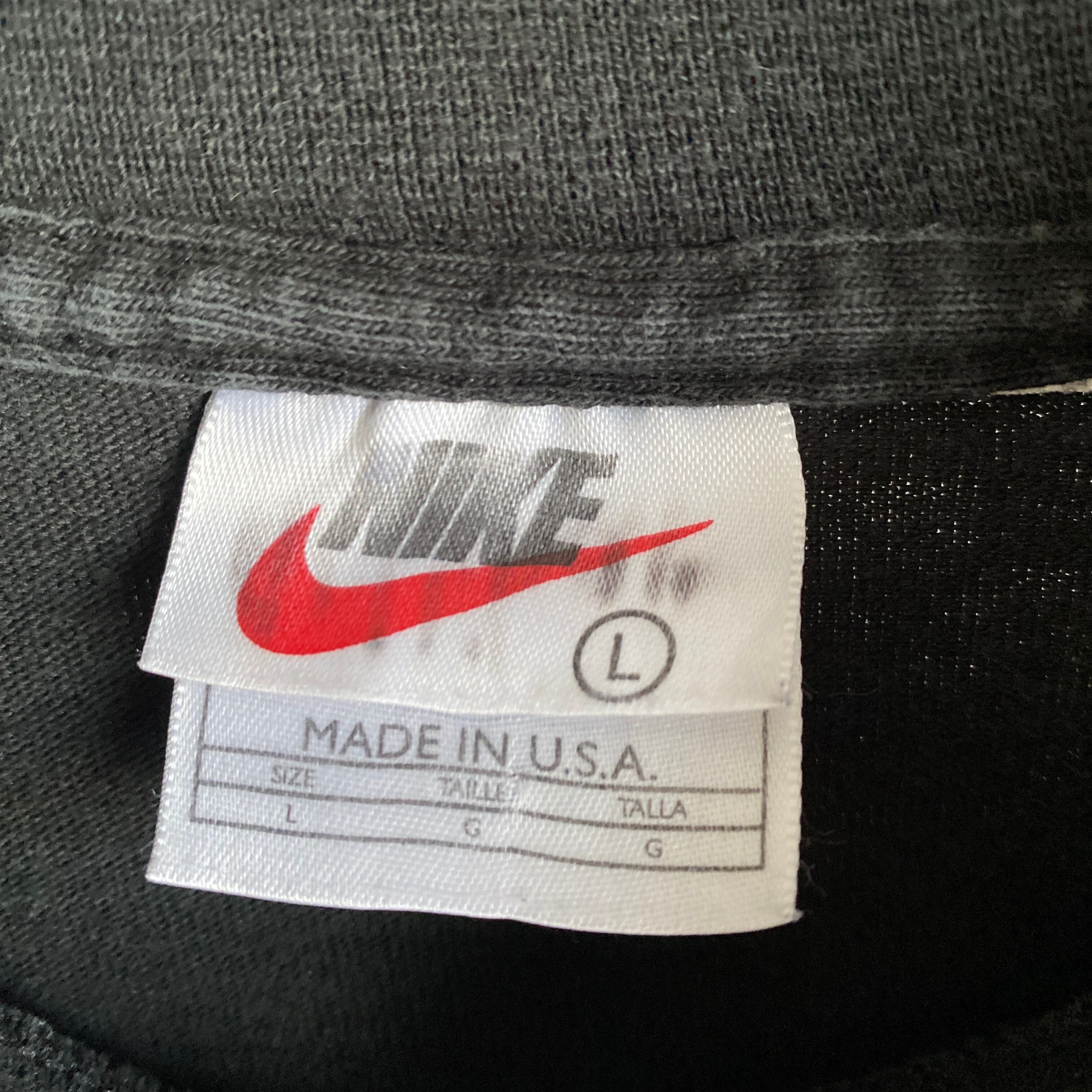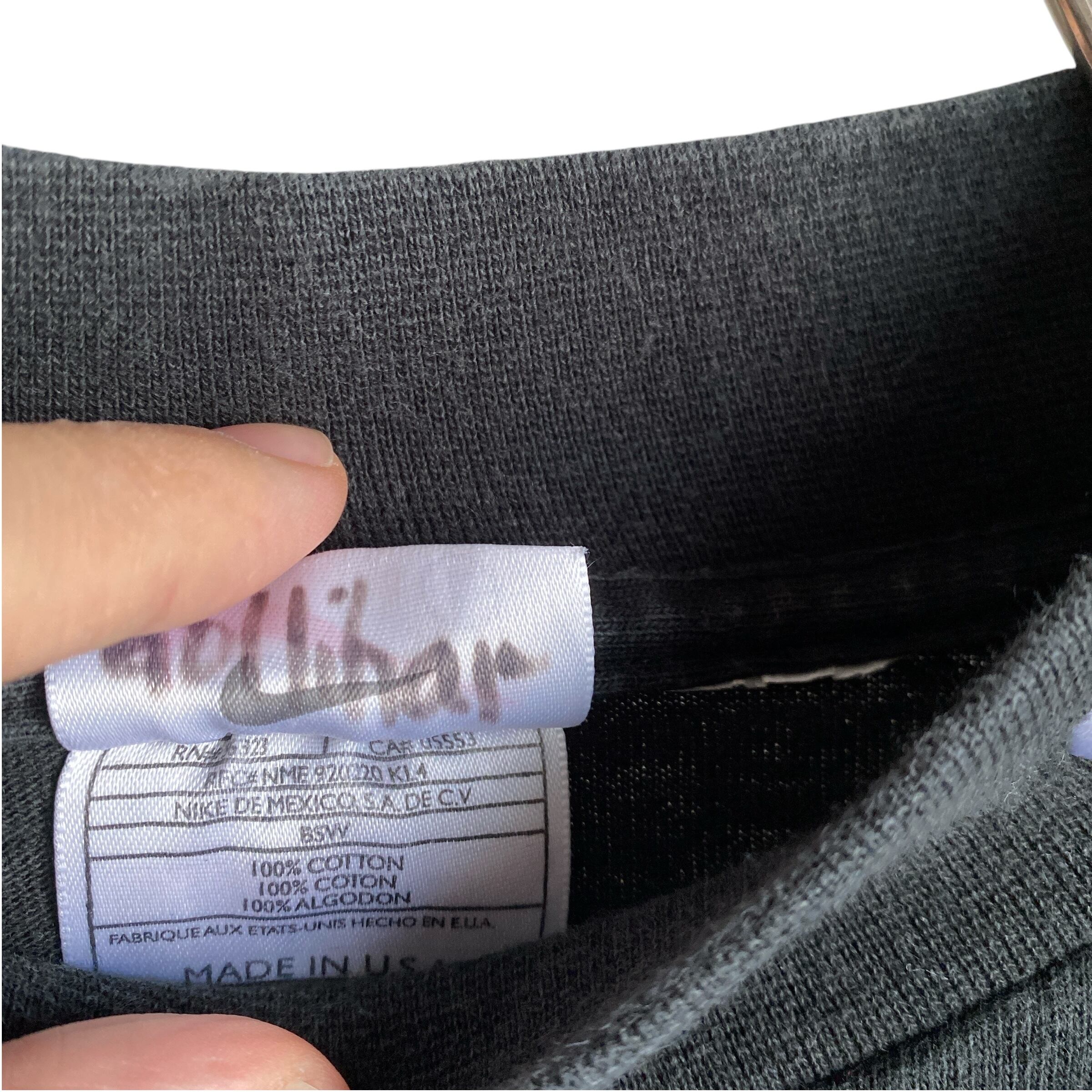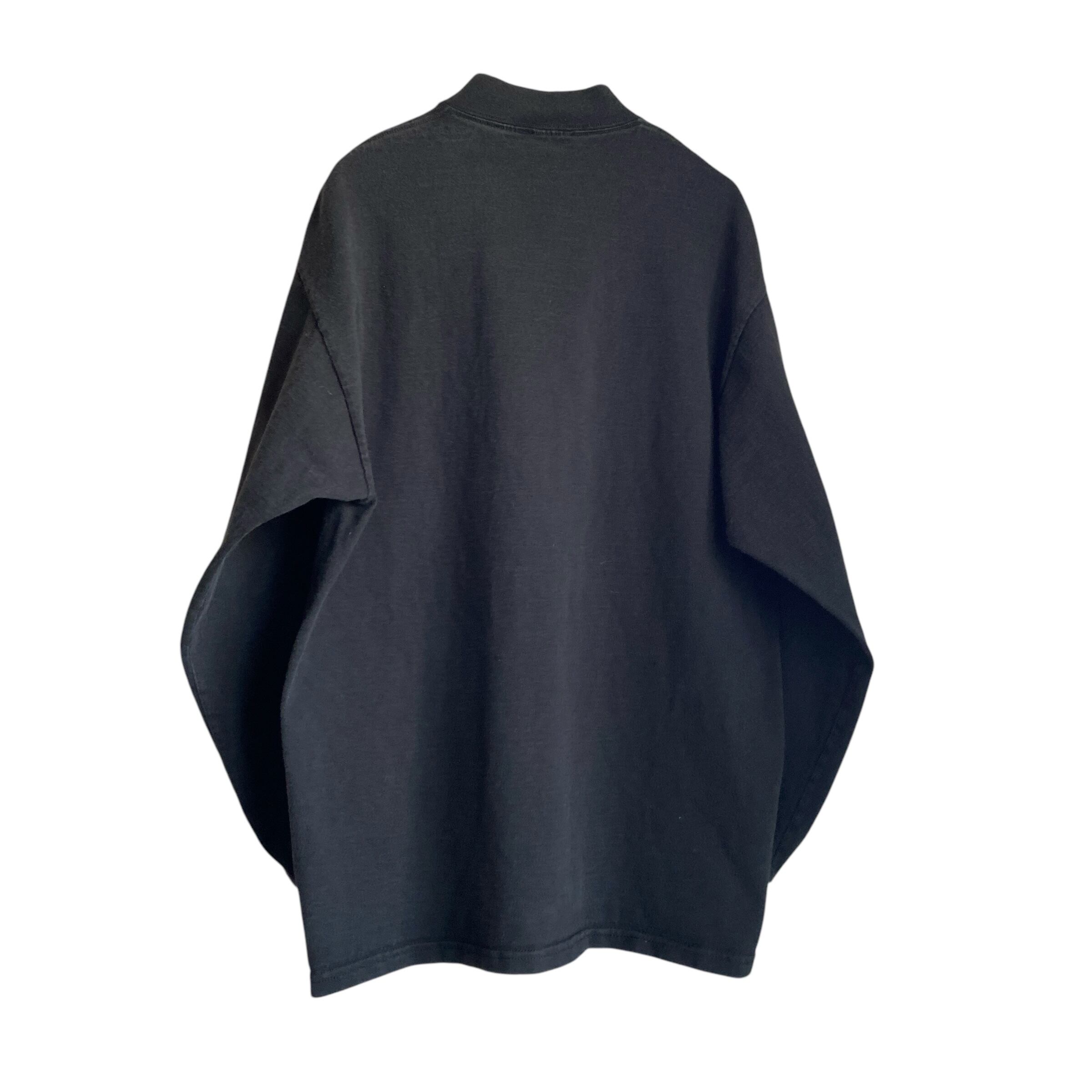 程よくフェードしたブラックカラーに、がしっとしたヘビーコットン(ヘビーコットン特有のうねりが◎)、程よくゆったりとしたベーシックなシルエット、襟にワンポイント入ったスウッシュロゴが非常に格好良い一着。