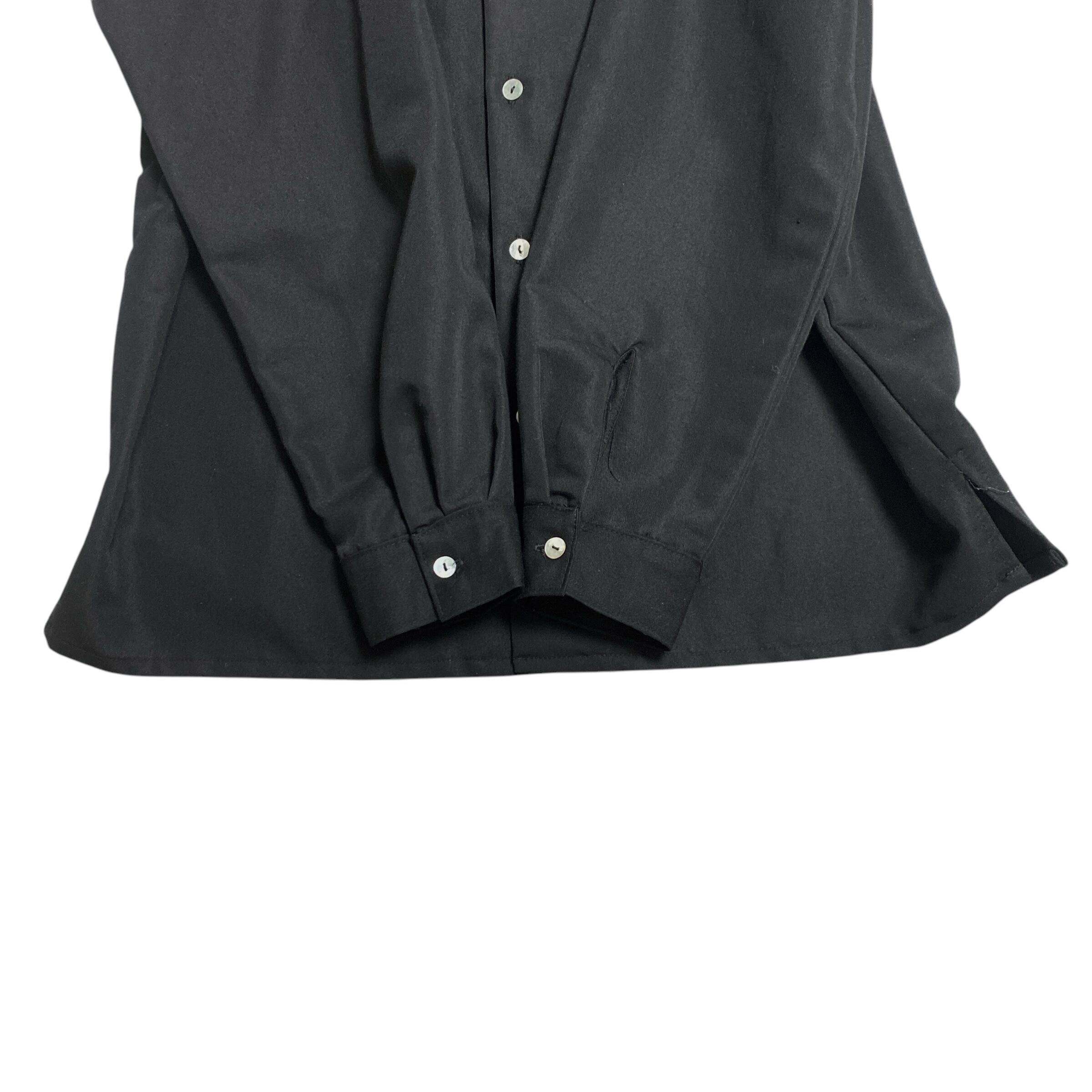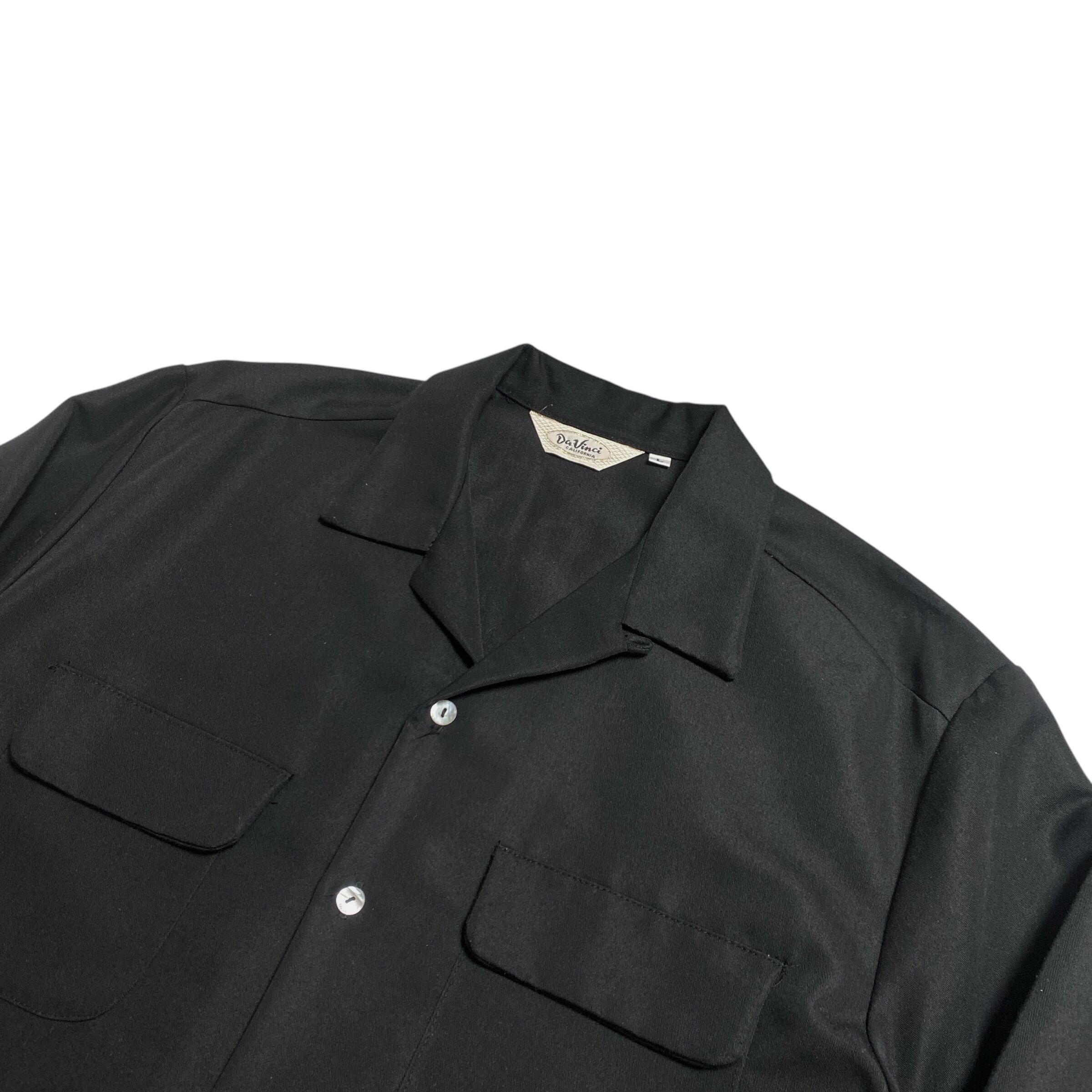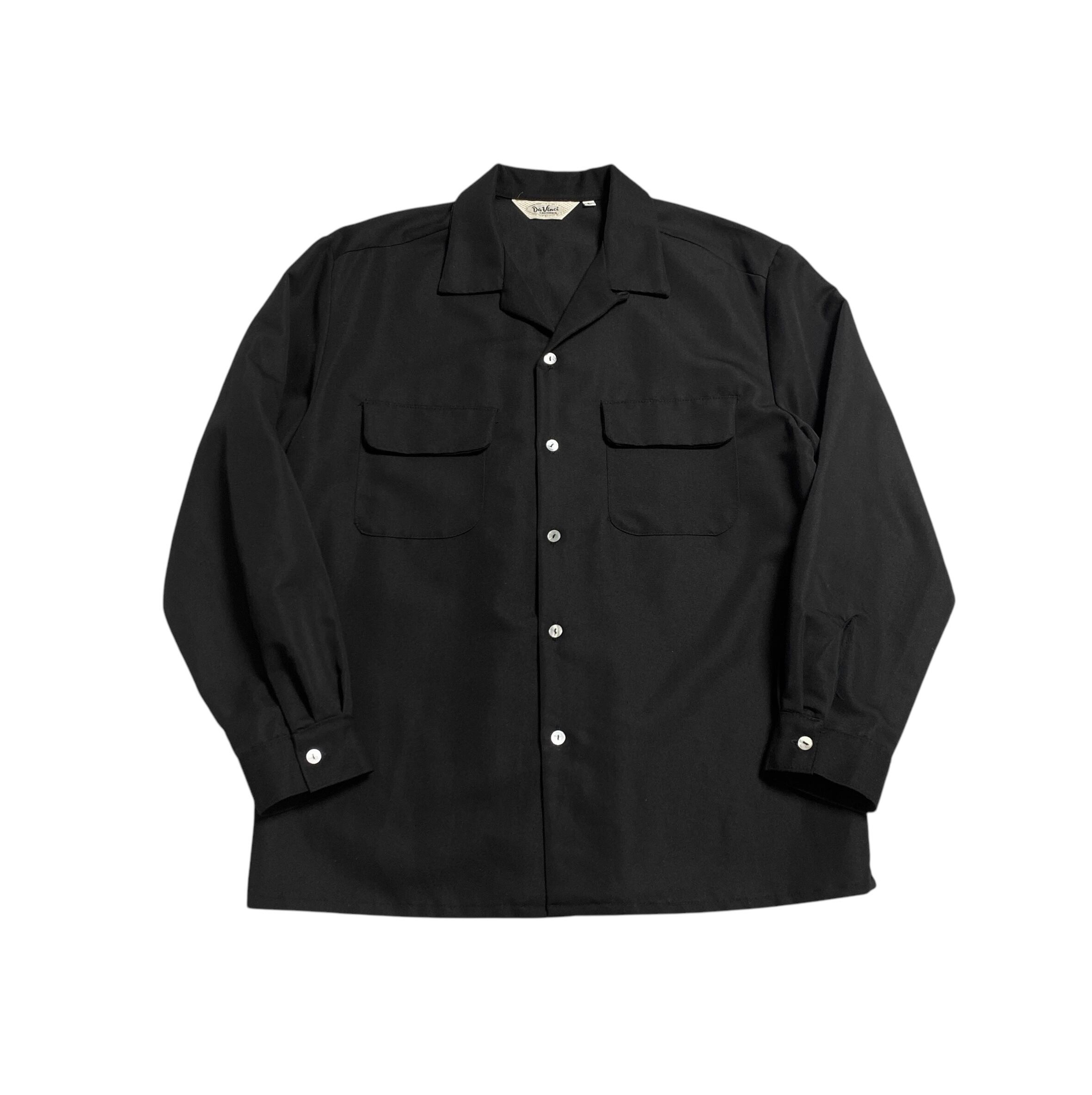 ブラック単色で50sスタイルのダブルフラップポケット付きの開襟デザイン、レーヨン55%×アセテート45%の肉厚でとろみのある生地感、上品なシェルボタンが大変素晴らしい一着。(生地厚的にシャツというよりシャツジャケットに近いかもしれません)