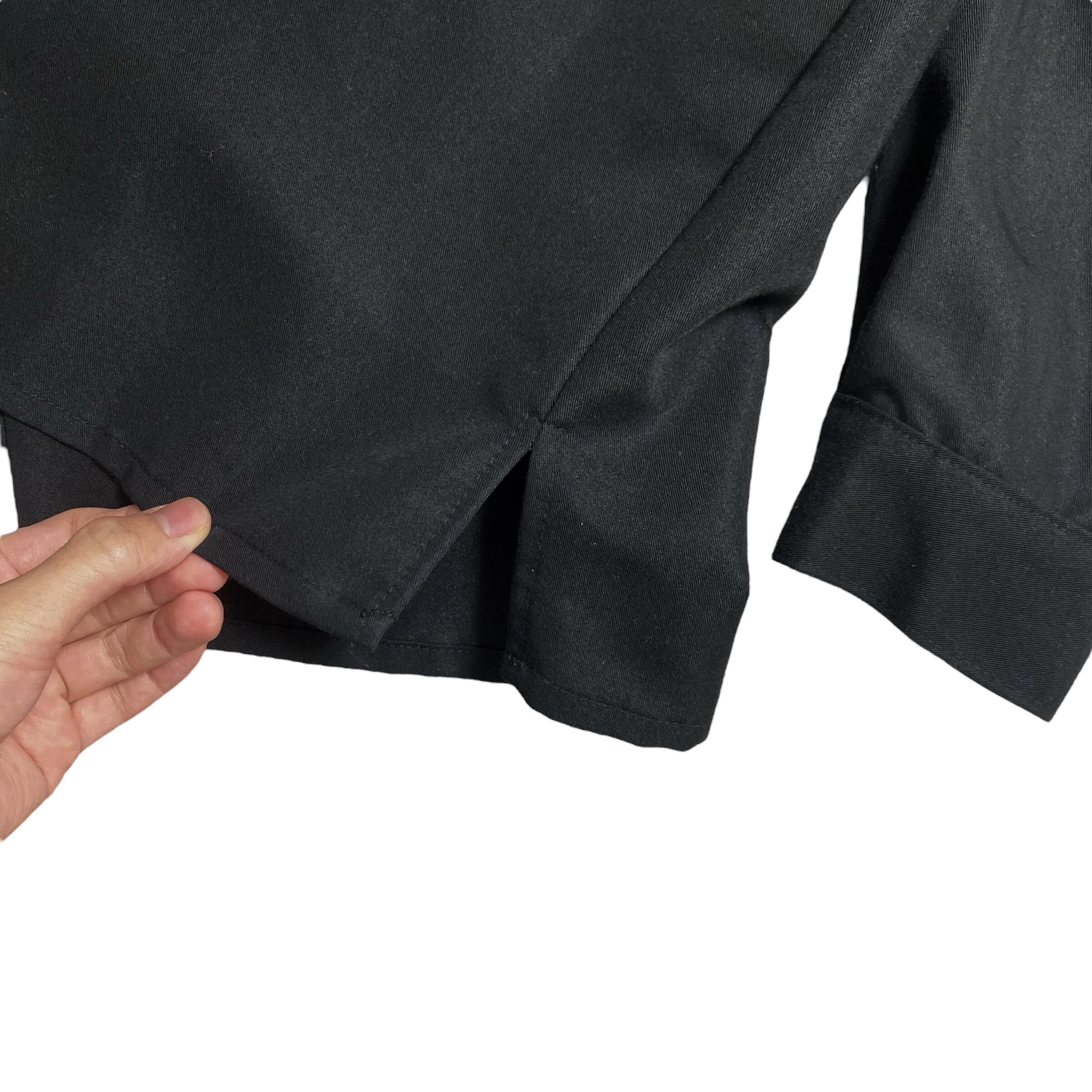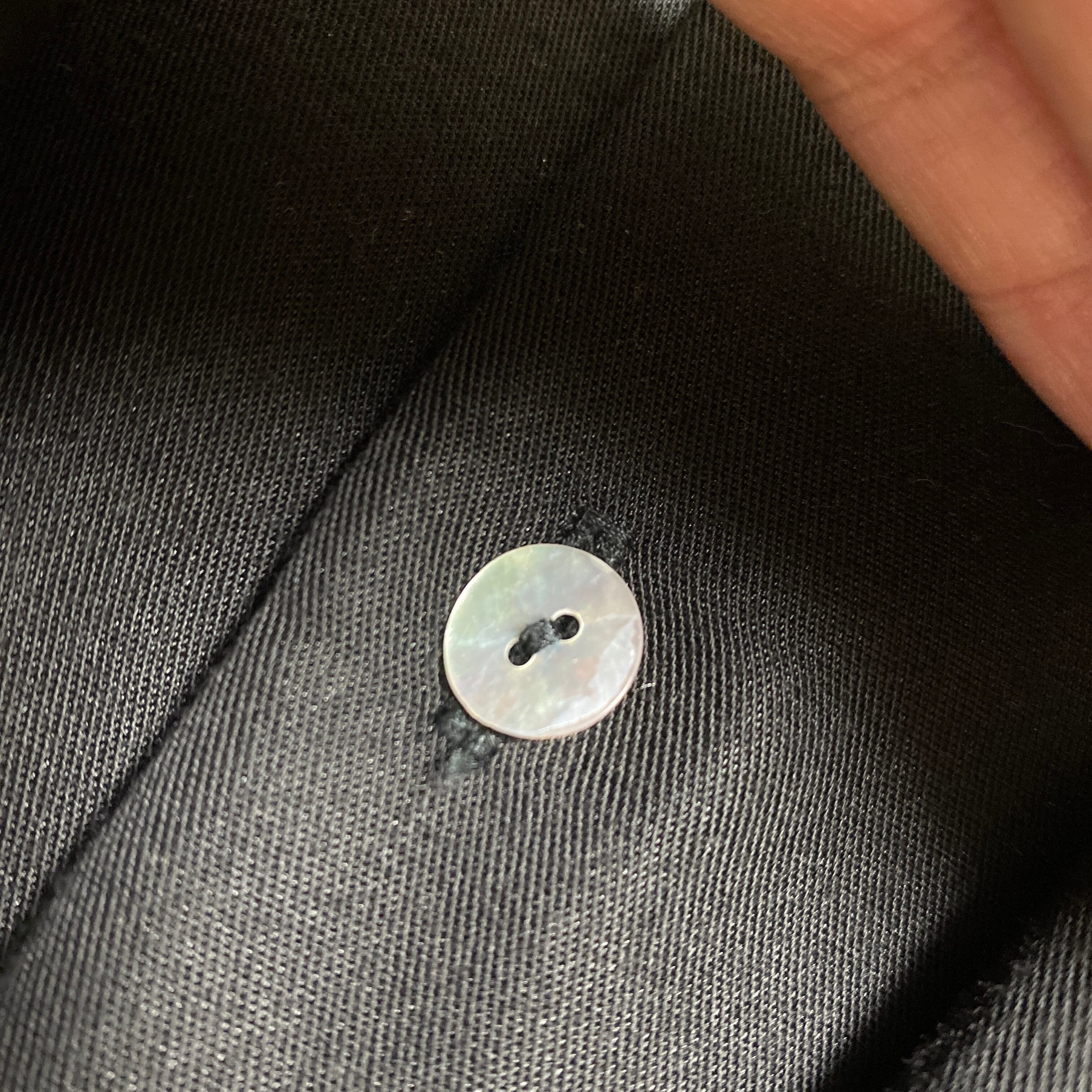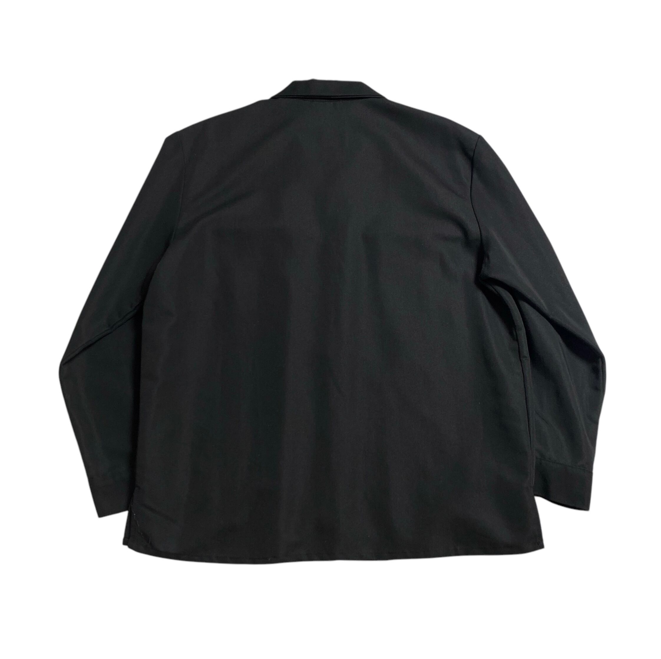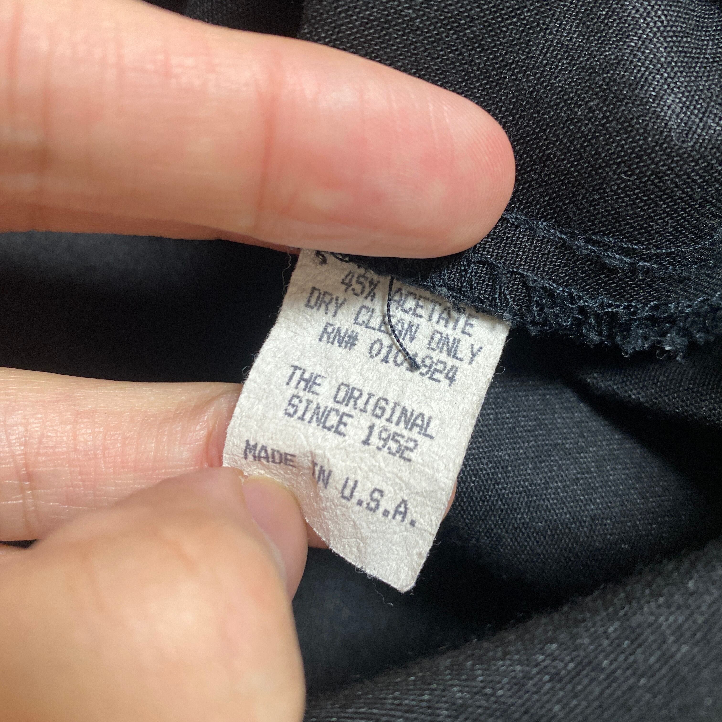 ブラック単色で50sスタイルのダブルフラップポケット付きの開襟デザイン、レーヨン55%×アセテート45%の肉厚でとろみのある生地感、上品なシェルボタンが大変素晴らしい一着。(生地厚的にシャツというよりシャツジャケットに近いかもしれません)