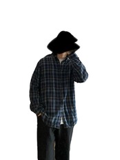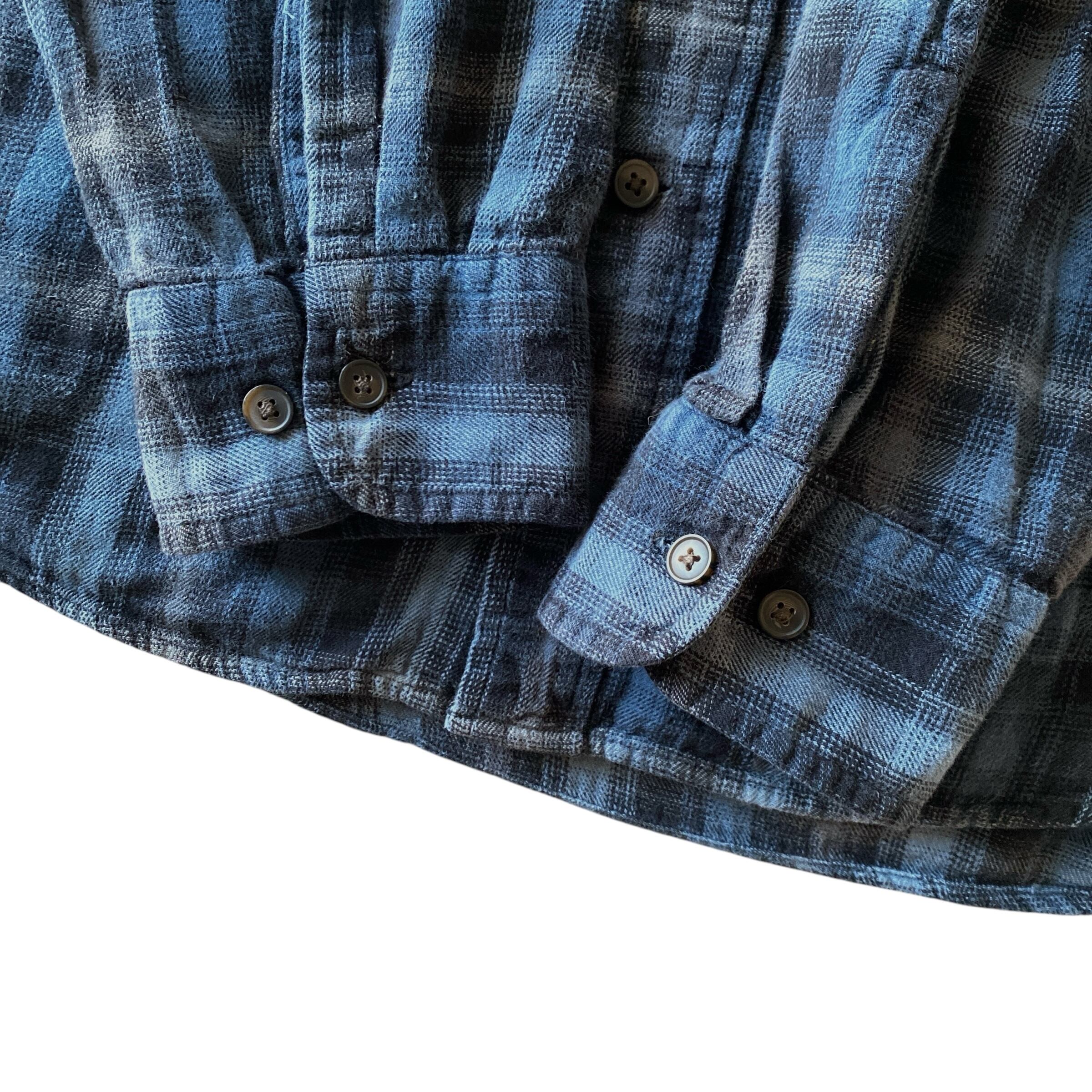 ブラック×グレー×ブルー2色の非常に好配色なオンブレチェックに、柔らかいライトネルの質感、ゆったりとした身幅に丈の長すぎないボックス目なシルエットが非常に格好良い一着。