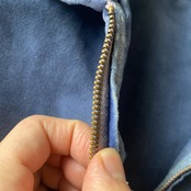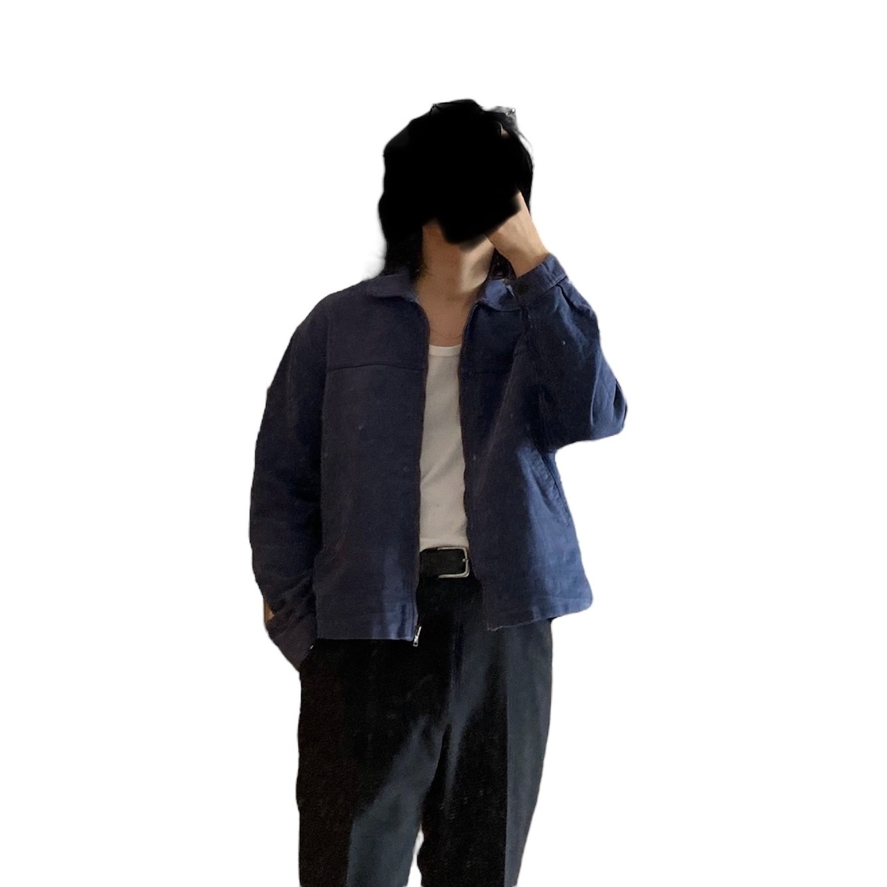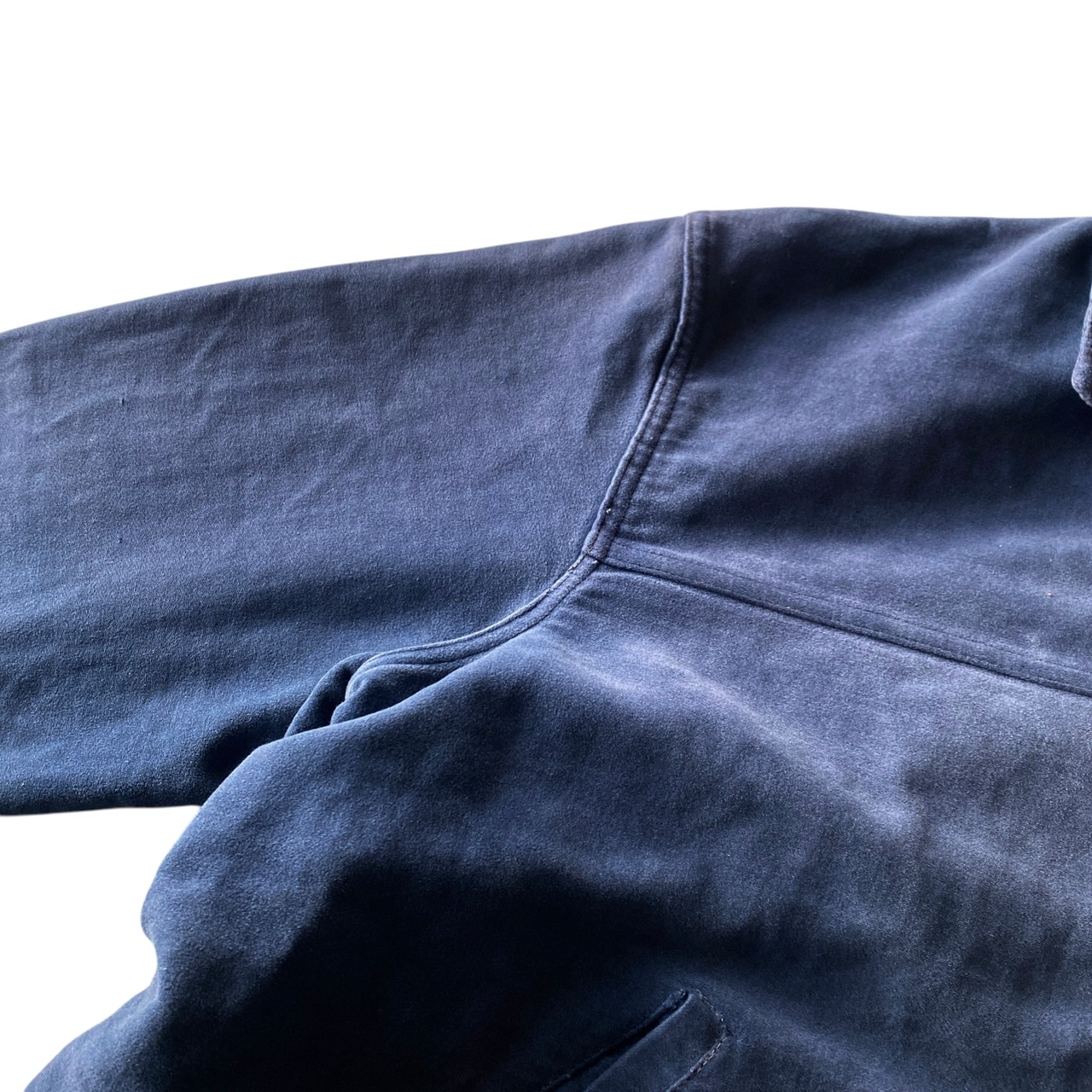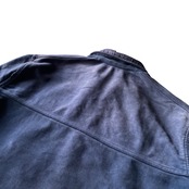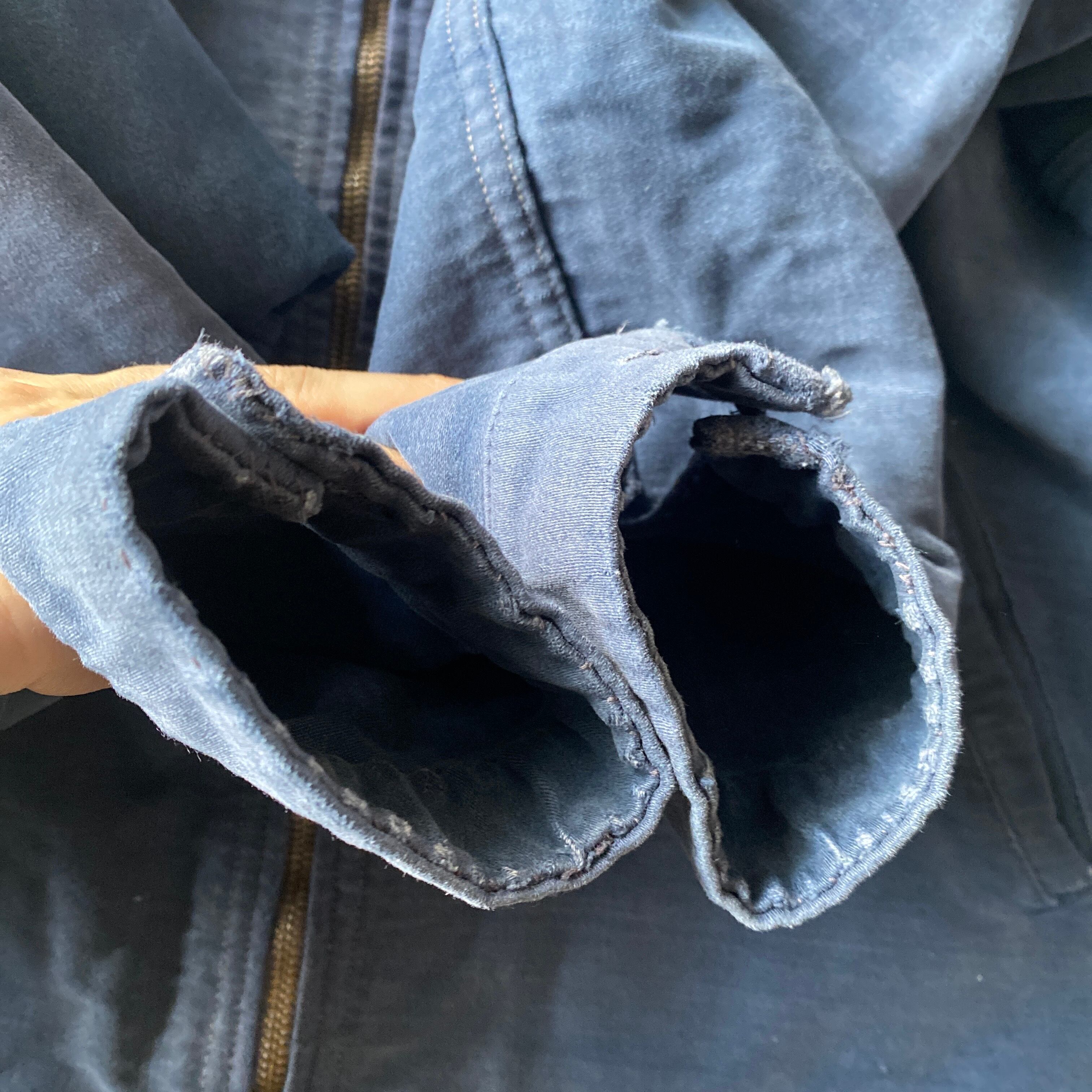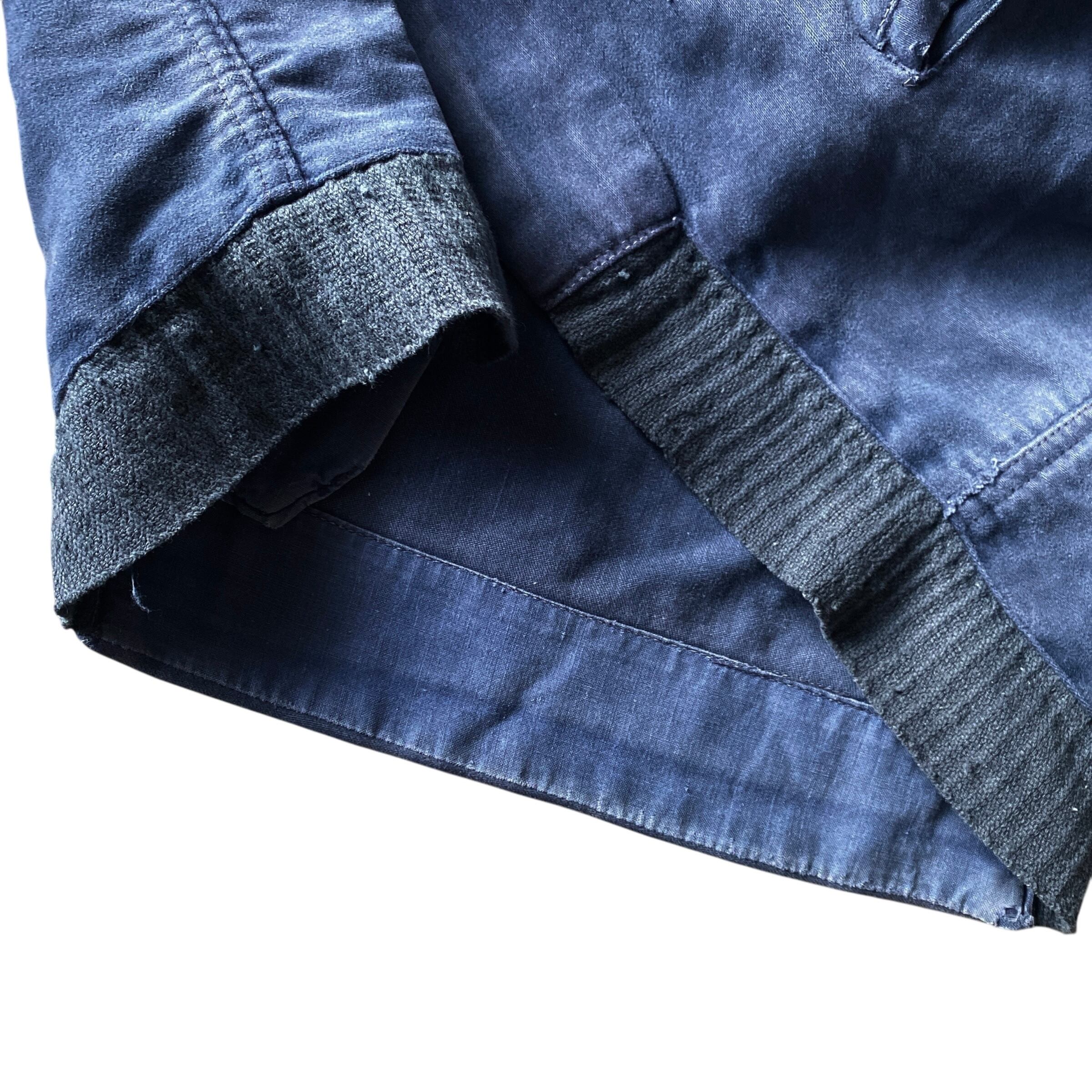 インクブルーがフェードした雰囲気抜群の色目、経年でギュッと目が詰まり、別珍かと思うほどに仕上がった生地の質感、珍しいフルジップで短丈ボックスなシルエットが素晴らしい一着。(一見サイクリストかと思いましたが全く別物です)