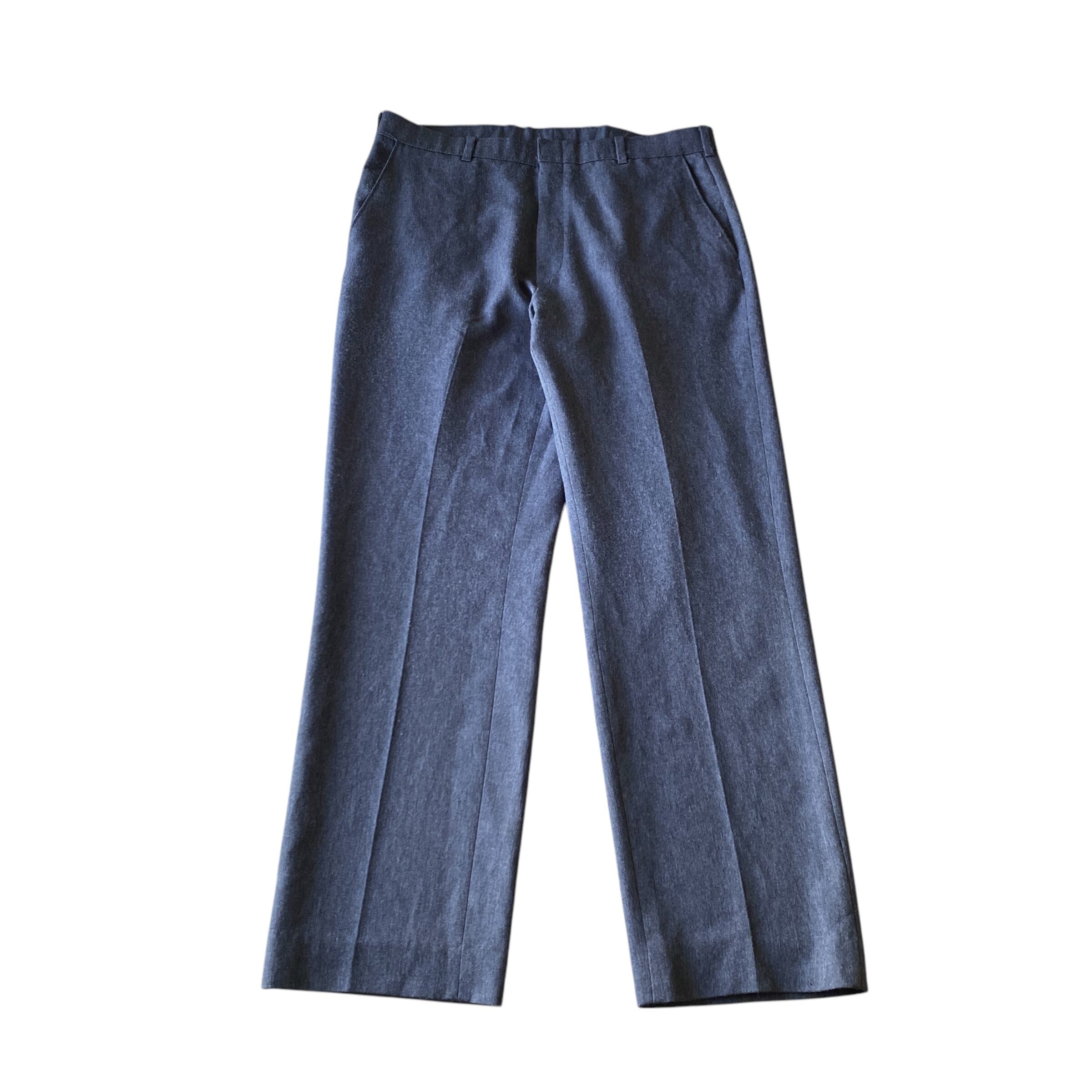 517や519などの所謂「スタプレ」に近いサラッとした生地感に、ヘザーブルーグレー?のような上品な色目、ストンと落ちるワイドストレートシルエットが大変素晴らしい一着。