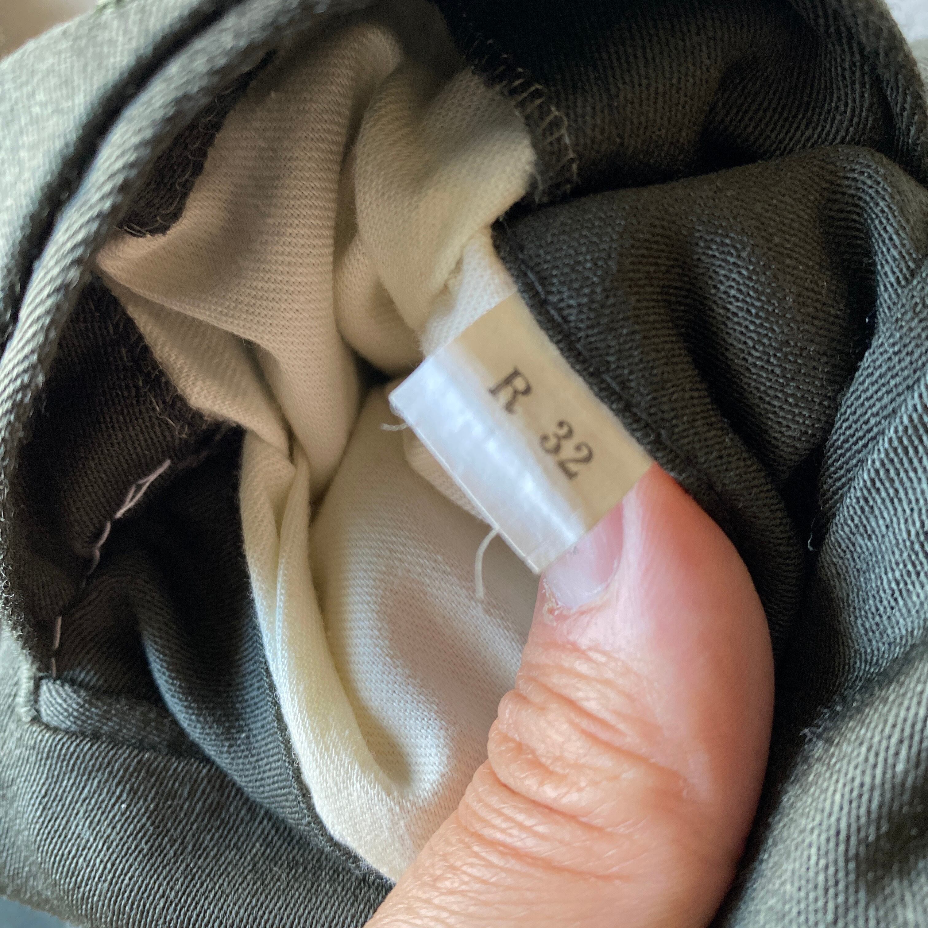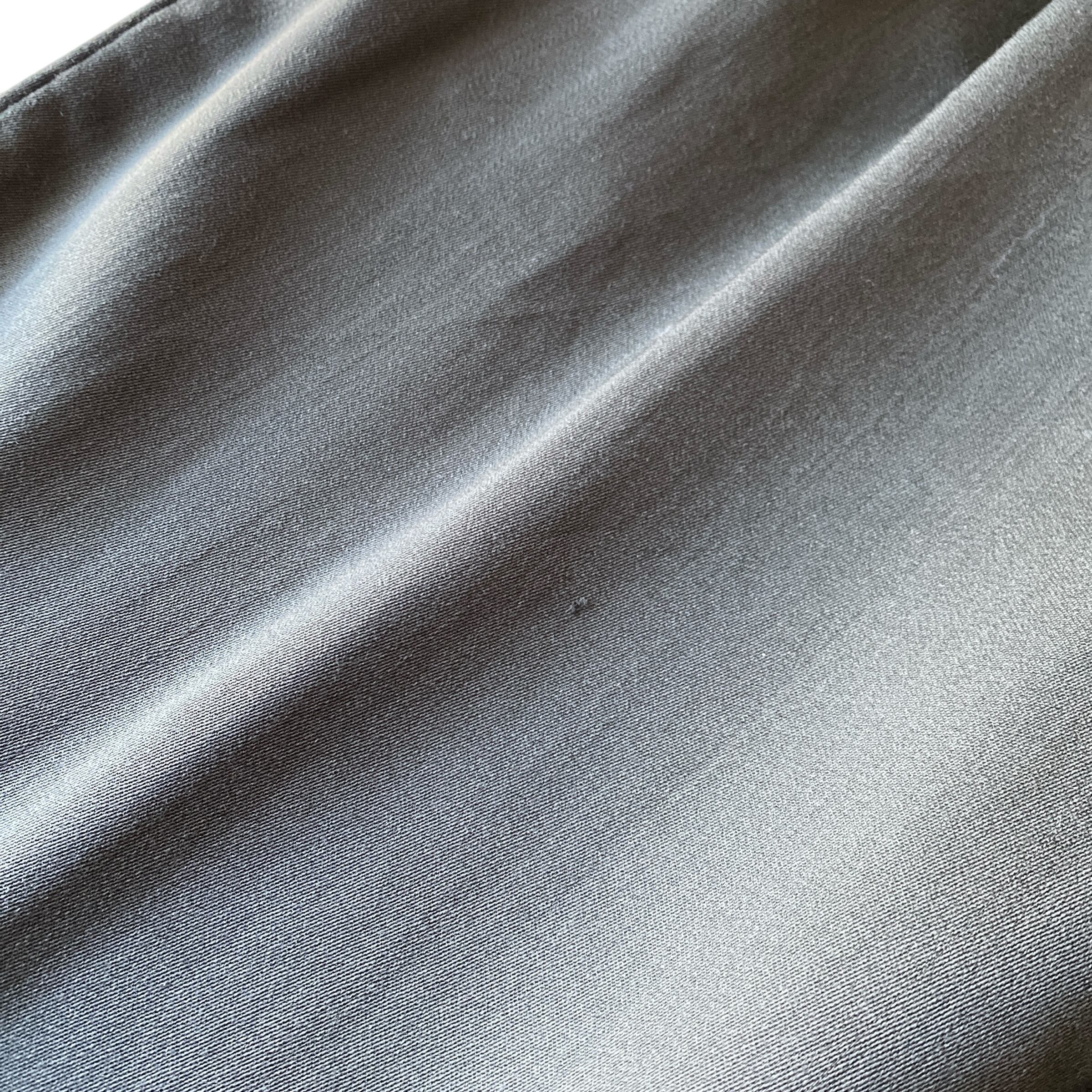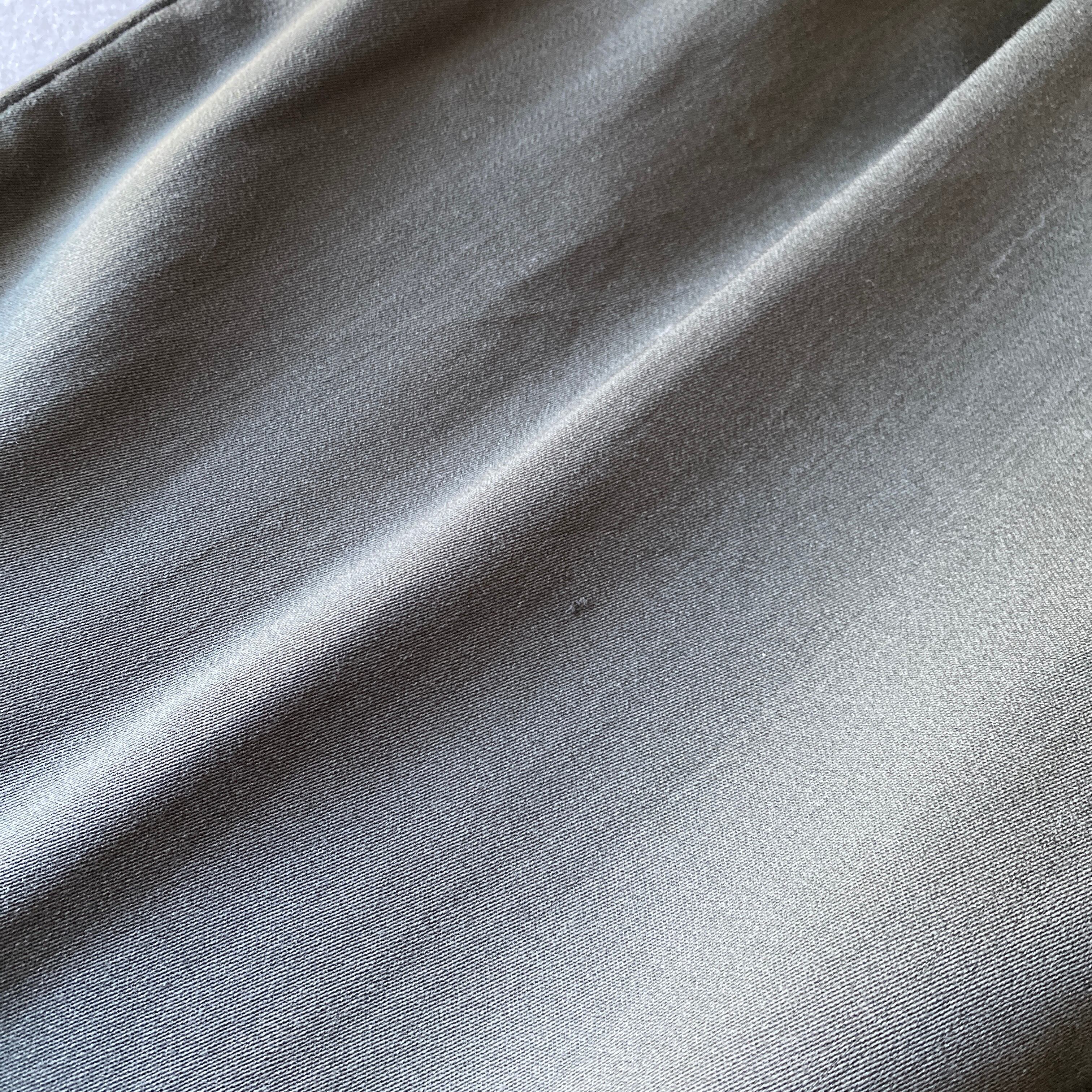 程よく肉厚でとろみのある極上のウールギャバジン生地に、上品なダークオリーブカラー、ゆったりとしたクラシックシルエットが非常に素晴らしい一本。(同年代のgivenchyのものにかなり近い生地感、シルエットです)