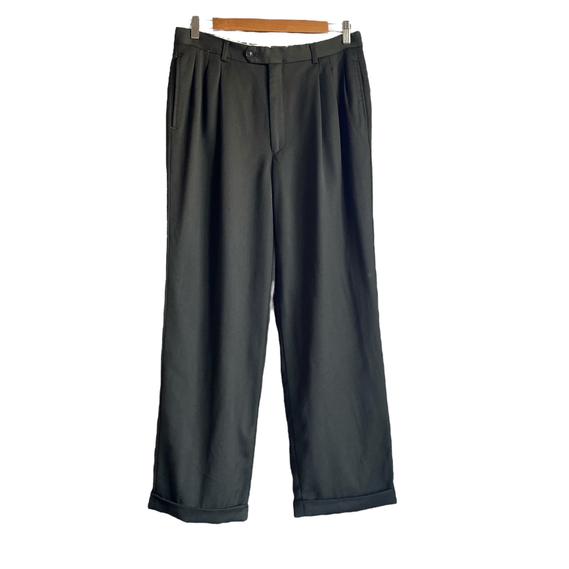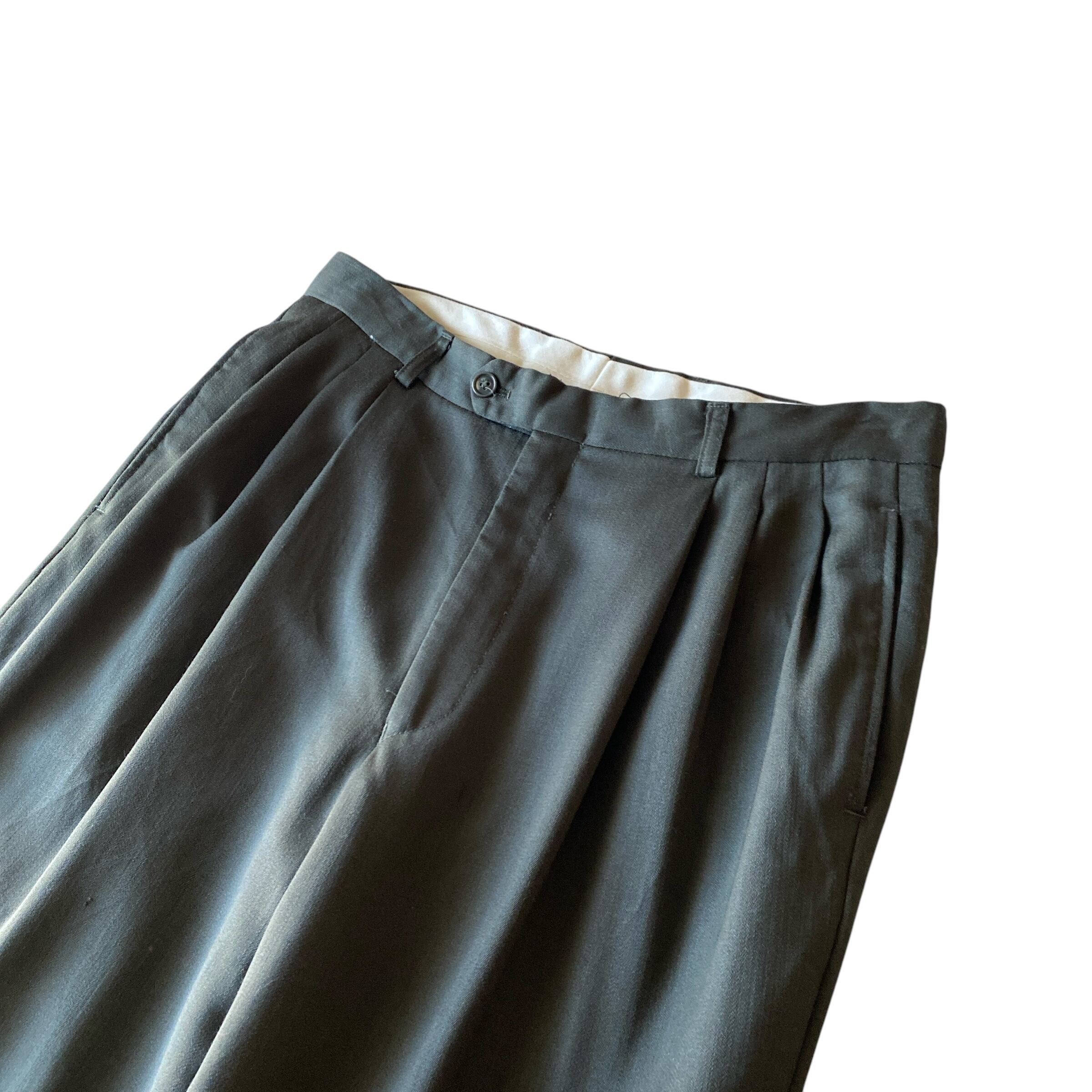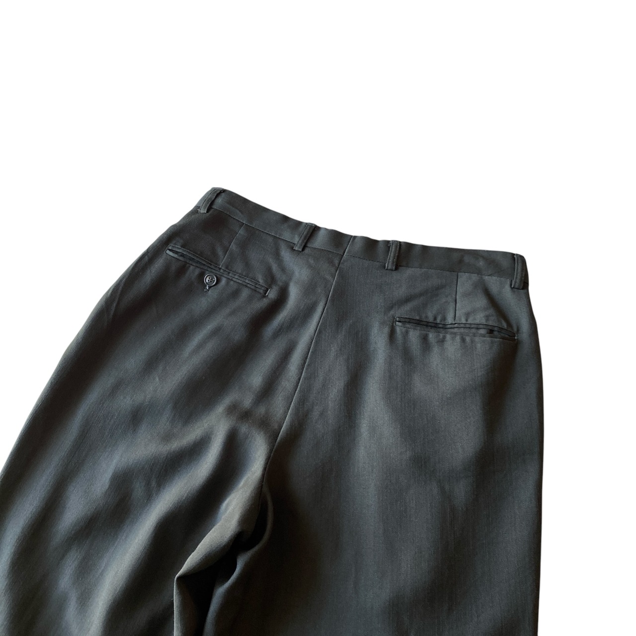 1980〜1990年代頃のウールギャバジンスリータックトラウザースパンツになります。(タグが欠損しておりますが、サイズ表記やもろもろのディテールからアメリカ物だと思われます)
