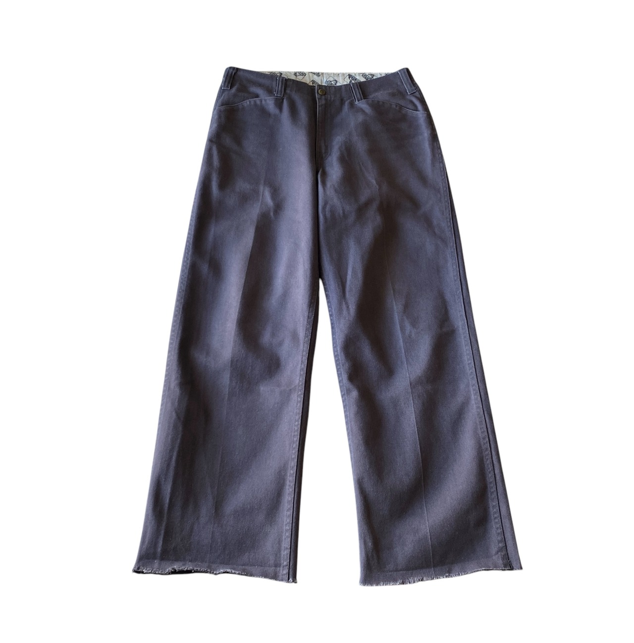 このモデル特有のストンと落ちるワイドストレートなシルエット、やや紫がかったチャコールグレーの色目が素晴らしいです。