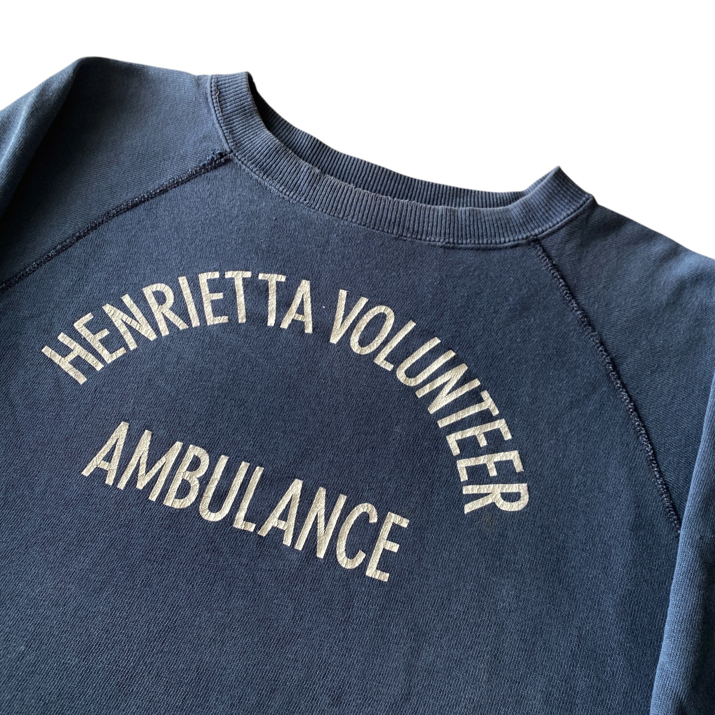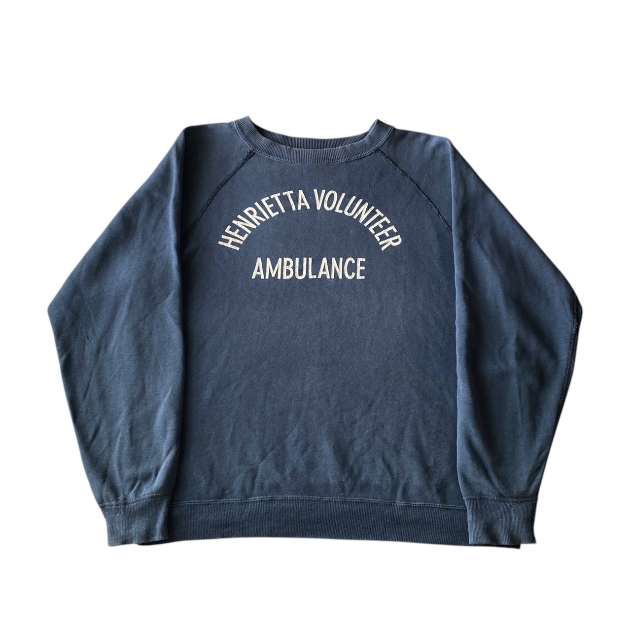 フェードしたネイビーボディにホワイトのアーチプリントがオーセンティックで非常に格好良い一着。(1962年、New YorkはRochesterでスタートした、救急医療サービス会社の物です。)
